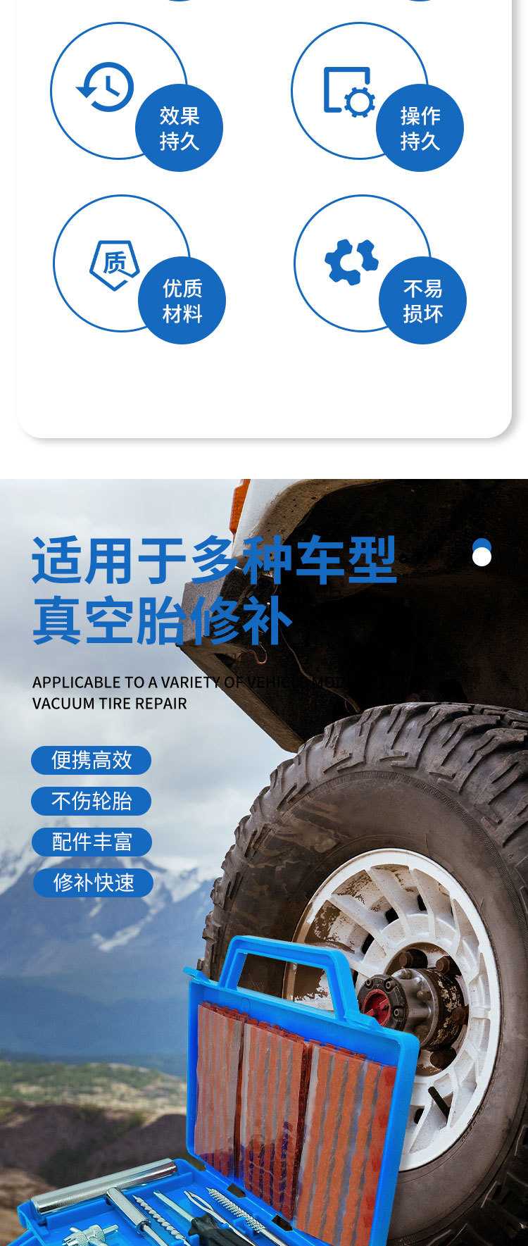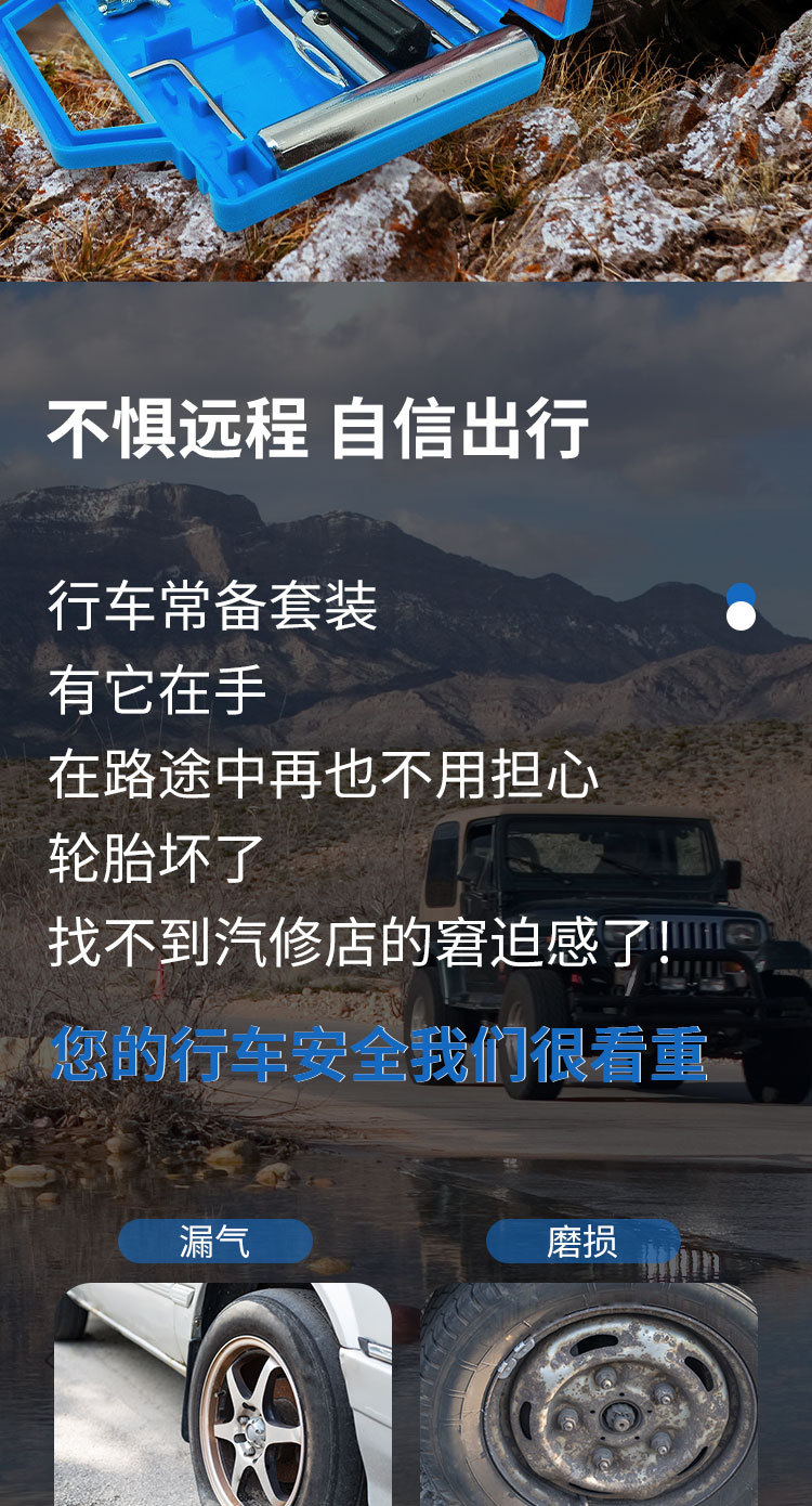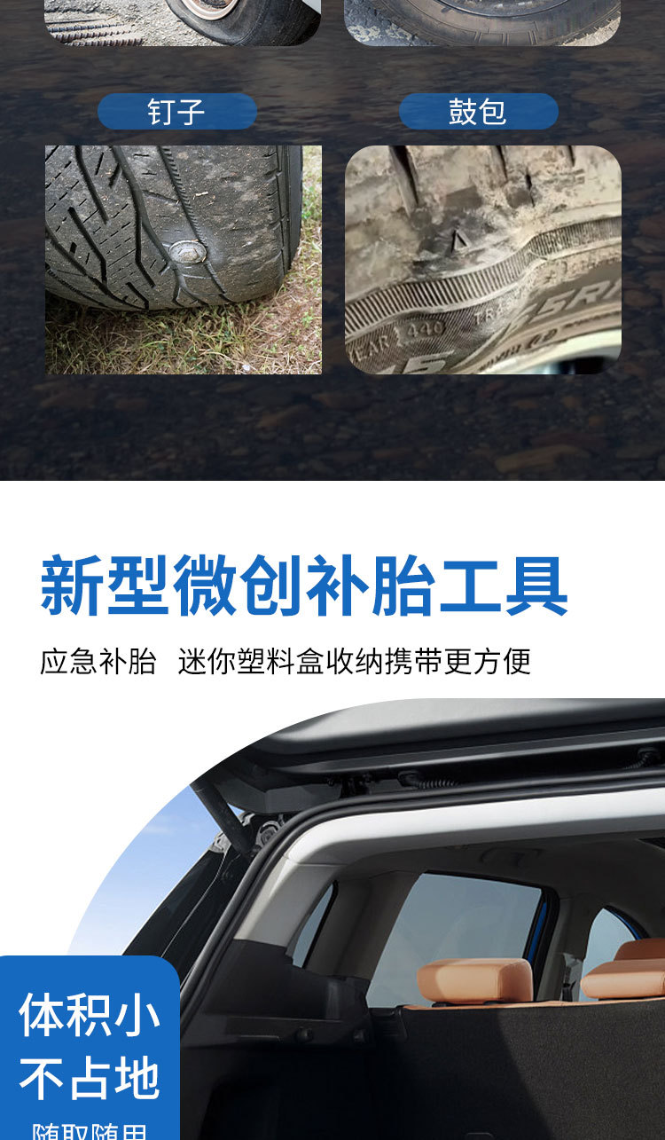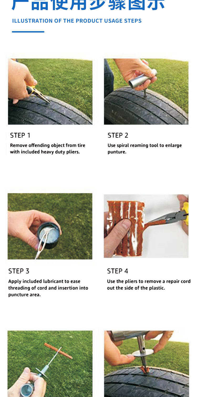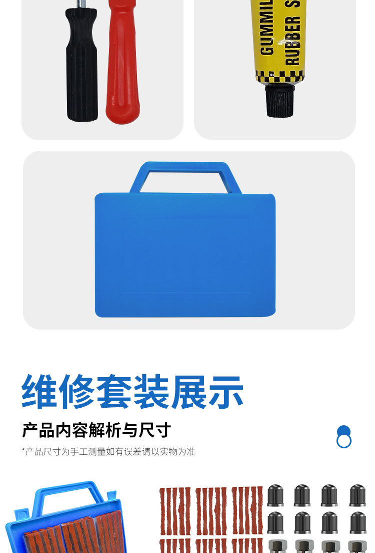 Kit de reparación de neumáticos para coche, kit de reparación de neumáticos de motocicleta, herramienta de reparación de coche, kit de emergencia para neumáticos.