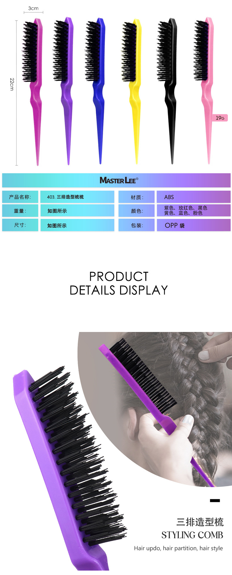 | Categoría del producto | Pein de cabello, peine de utilidad |