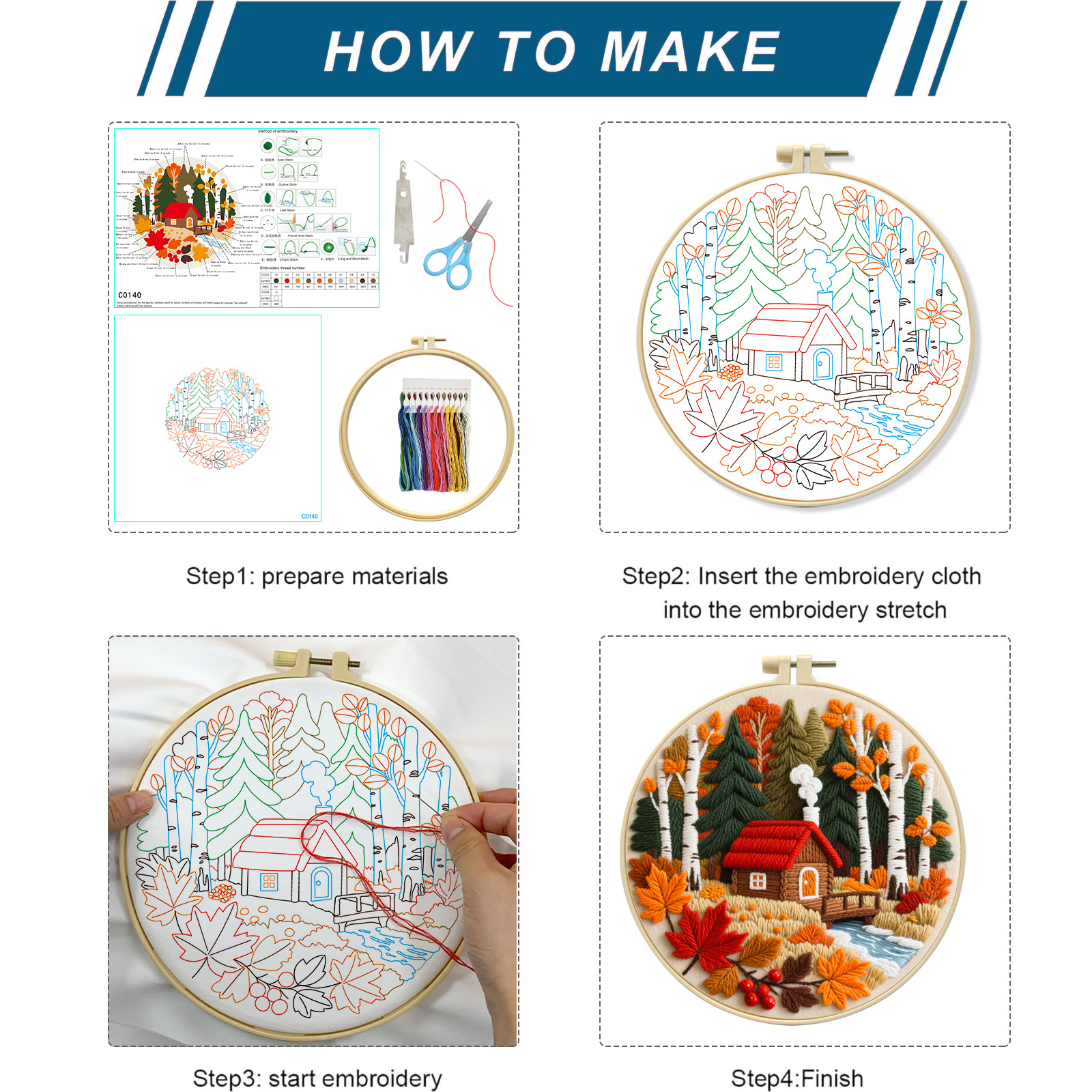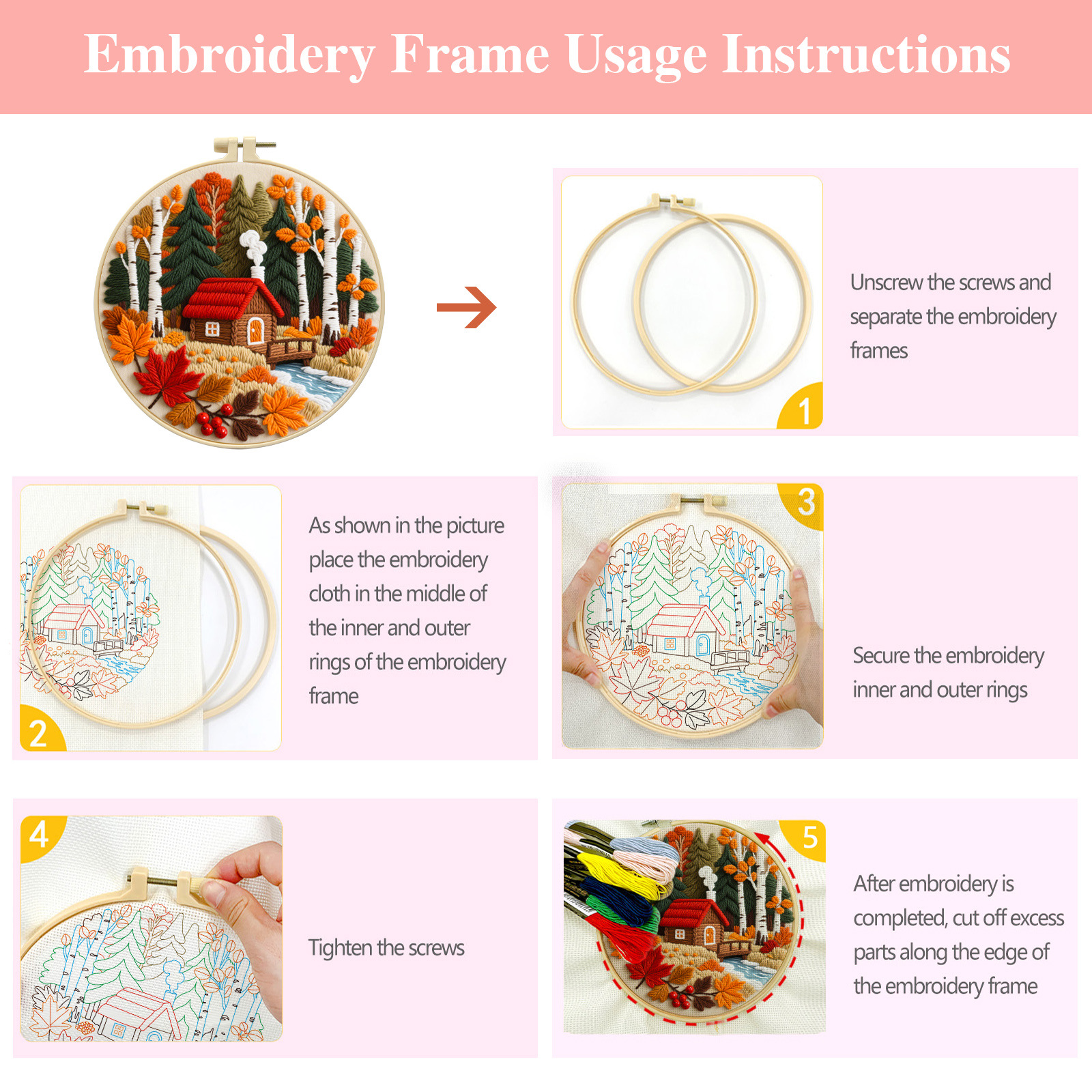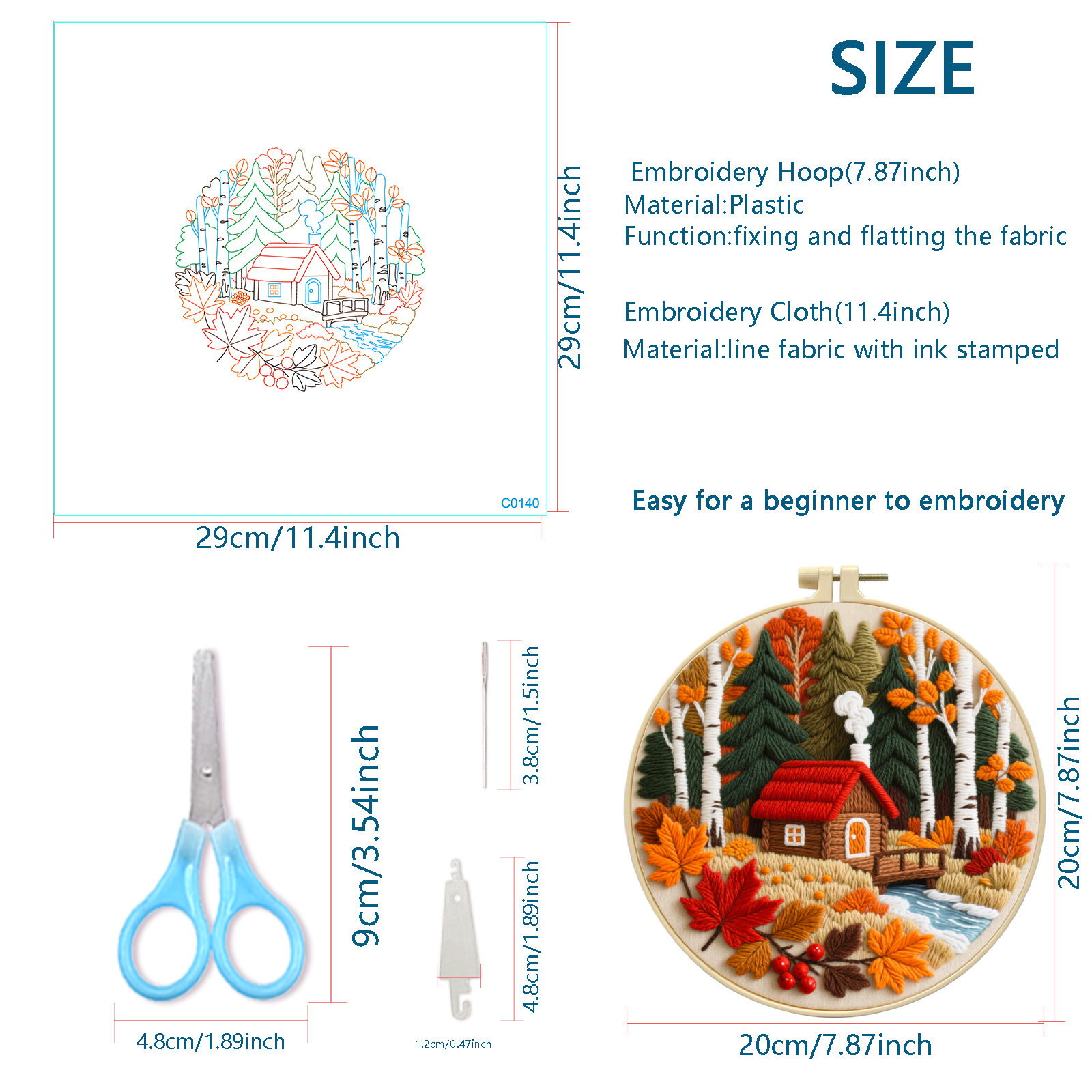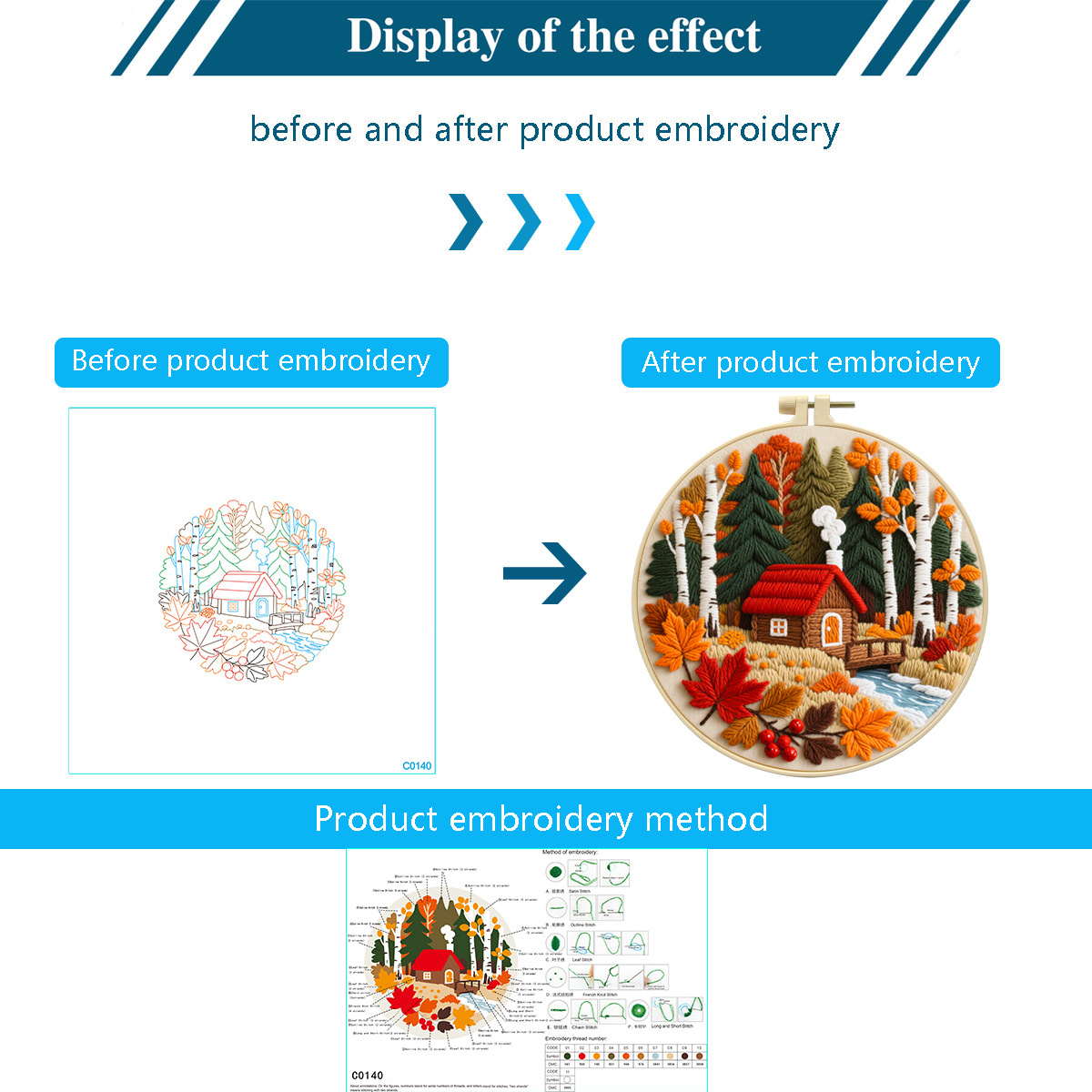 2025 nuevos productos transfronterizos paquetes de materiales de bordado diy秋林 cabina principiantes set de bordado decoración de paisaje de otoño