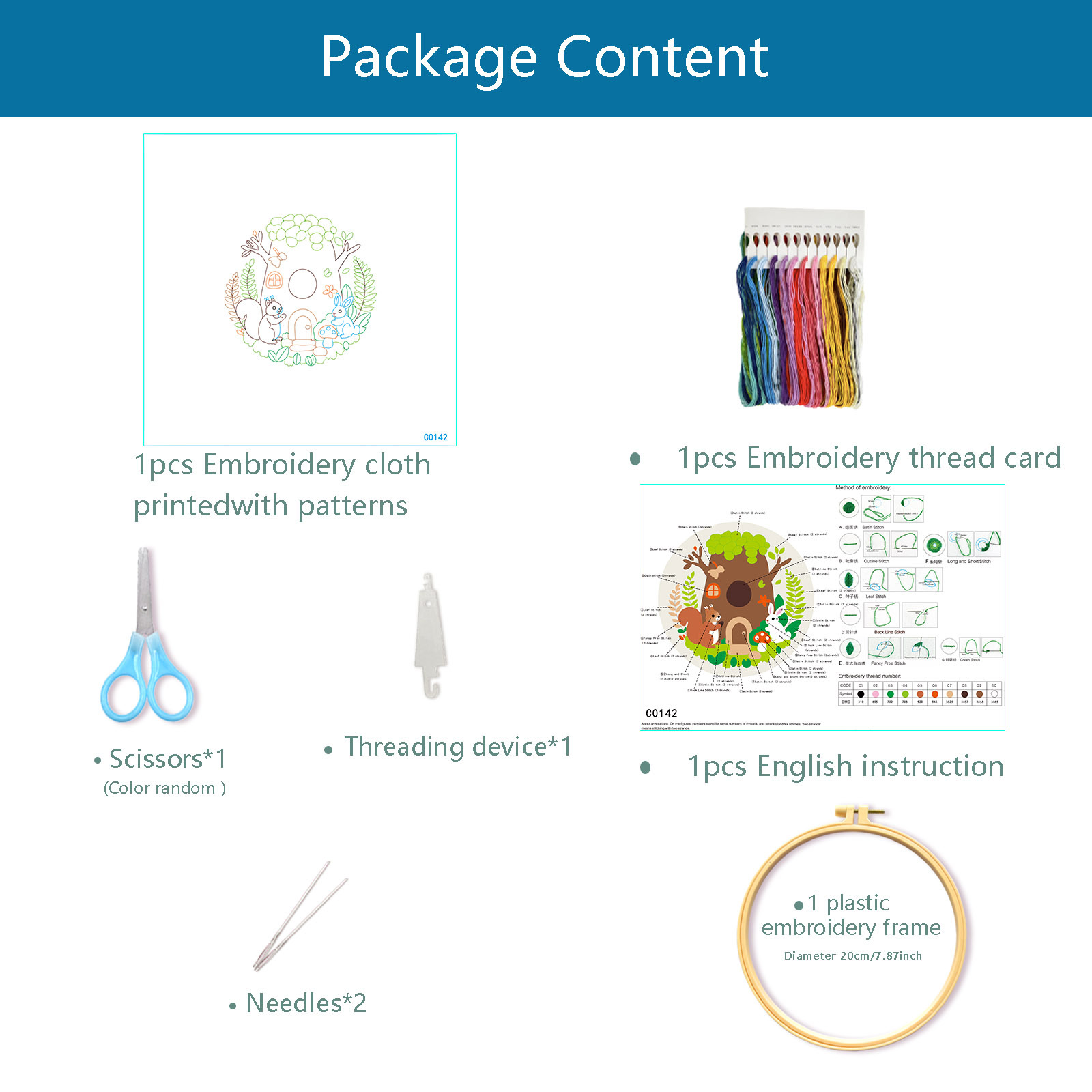 Paquete de materiales básicos (con instrucciones de bordado de aguja)