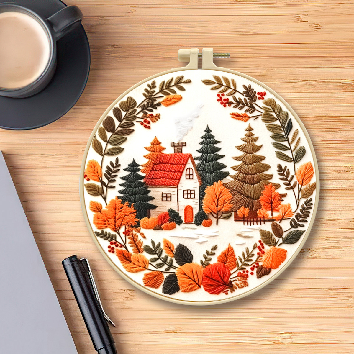 Nuevo Kit de Bordado Transfronterizo de Otoño, Paisaje Bosque Encantador, Material para Principiantes, Fabricante de Bordados, Venta al por Mayor