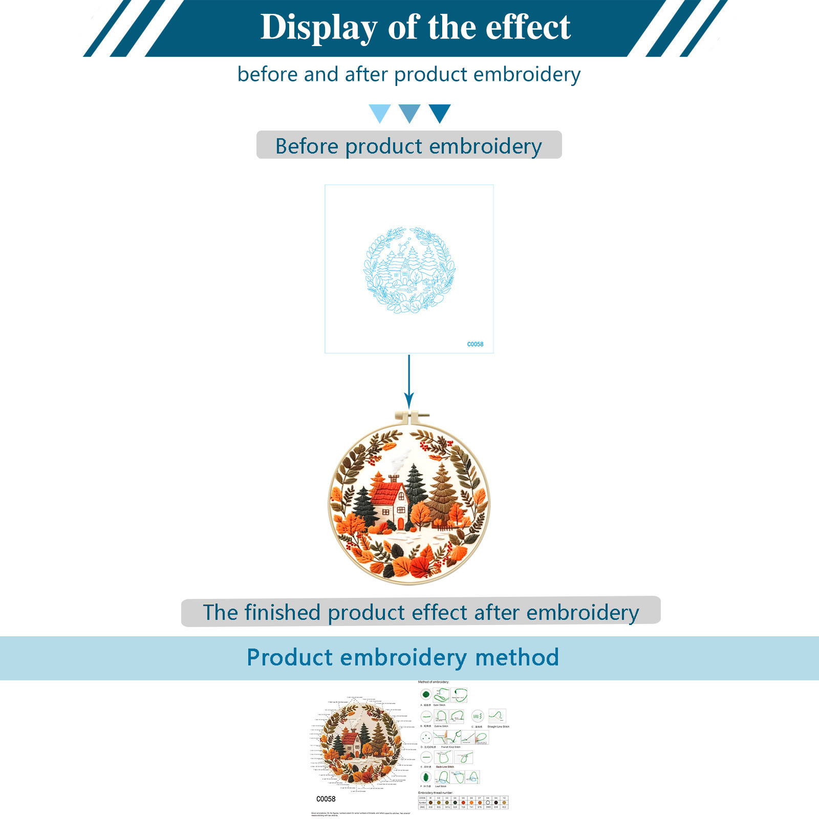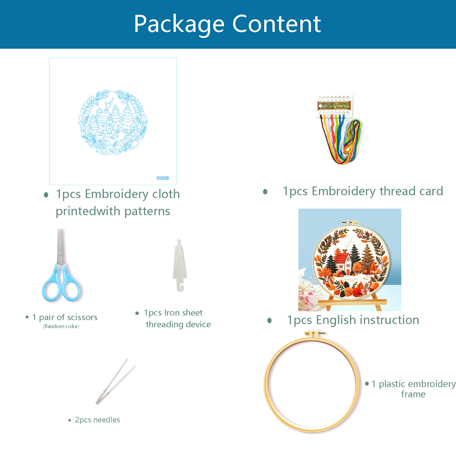 | Colores | Compre [29x29 cm] bordado y obtenga un bordado redondo [20 × 20 cm], tijeras y enhebrador de agujas |