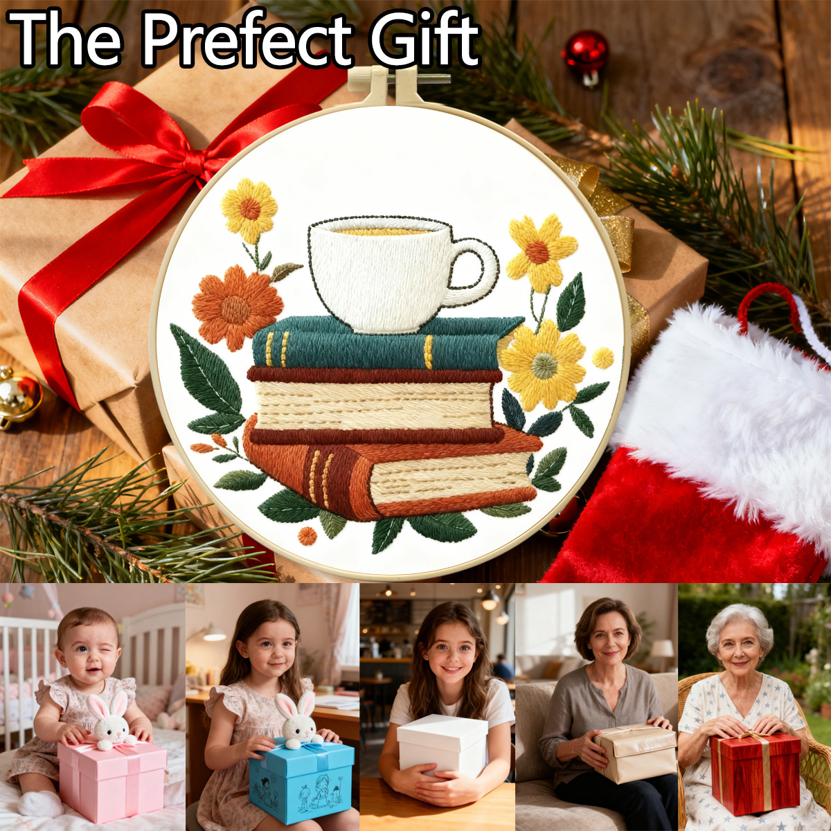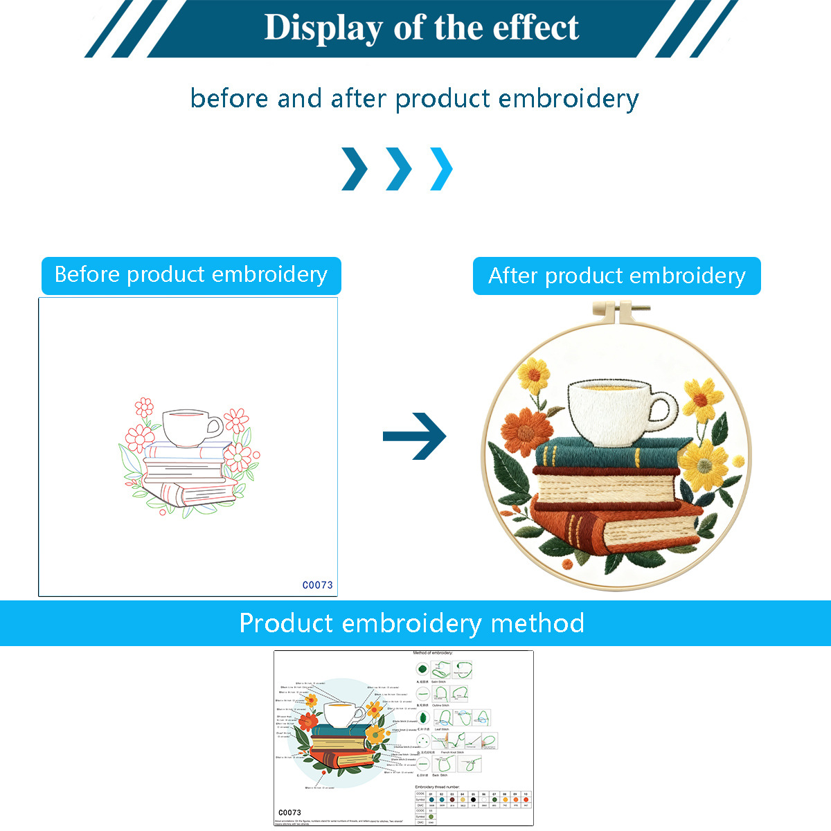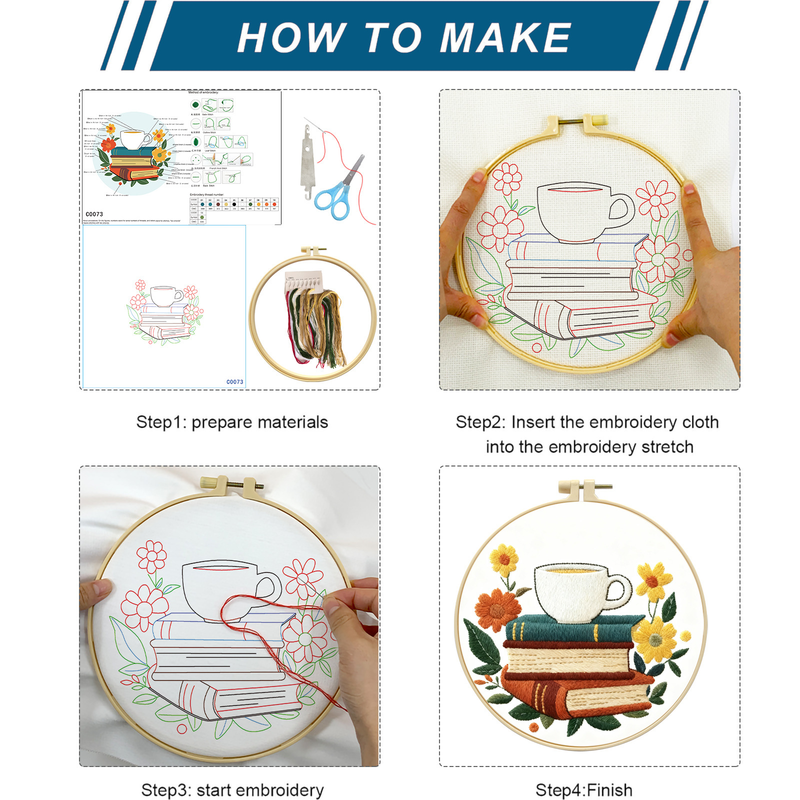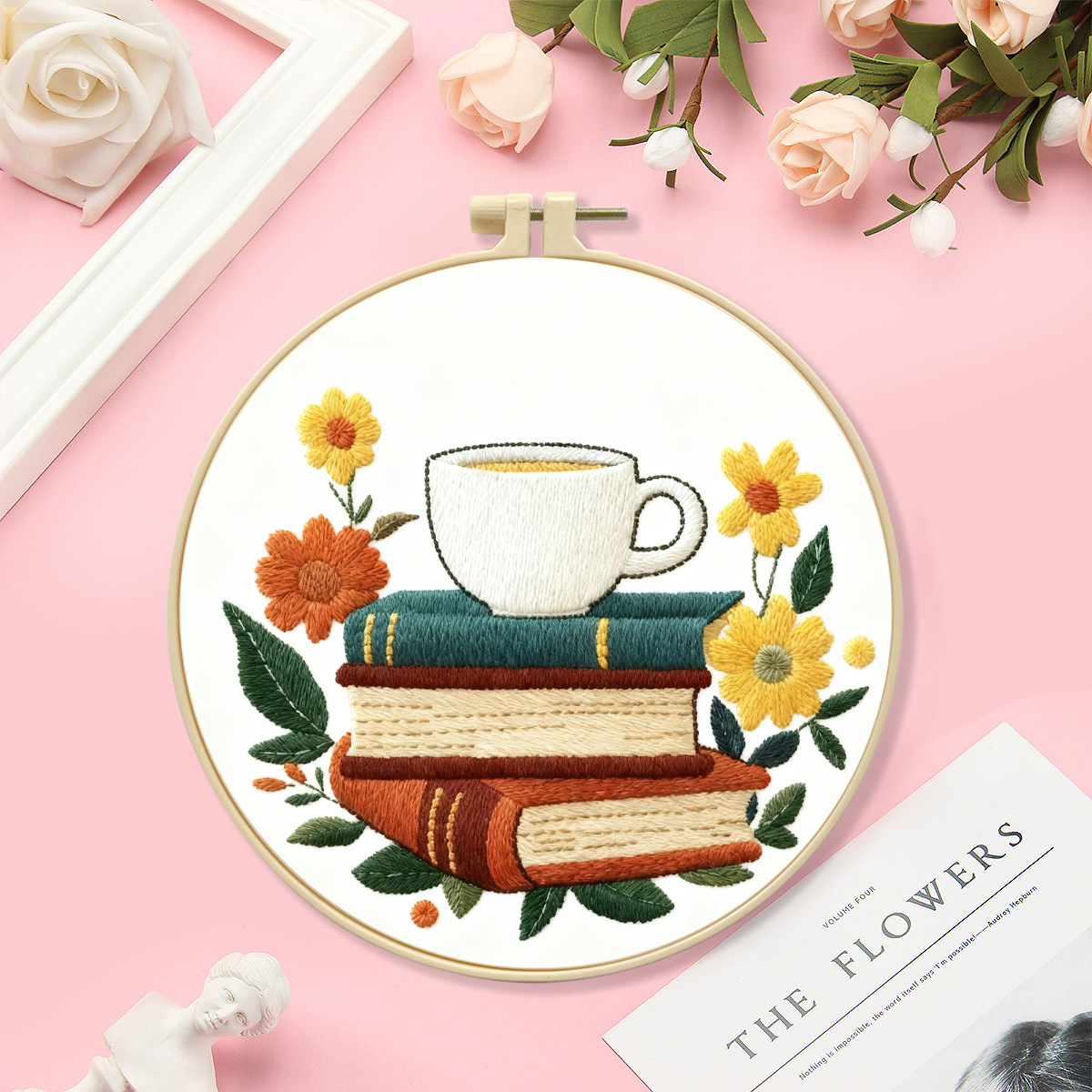 Nuevo paquete de materiales de bordado transfronterizo café con libro incienso decoración de sala de estar DIY set de bordado fábrica cabello recto