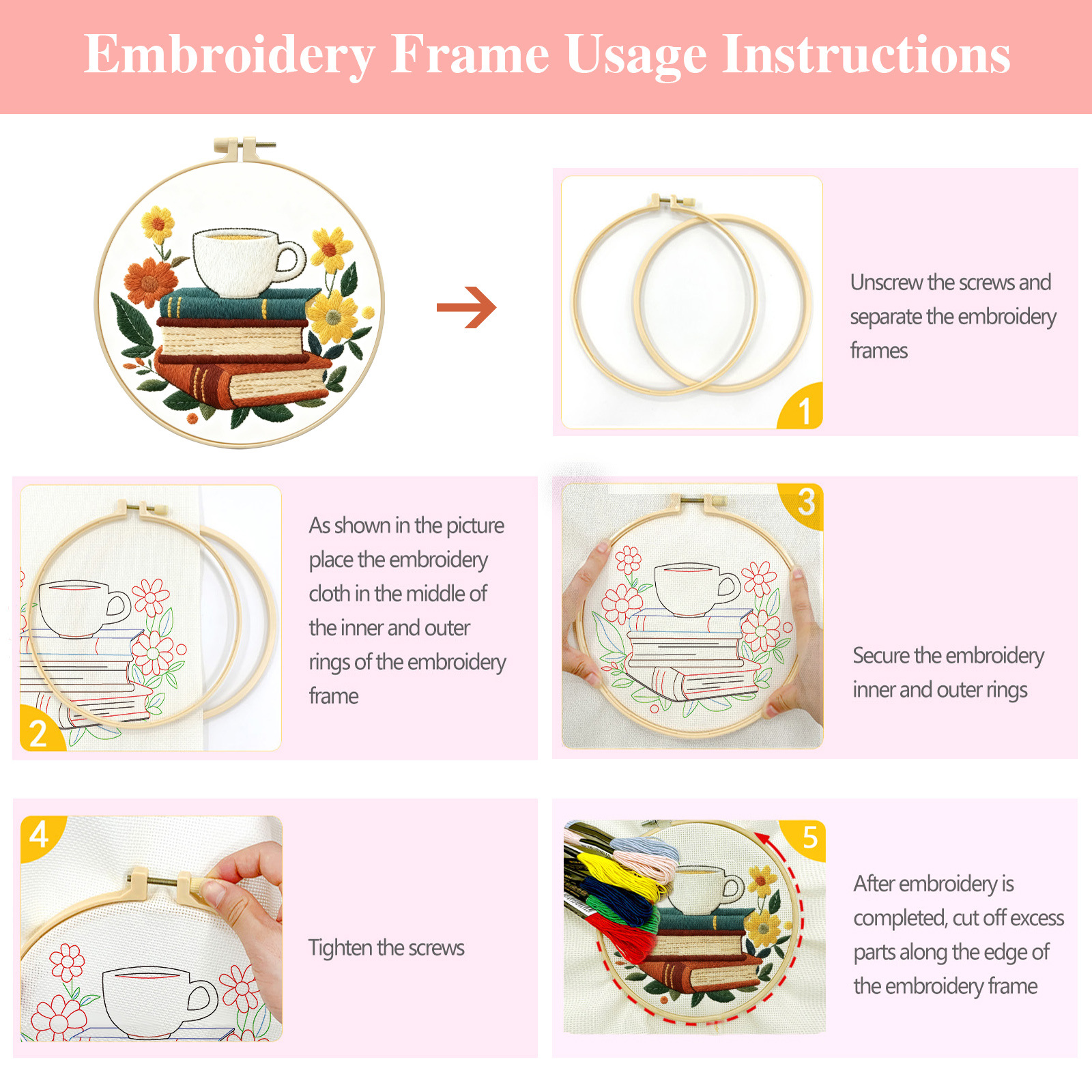 | Color | Paquete básico de material de aguja e hilo (incluye 2 agujas de hilo de bordado de tela de bordado), paquete básico de material de aguja e hilo + tensión de bordado de 20cm, paquete básico de material de aguja e hilo + tensión de bordado de 20cm + hilo de tijeras |