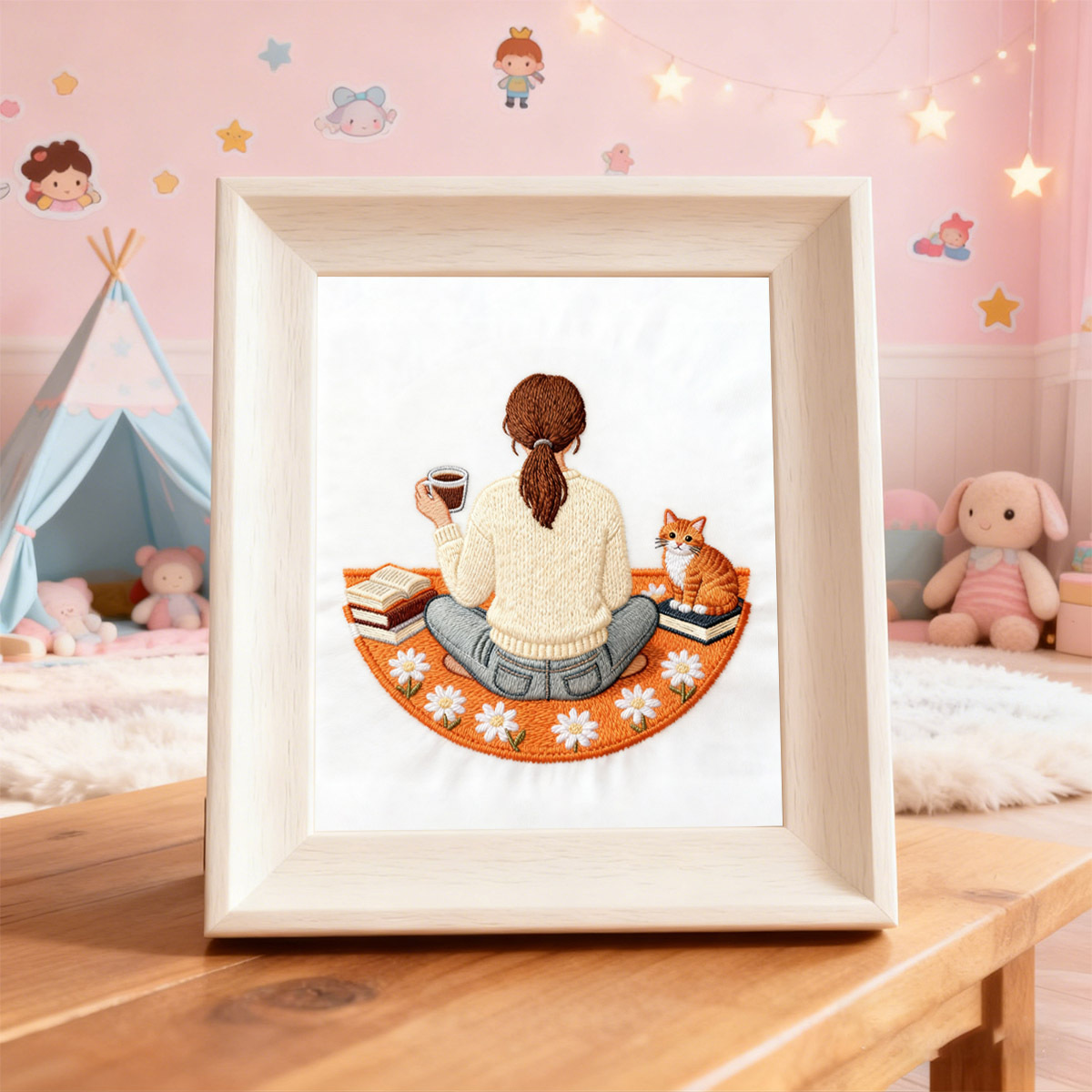 Pequeñas piezas transfronterizas bordadas a mano DIY material paquete principiante adornos hechos a mano fabricantes de café chicas al por mayor cabello recto