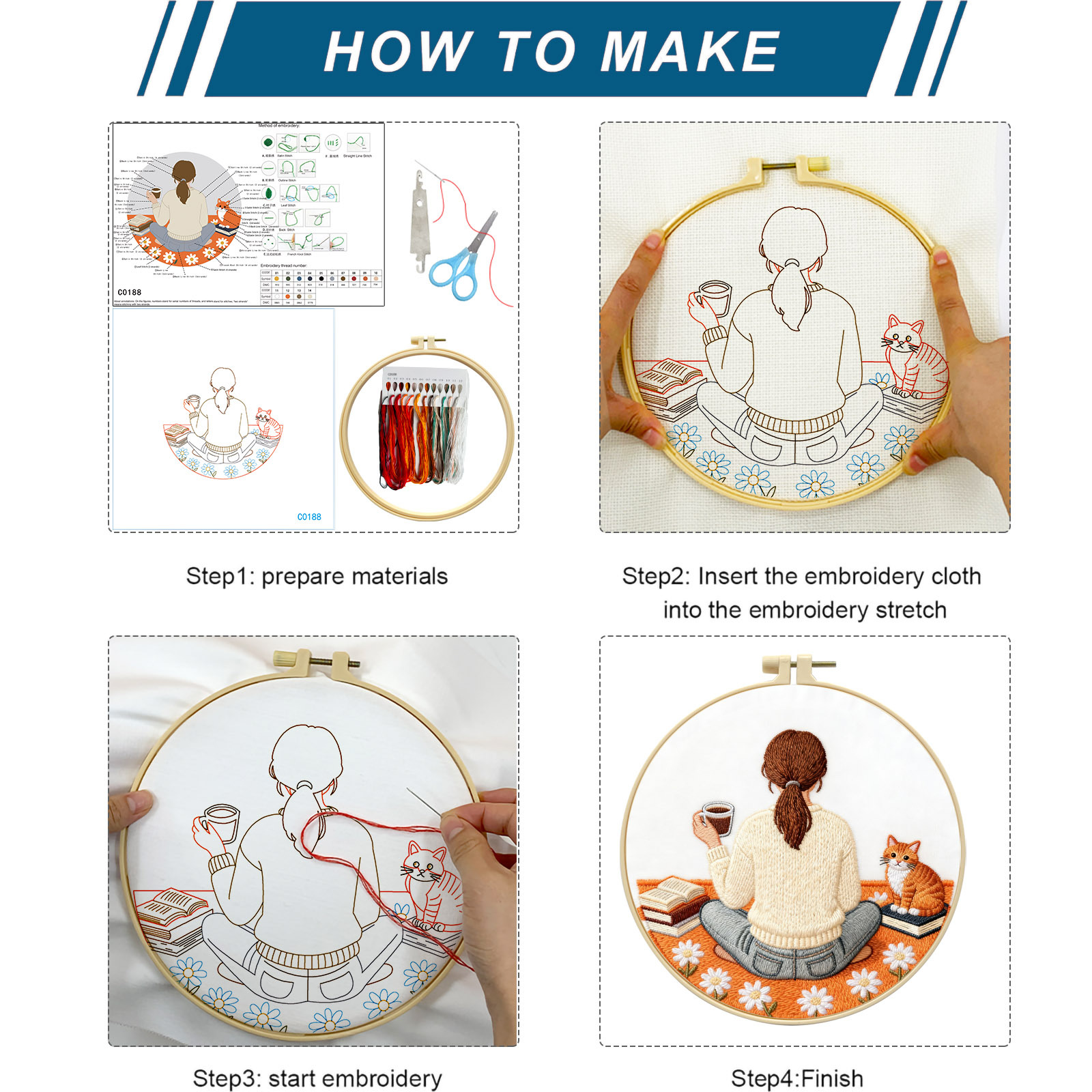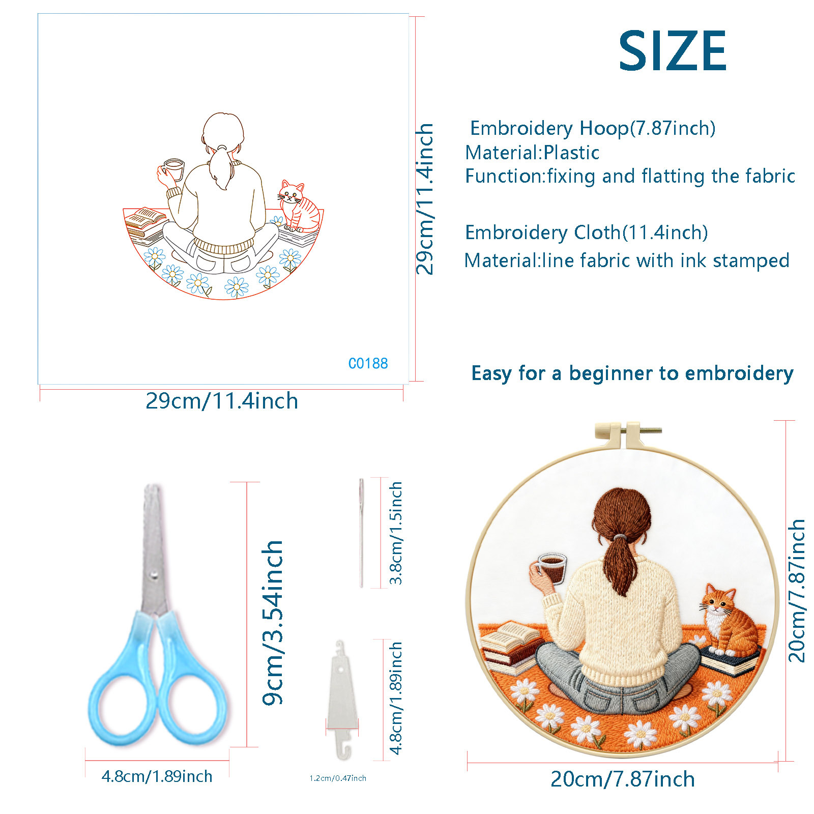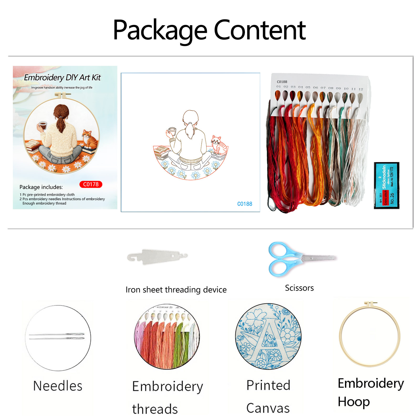 | Color | Paquete básico de material de aguja e hilo (incluye 2 agujas de hilo de bordado de tela de bordado), paquete básico de material de aguja e hilo + tensión de bordado de 20cm, paquete básico de material de aguja e hilo + tensión de bordado de 20cm + hilo de tijeras |