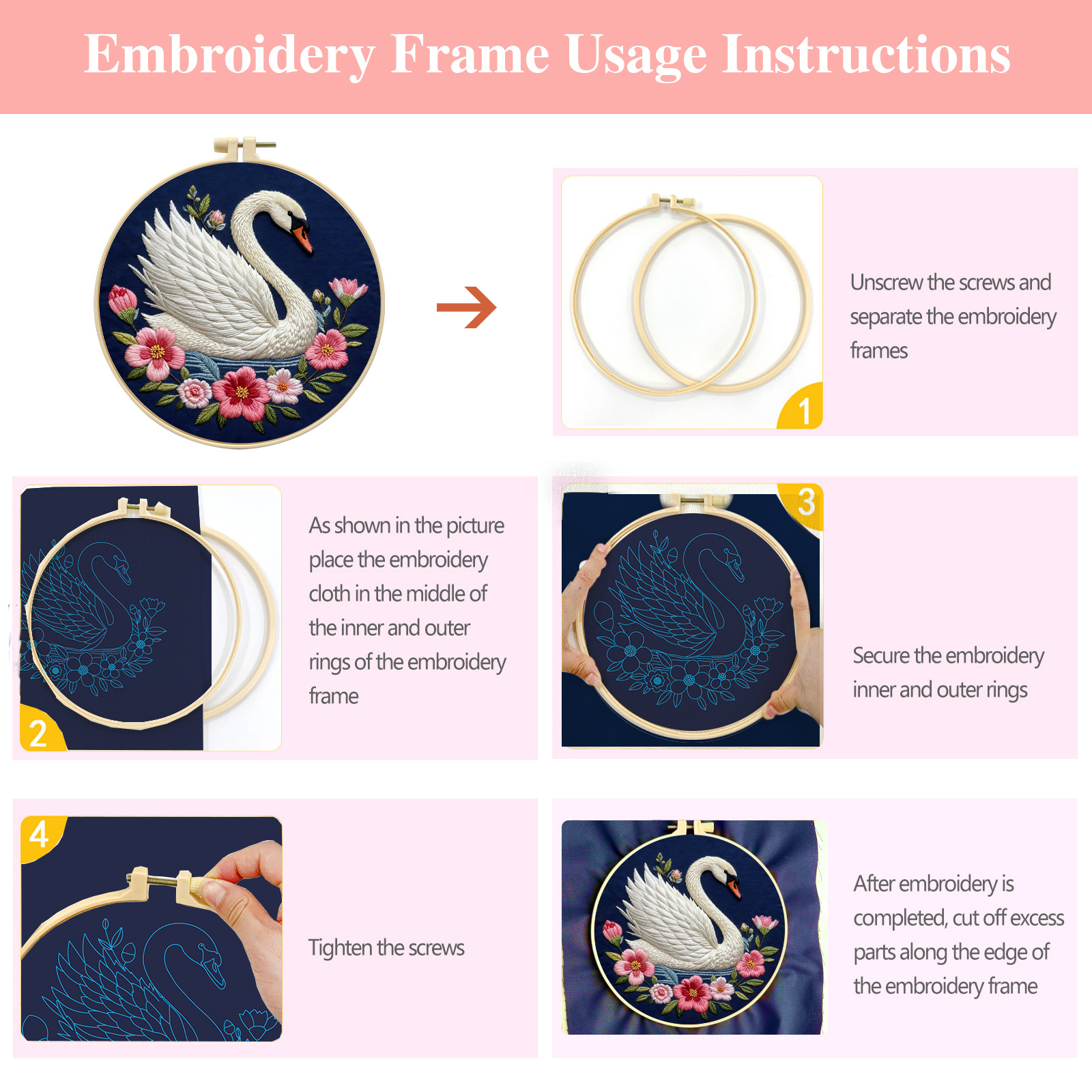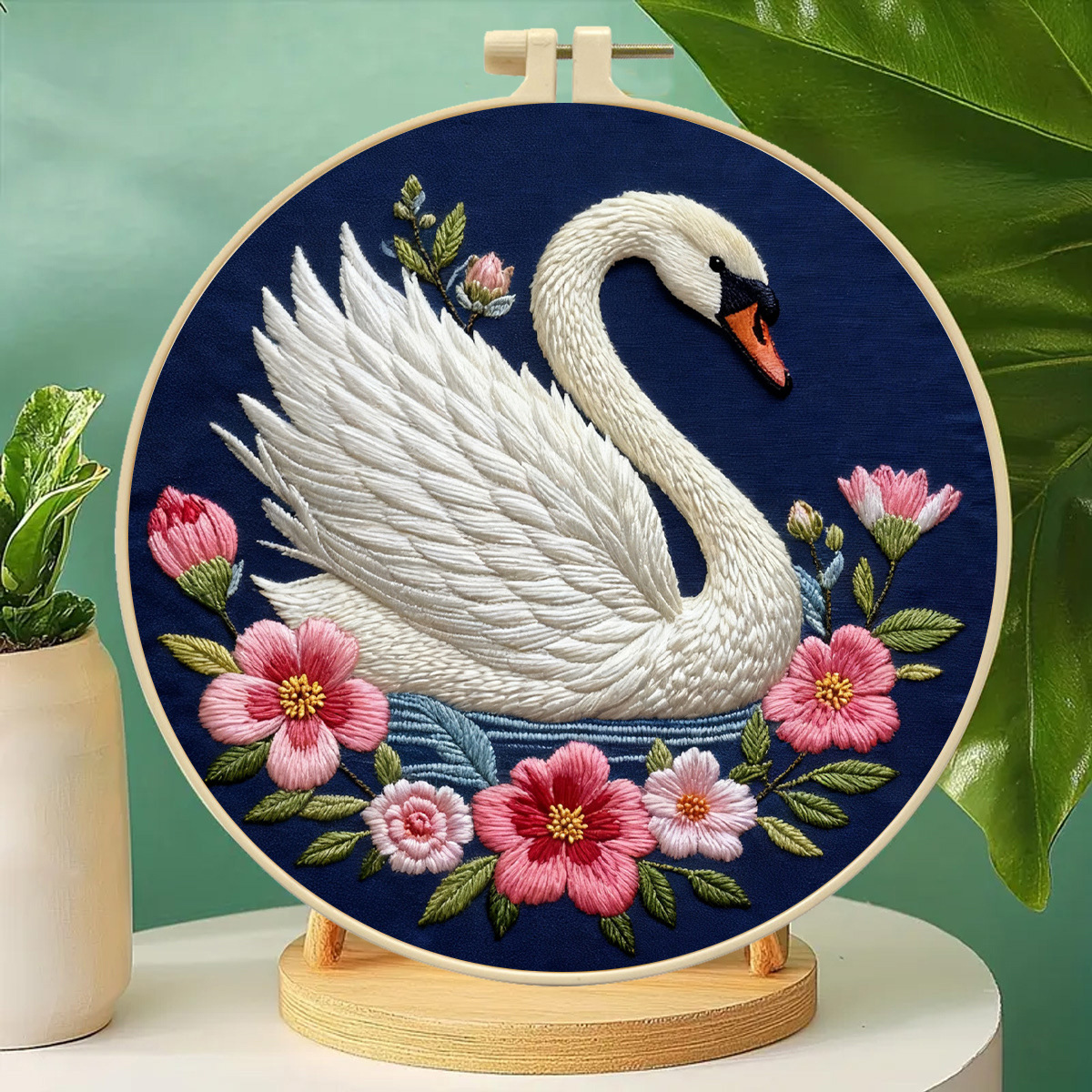 Flor hecha a mano patrón bordado DIY material paquete de cisne blanco creativo bordado de animales tela colgante principiante