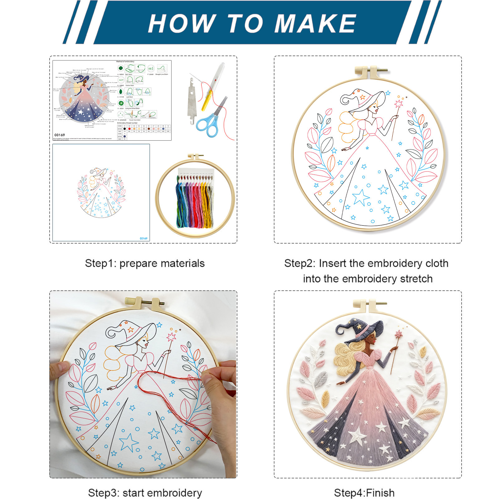Nuevos productos transfronterizos DIY bordado material de tela artesanal paquete mágico genio creativo de aguja artesanal Inglés