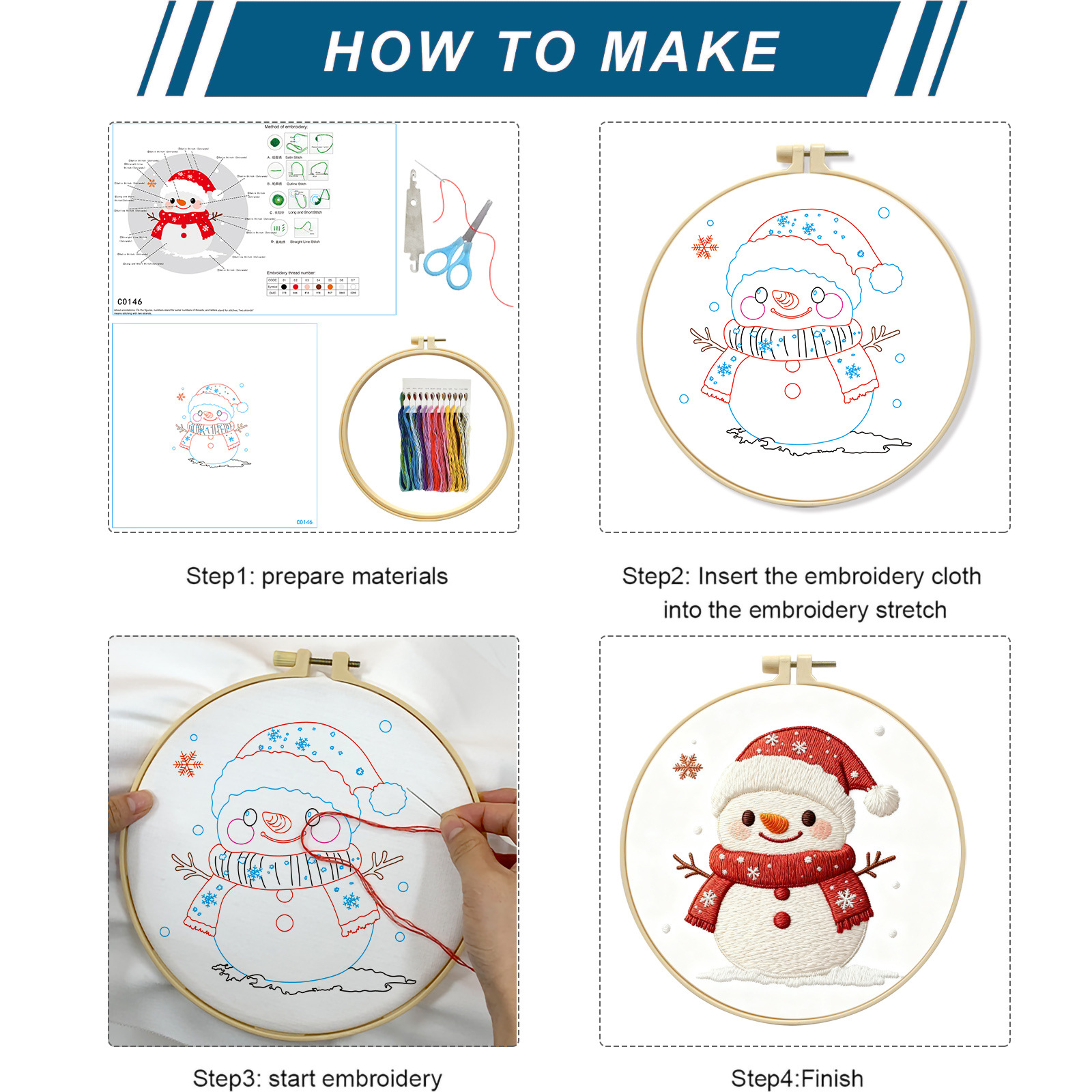 Nuevo bordado transfronterizo Navidad muñeco de nieve encantador dibujos animados principiantes paquete de material de bordado al por mayor