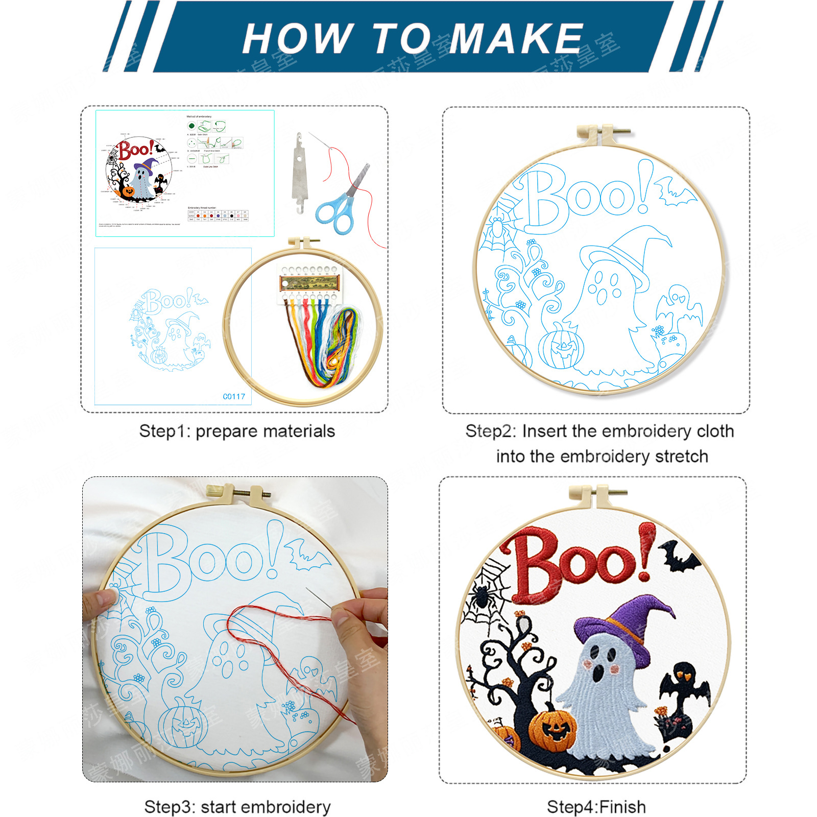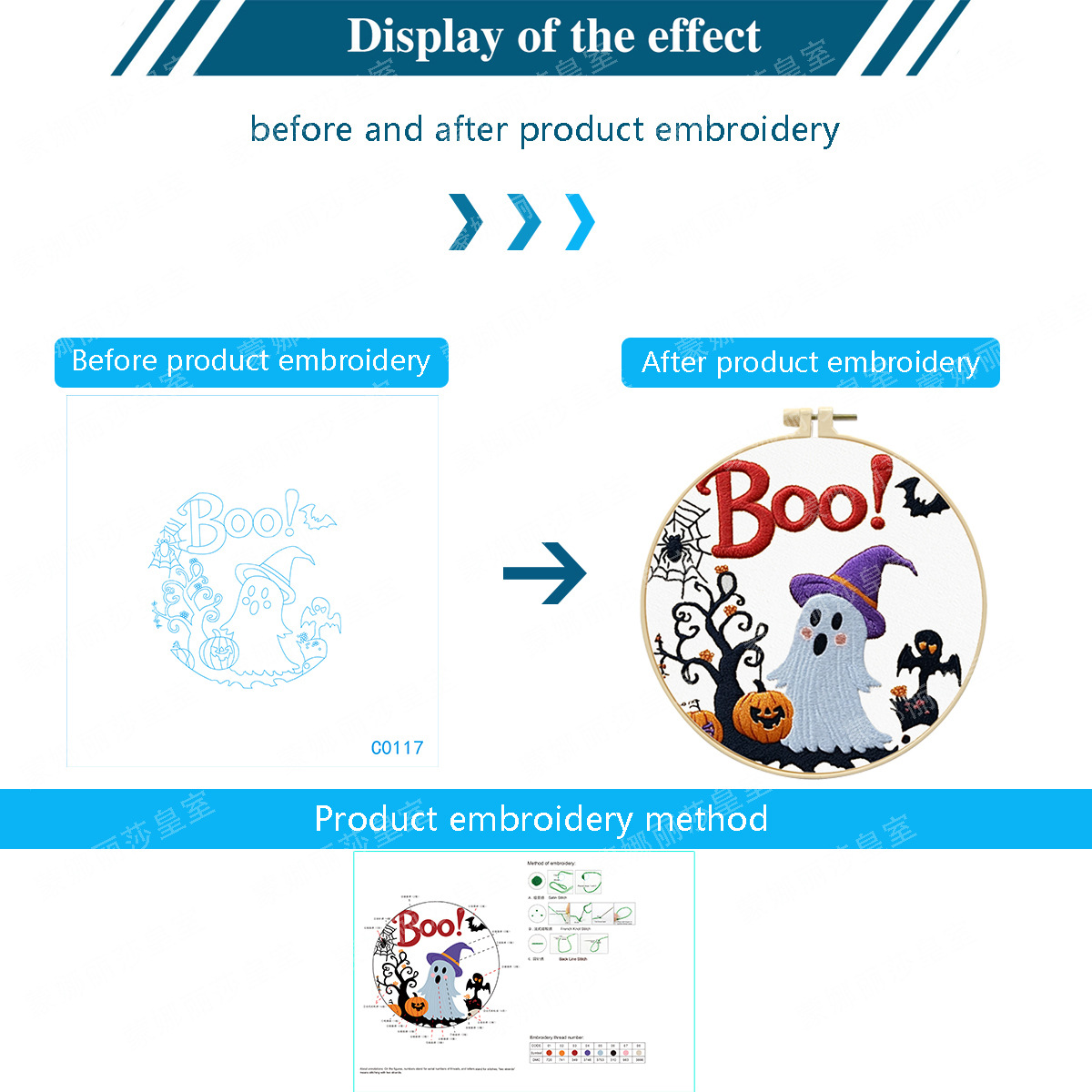 Nuevos productos transfronterizos bordados Halloween fantasma sombrero gato negro conjunto bordado hecho a mano material DIY bordado al por mayor