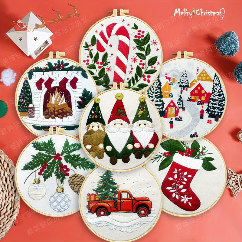 2025 Navidad transfronteriza nueva colección de bordado de Navidad bordado de Navidad