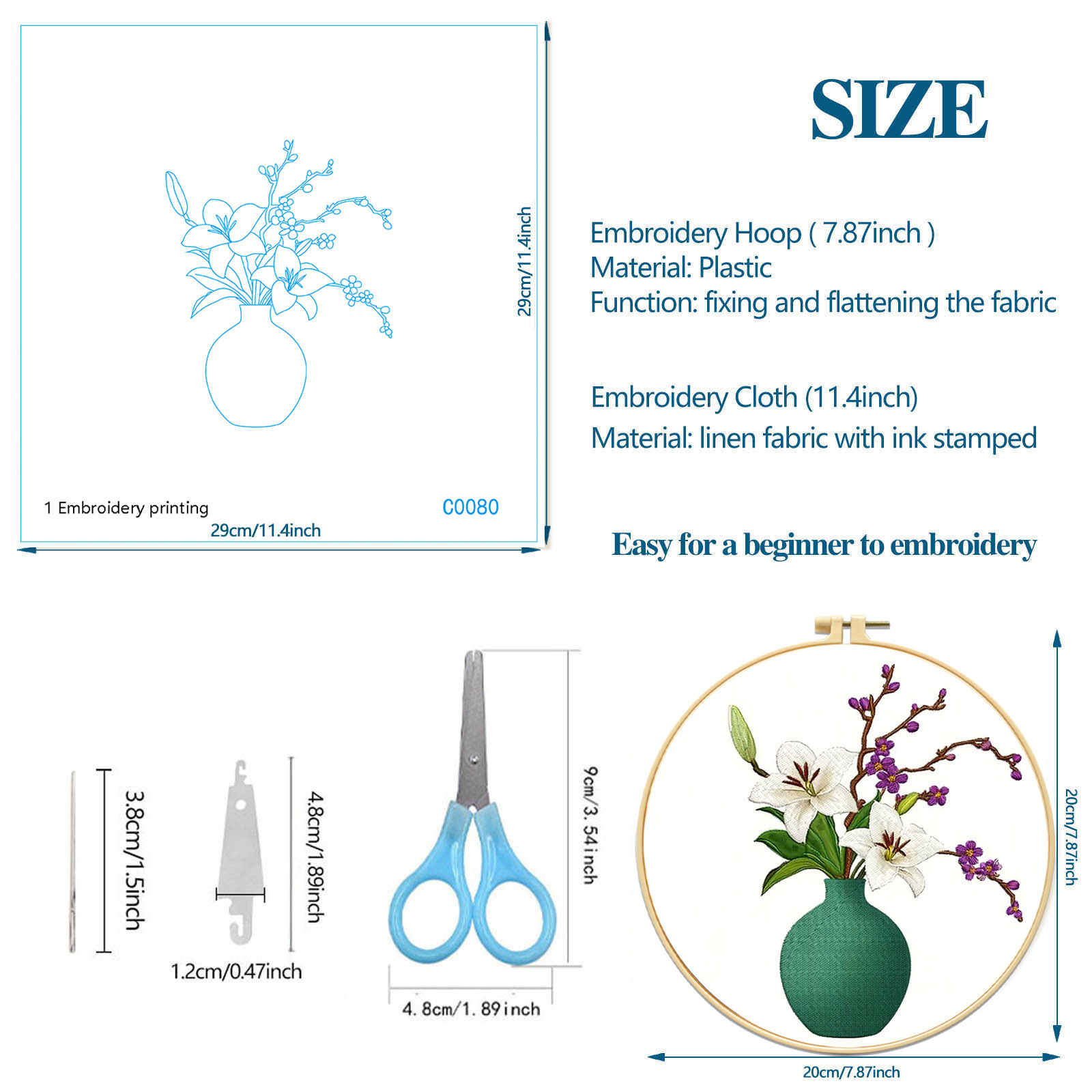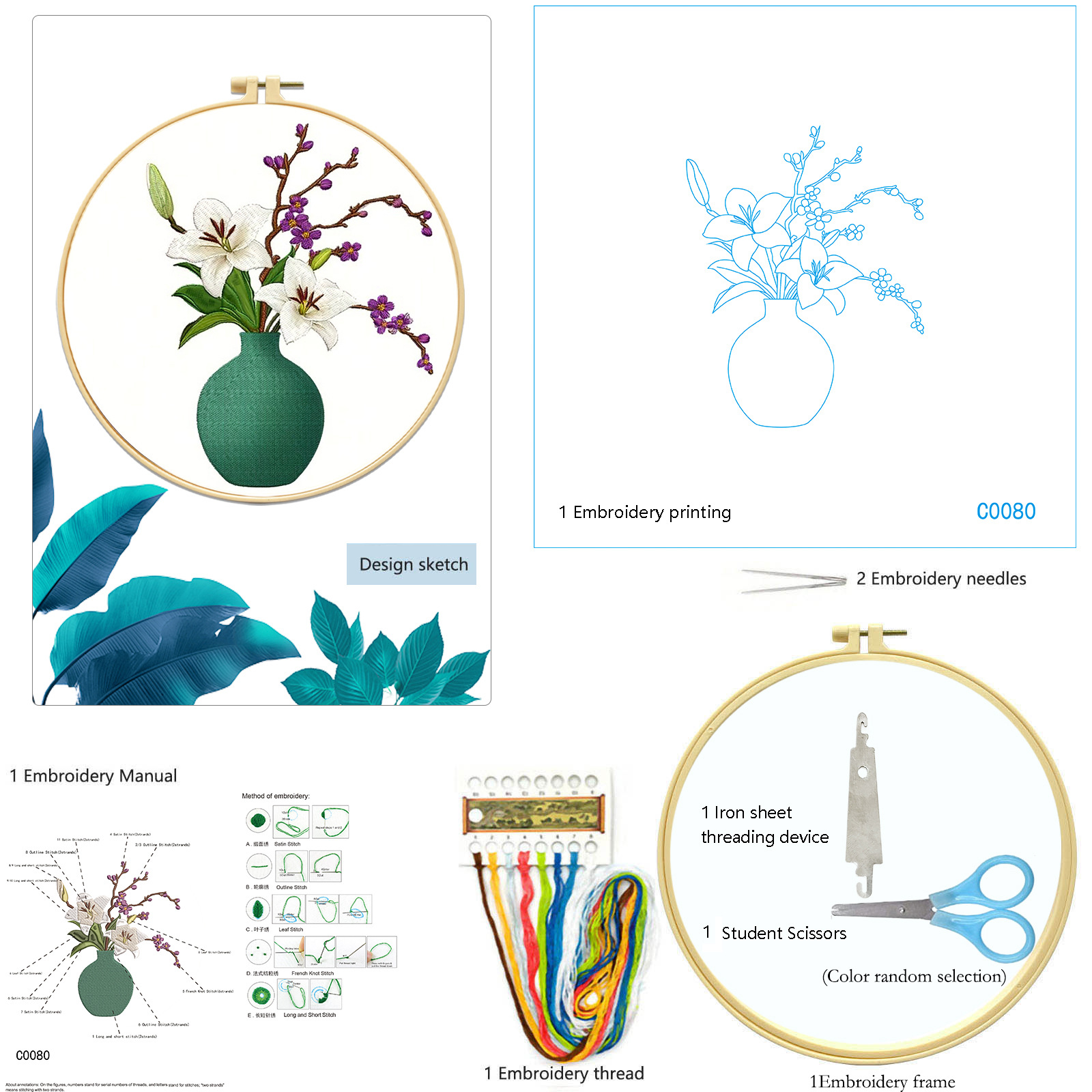 | Colores | Compre un bordado de jarrón y obtenga 1 bordado, 1 pasador de agujas, 1 tijera |