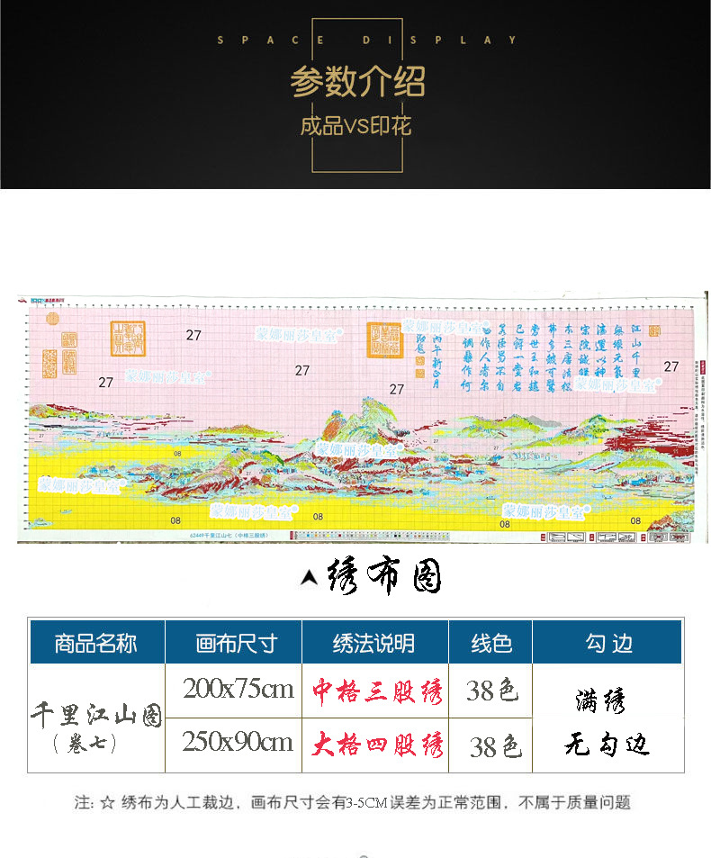 [Bordado de cuatro hilos a cuadros grandes] 250x90 cm-tela de bordado gruesa ultra clara-30% más de hilo