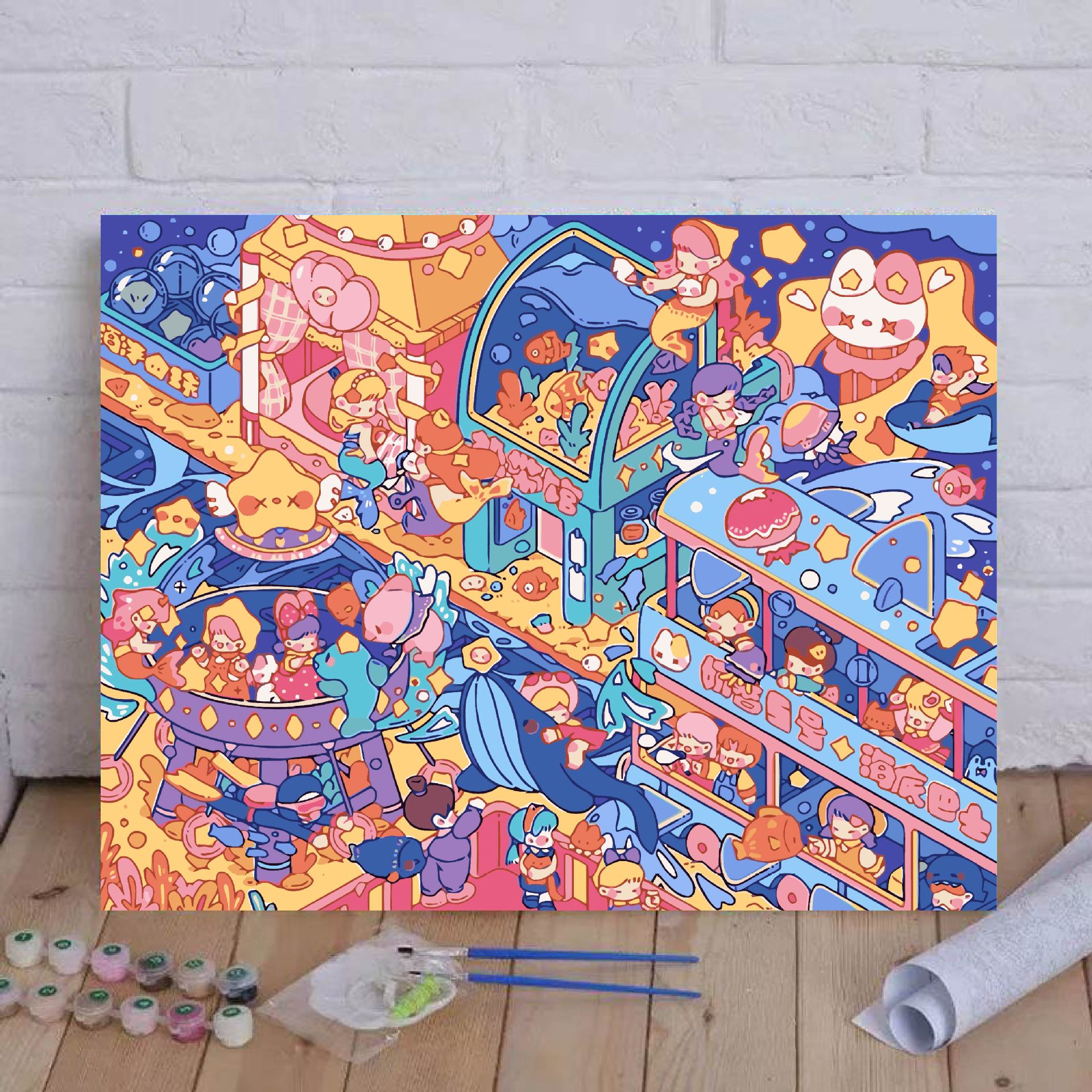 4050 lleno de lienzo + pincel de pintura [sin marco]