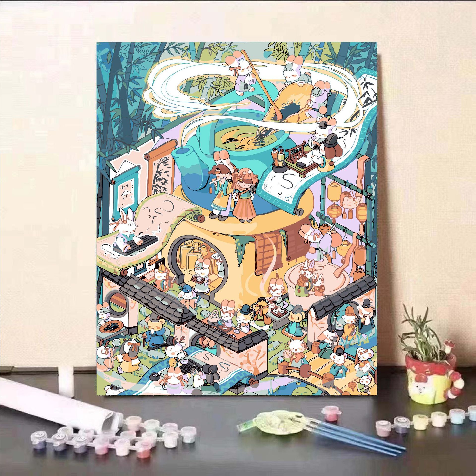 Selección de venta caliente nicho pintura al óleo digital bricolaje rellena a mano para curar y descomprimir pintura de decoración de sala de estar de alto valor regalo
