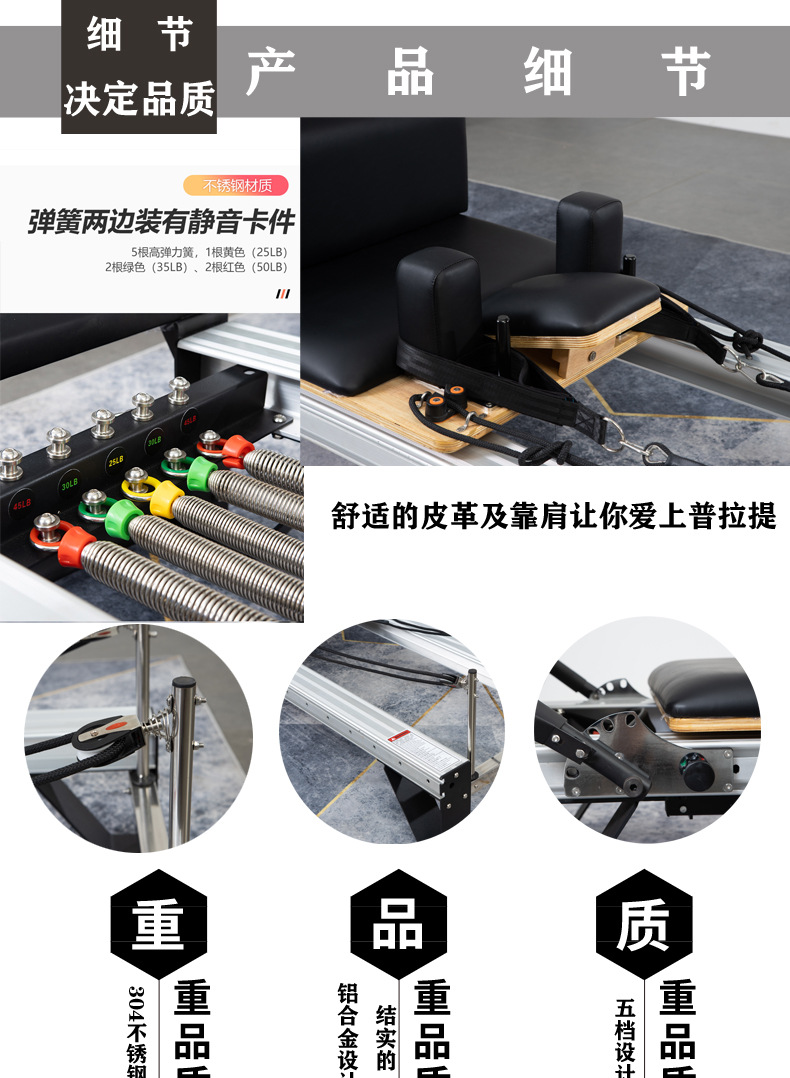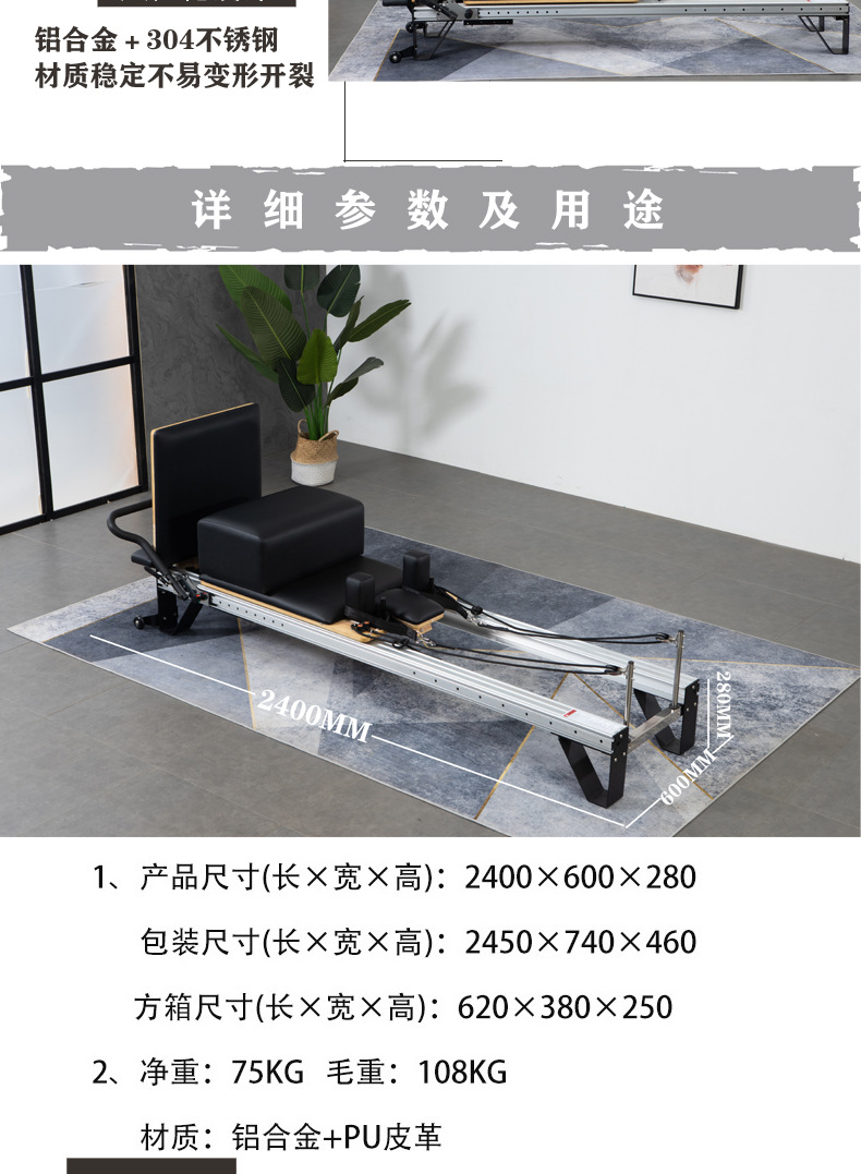 Pilates de aleación de aluminio de órbita completa cama central pequeña cama blanca y negra sala de yoga comercial reformador de pilates