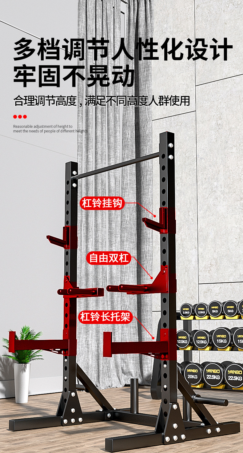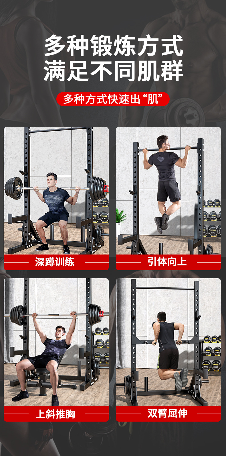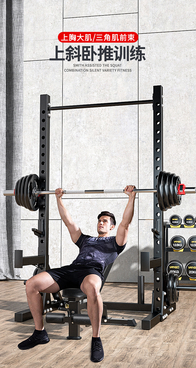 Equipo deportivo de acondicionamiento integrado con soporte de cama de levantamiento de peso de barra paralela única y multifuncional de cuclillas y empuje horizontal