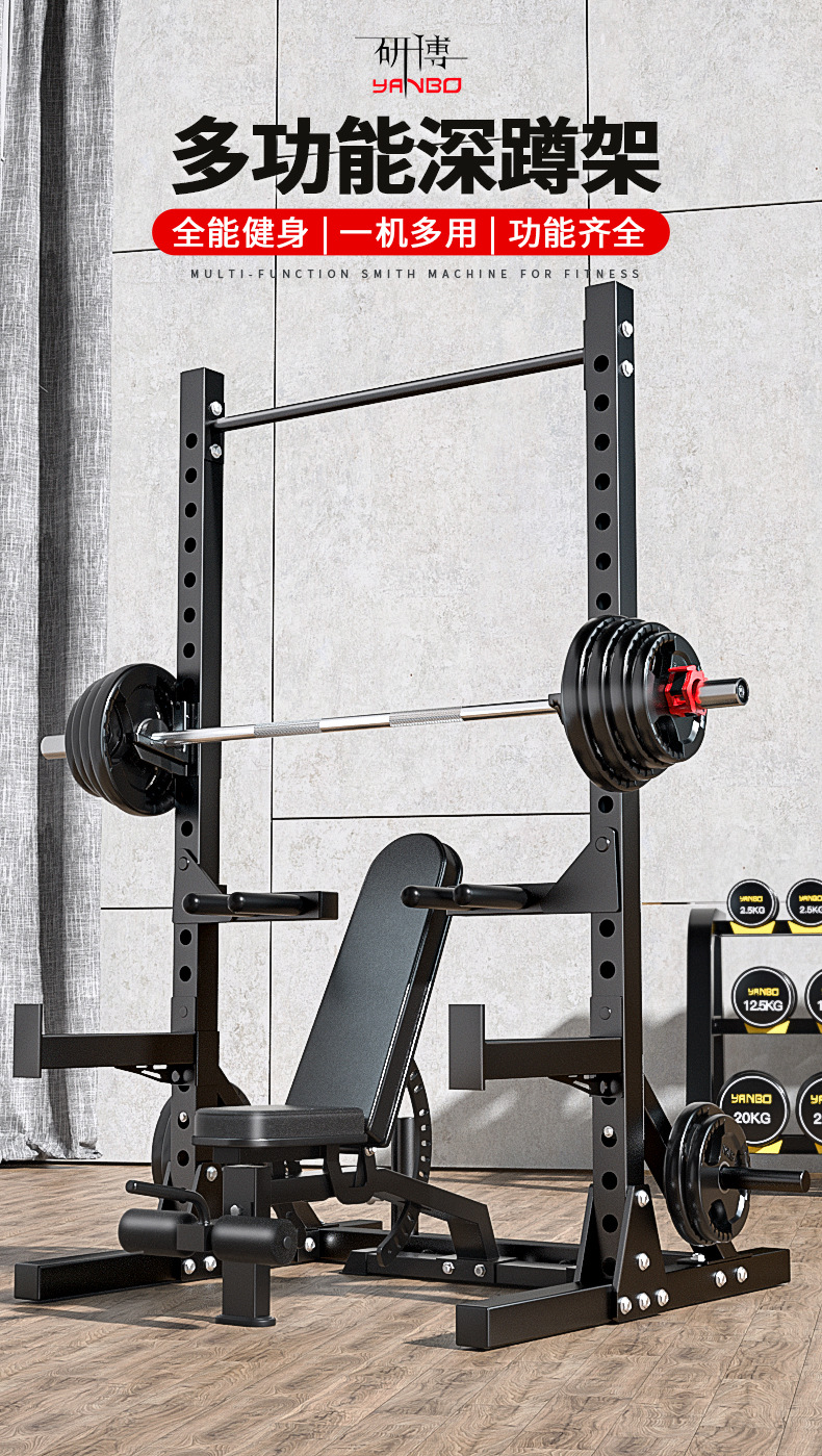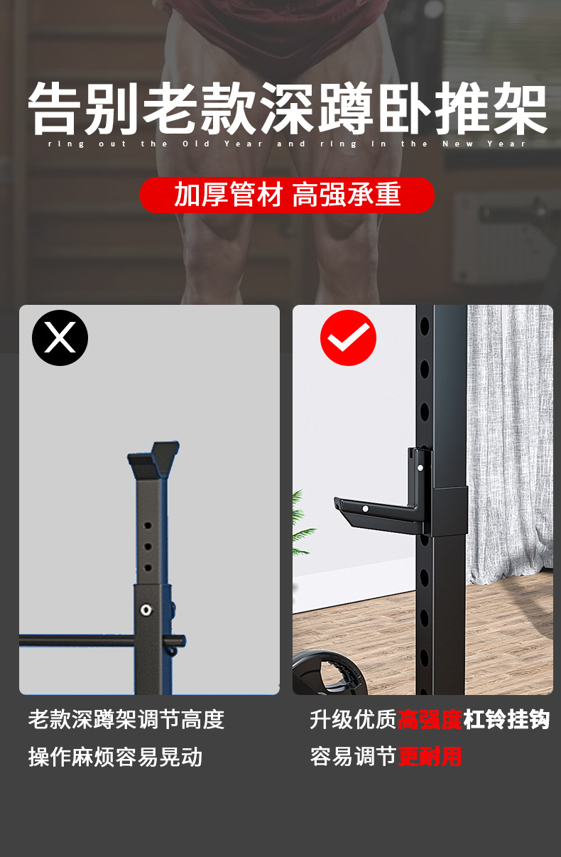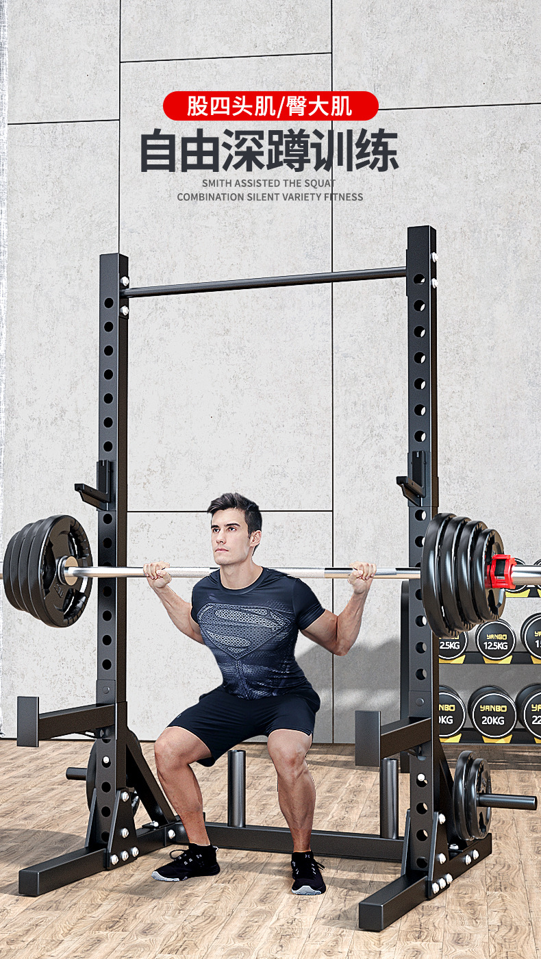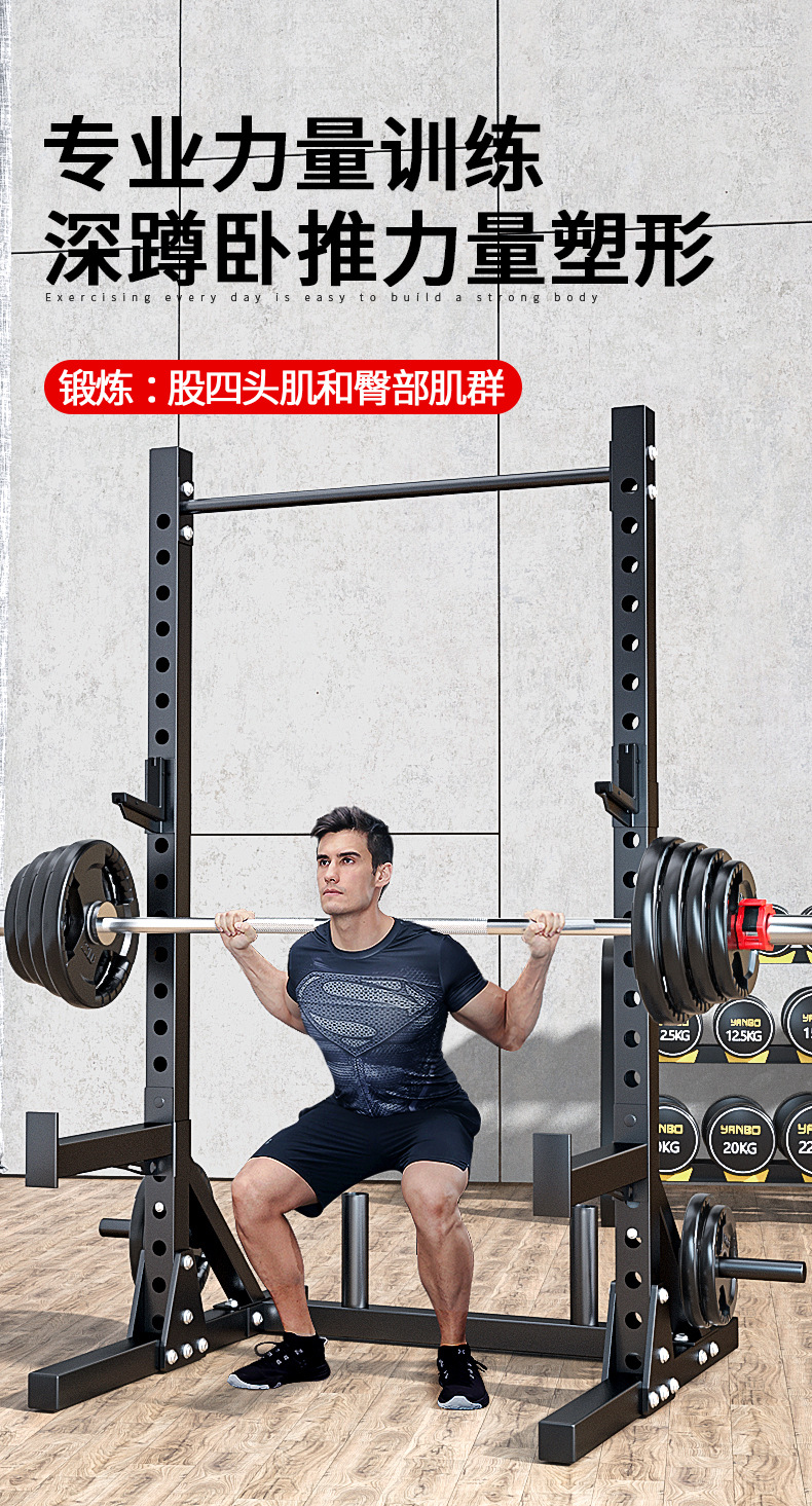 Equipo deportivo de acondicionamiento integrado con soporte de cama de levantamiento de peso de barra paralela única y multifuncional de cuclillas y empuje horizontal