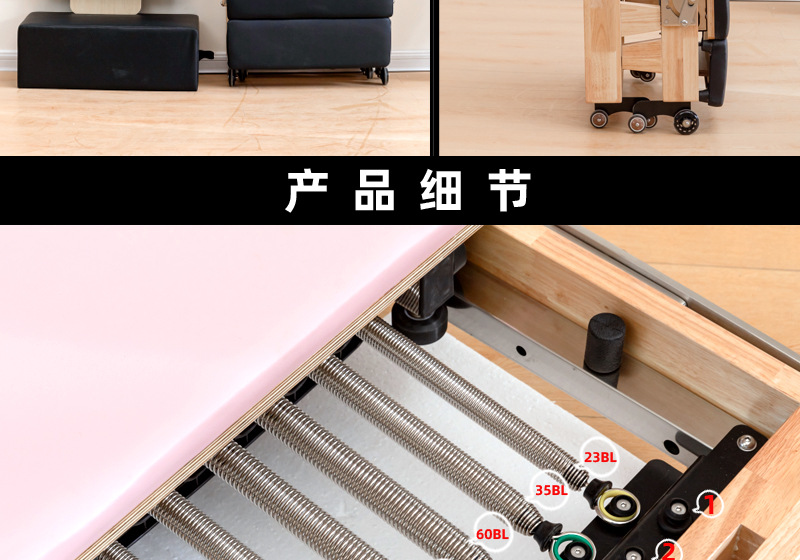 Pilates Core Cama Plegable Yoga Cama de madera sólida Equipo de ejercicios domésticos Pilates reformadores