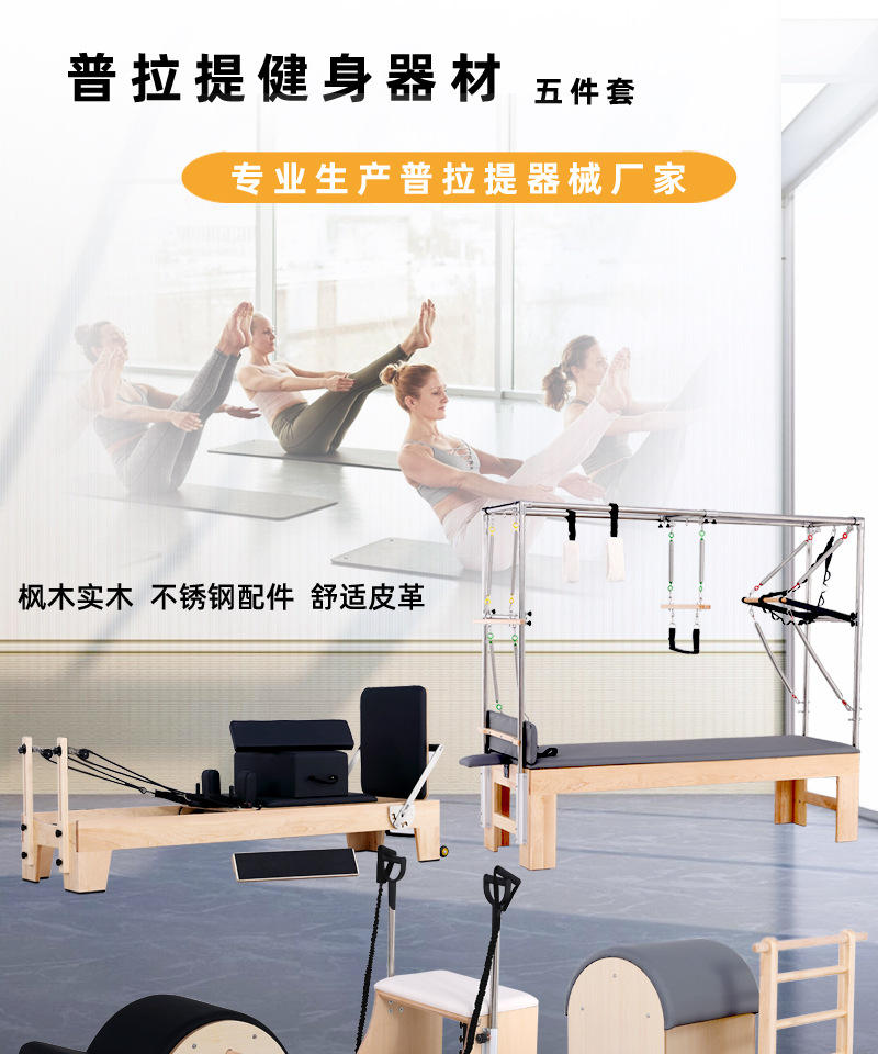 Pilates de cinco piezas, cama central, escalera de barril, silla de pedal, gimnasio, estudio, equipo de enseñanza privada