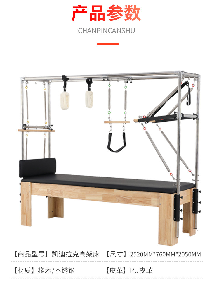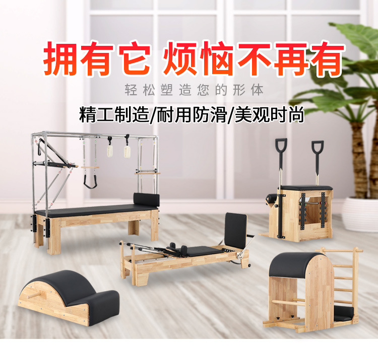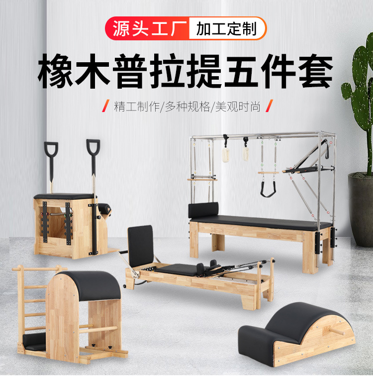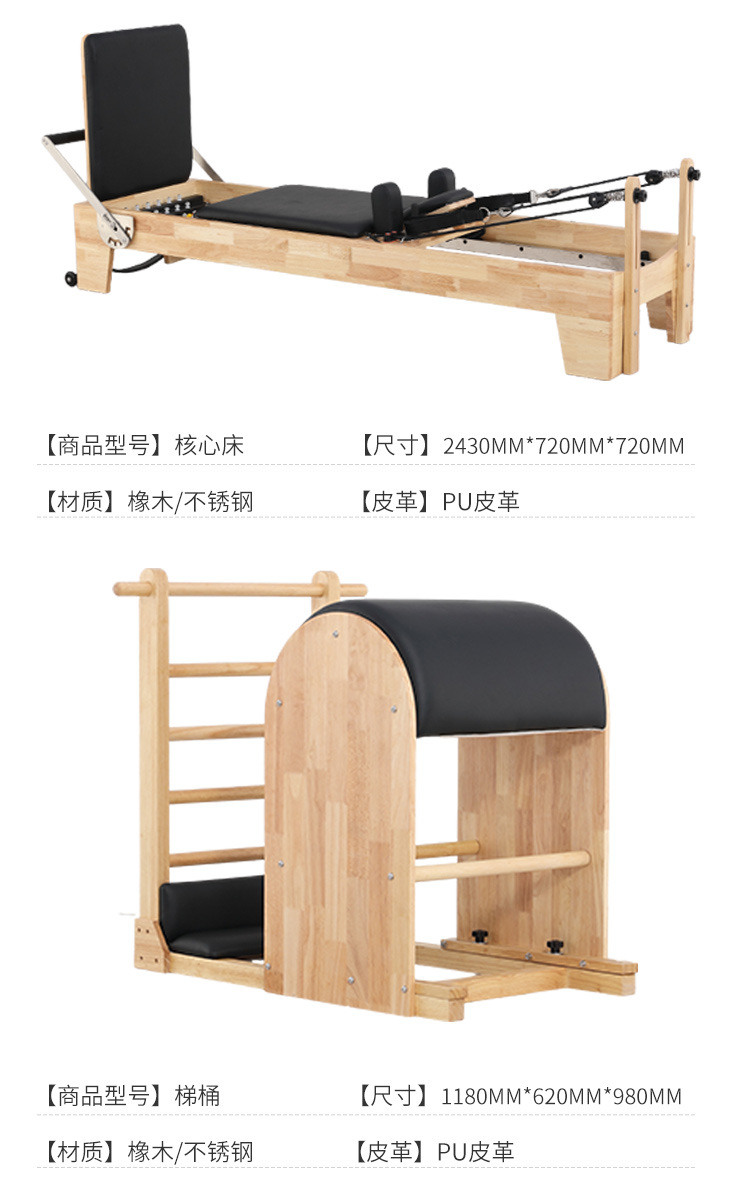 Cama de Pilates para ejercicios de core, equipo grande para estudio de yoga, cama elevada de caucho y arce, equipo de fitness dos en uno con escalera y barril semi-elevado