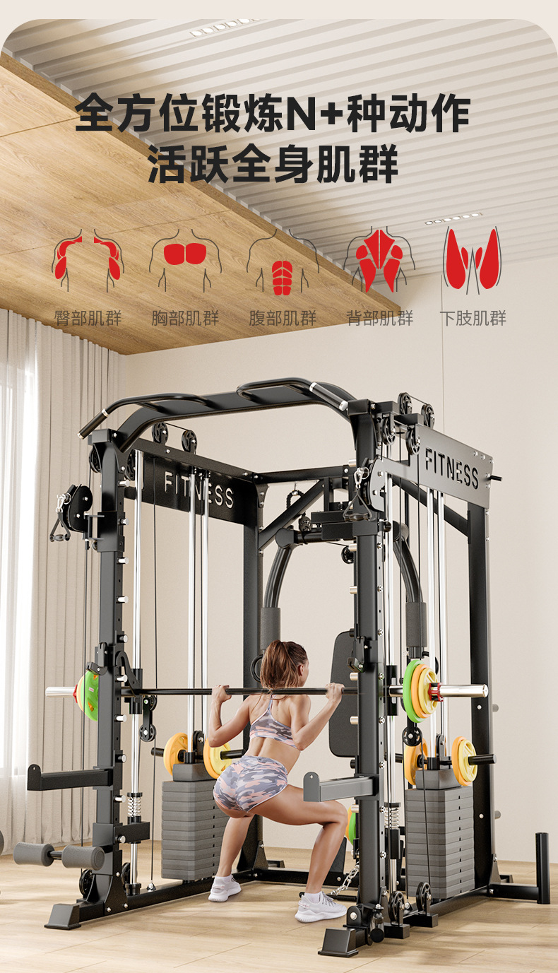 Máquina de entrenamiento integrado de máquina de Smith gimnasio pórtico equipo de entrenamiento de fuerza doméstico multifuncional todo en uno