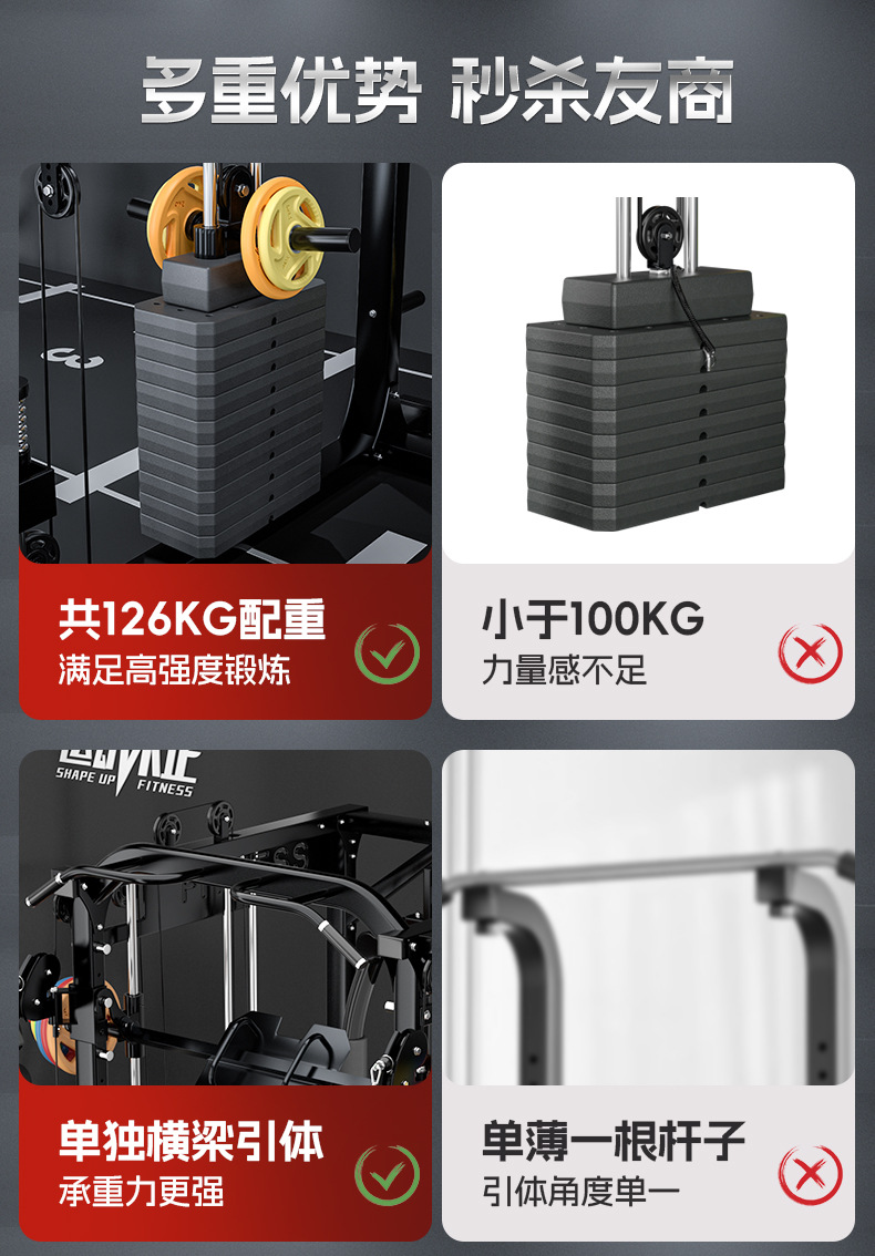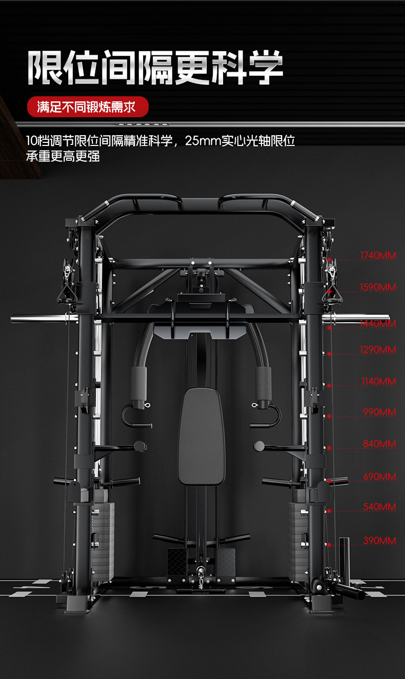 Máquina Smith multifuncional entrenador integral combinado de equipos de acondicionamiento físico domésticos en cuclillas de empuje vertical pórtico
