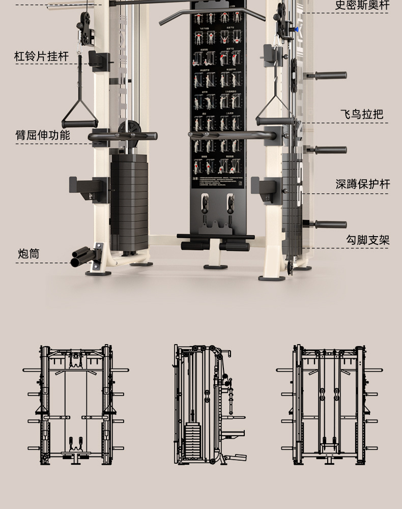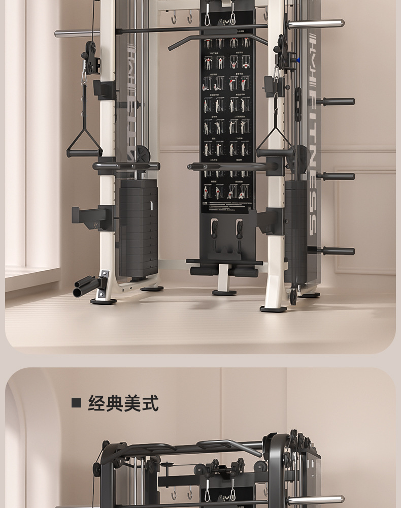 TEZEWA Smith máquina de entrenamiento integrado pájaros pórtico casero sentadilla push-up máquina multifuncional