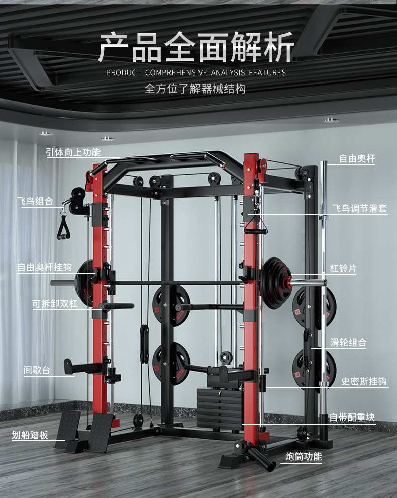 Máquina Smith entrenador integral pórtico equipo de ejercicios combinación doméstica comercial agachamiento rack multifunción pájaros
