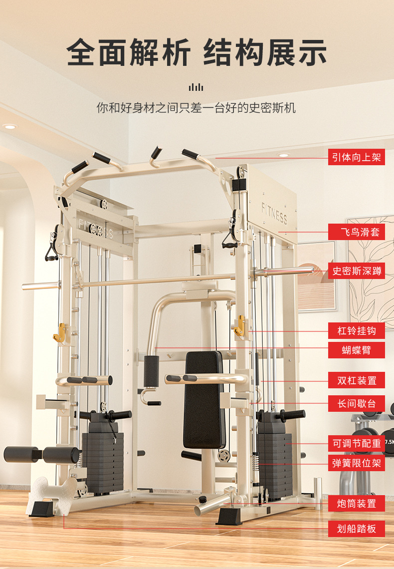 Equipo de entrenamiento integrado multifuncional de Smith combinado doméstico todo en uno equipo de fitness en cuclillas push-up portón de pájaros