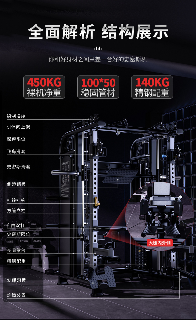 Entrenador integrado de muslo interno y externo multifuncional combinado en cuclillas y empuje horizontal, marco de pájaros