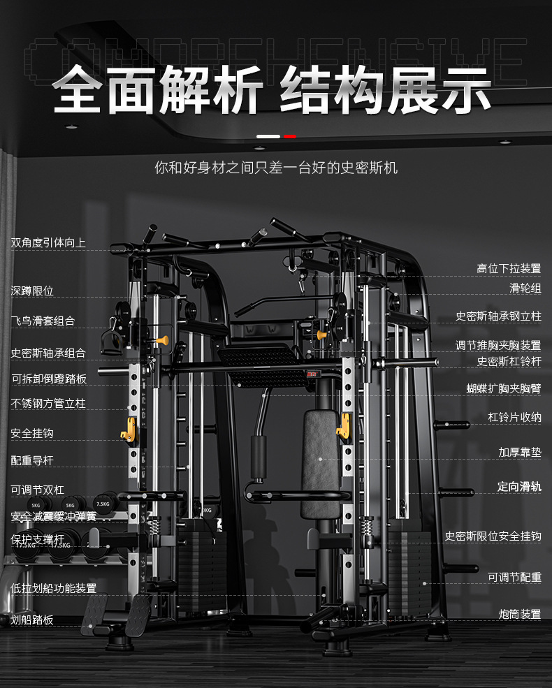 Smith máquina grande equipo integral comercial combinación traje hogar fitness pórtico vuelo pájaro cuclillas rack de entrenamiento