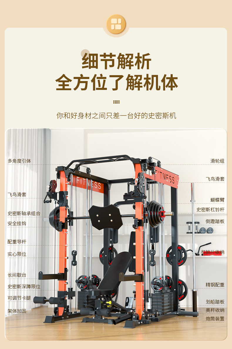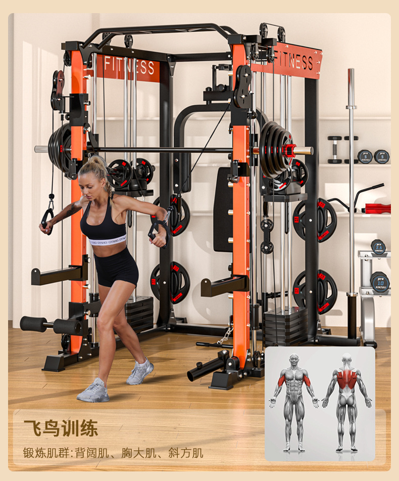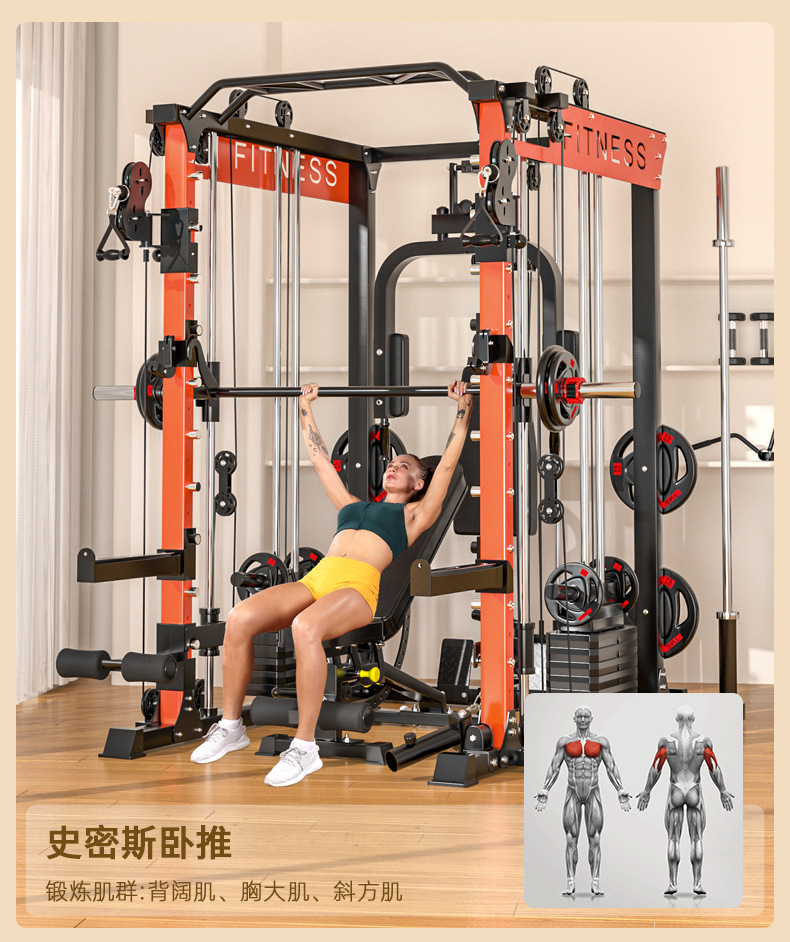 Multi-función Smith máquina pórtico hogar equipo de fitness combinación traje Banco prensa cuclillas rack Entrenamiento Vuelo pájaro rack