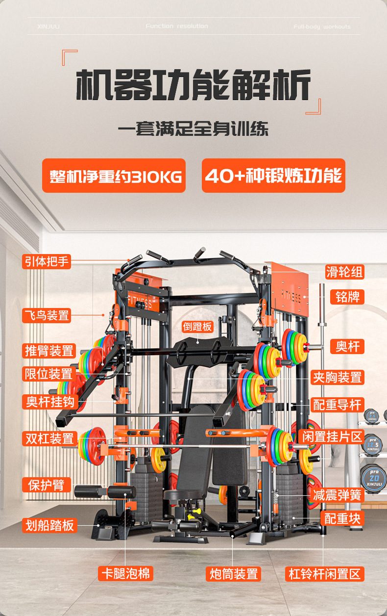 Multi-Función de la máquina de Smith gran entrenador integral casa equipo de fitness en cuclillas pórtico pájaro volador banco de prensa