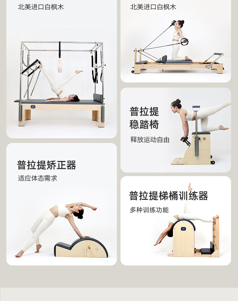 Blanco Maple Pilates núcleo cama de entrenamiento de Cadillac estudio de yoga privado Fitness Pilates conjunto de cinco piezas