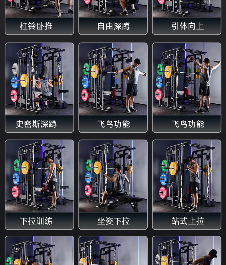 Gimnasio comercial Smith máquina fuerza equipo de entrenamiento integral traje combinación hogar multifuncional cuclillas rack