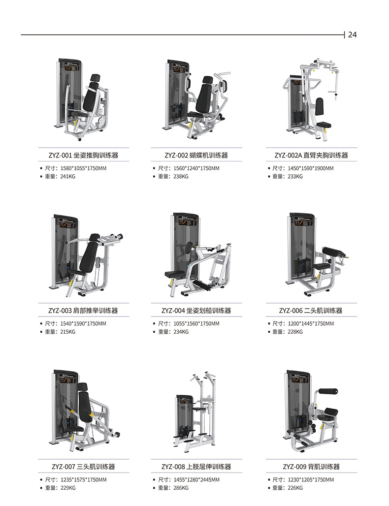 | Especificaciones | Entrenador de pecho con clip de brazo recto ZYZ-002A,ZYZ-004 sentado Rowing trainer,Entrenador de bíceps ZYZ-006,ZYZ-009 dorsal muscle trainer,ZYZ-012 high pull back trainer,ZYZ-015 leg push trainer,Entrenador de extensión de piernas ZYZ-019,Dispositivo de entrenamiento de empuje de pecho y hombros ZYZ-003A,ZYZ-0607 entrenador de dos y tres |