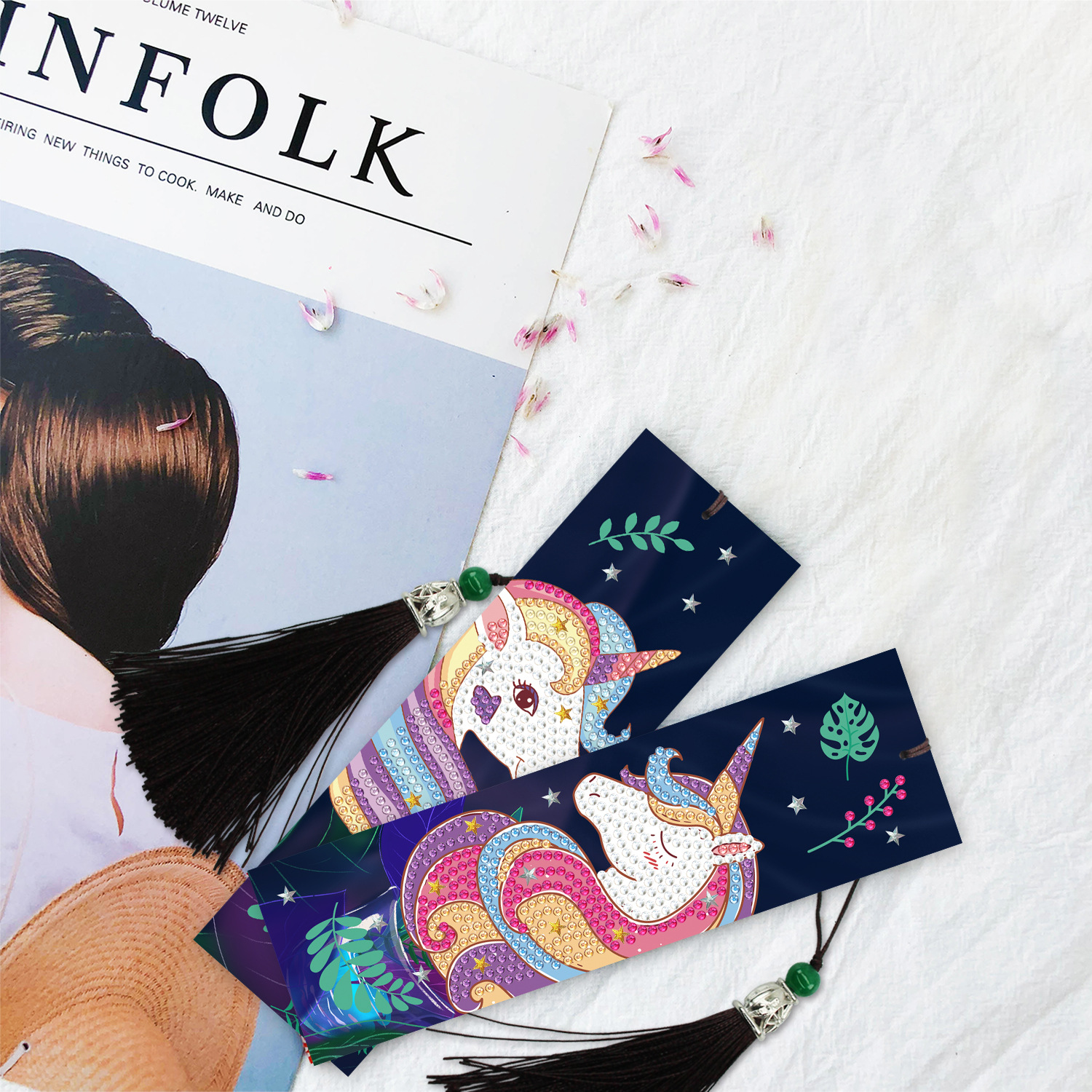 Suministro exclusivo transfronterizo de accesorios para pintura de diamantes, marcapáginas de bordado de diamantes hechos a mano, diamantes de formas especiales con borlas, juego de varias piezas