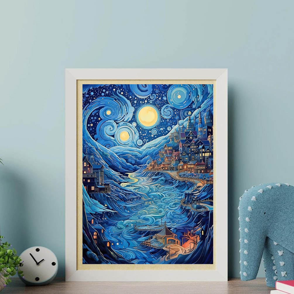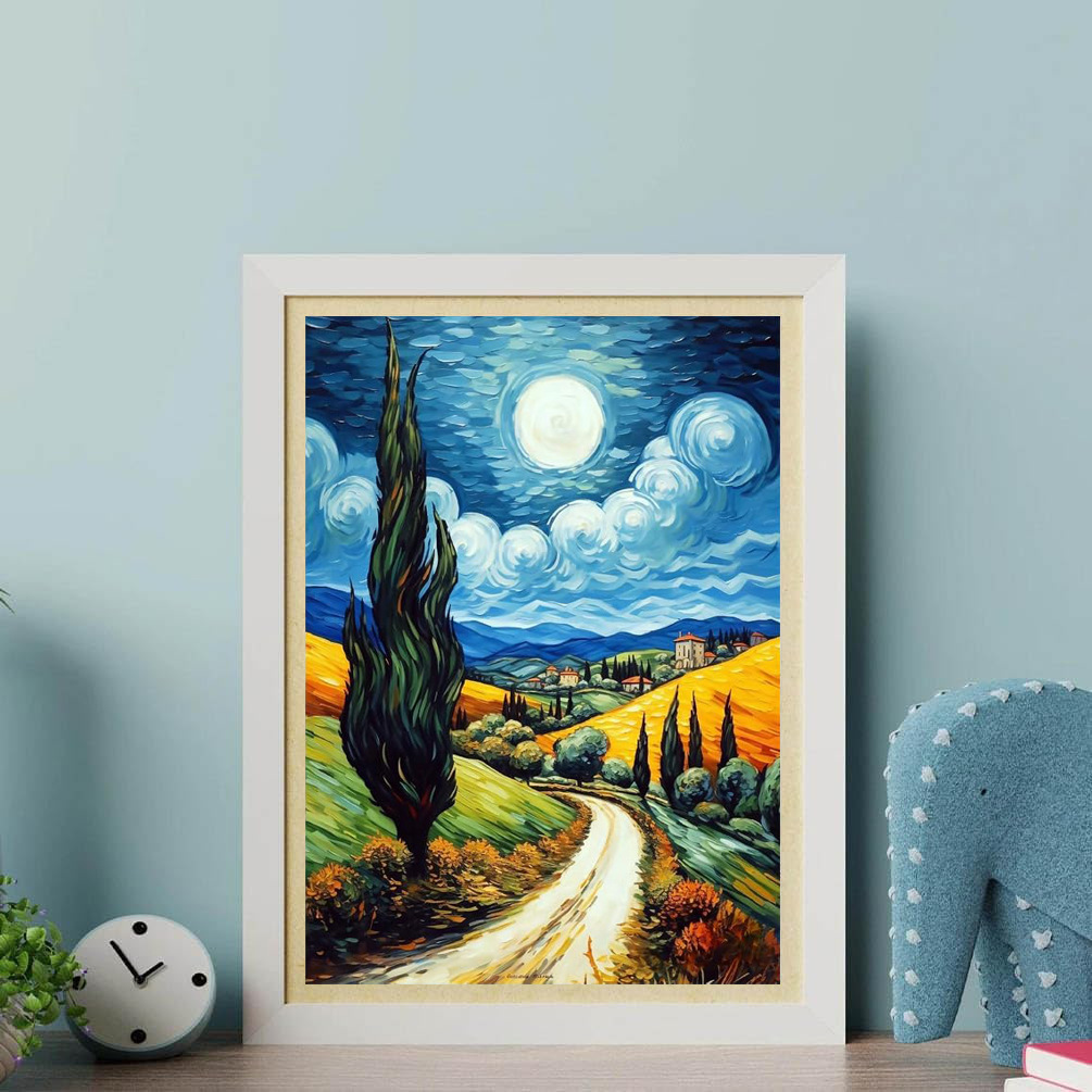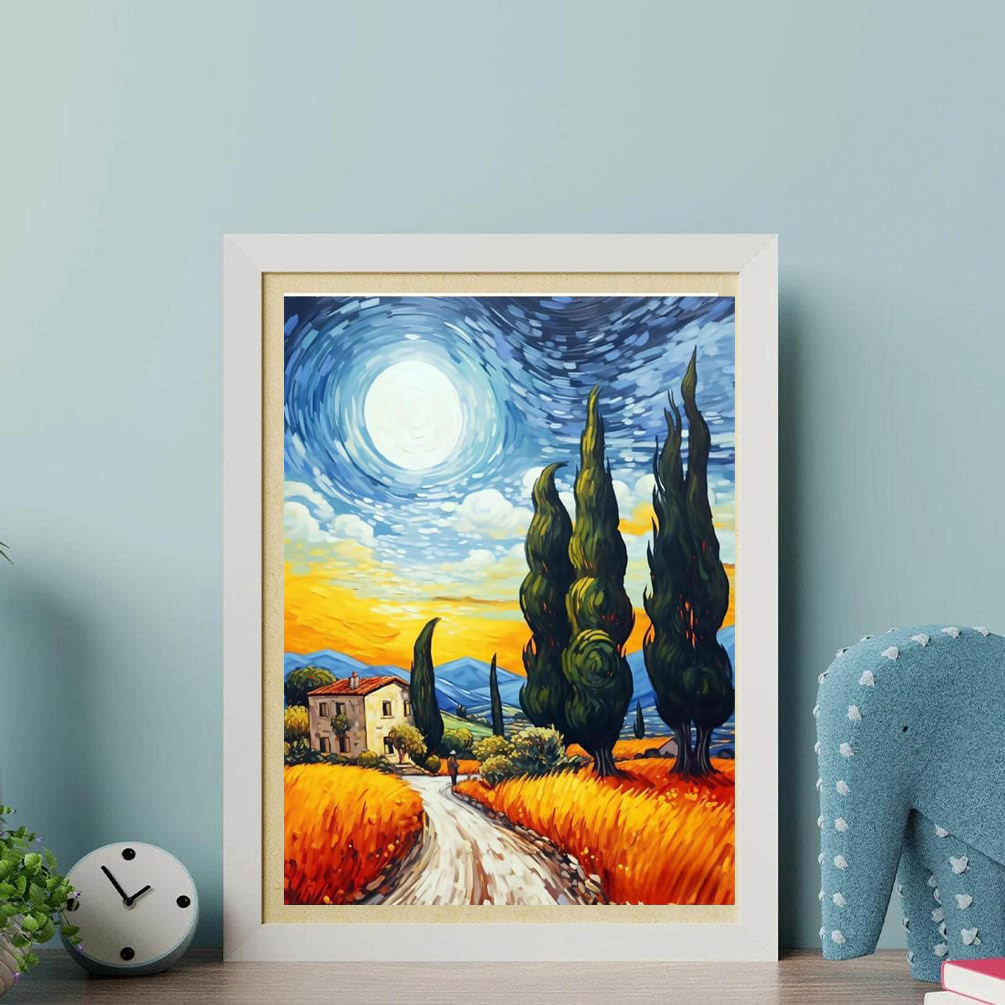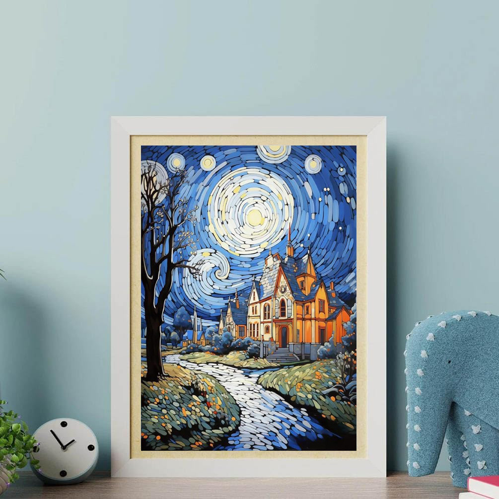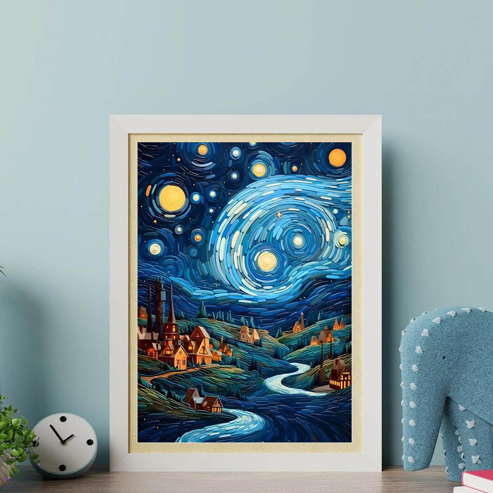 Pintura de diamante Van Gogh serie de estrellas hecha a mano DIY pintura decorativa redonda diamante completo sala de estar dormitorio pintura de paisaje con marco