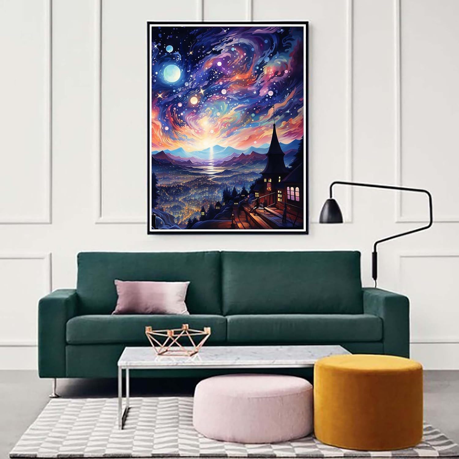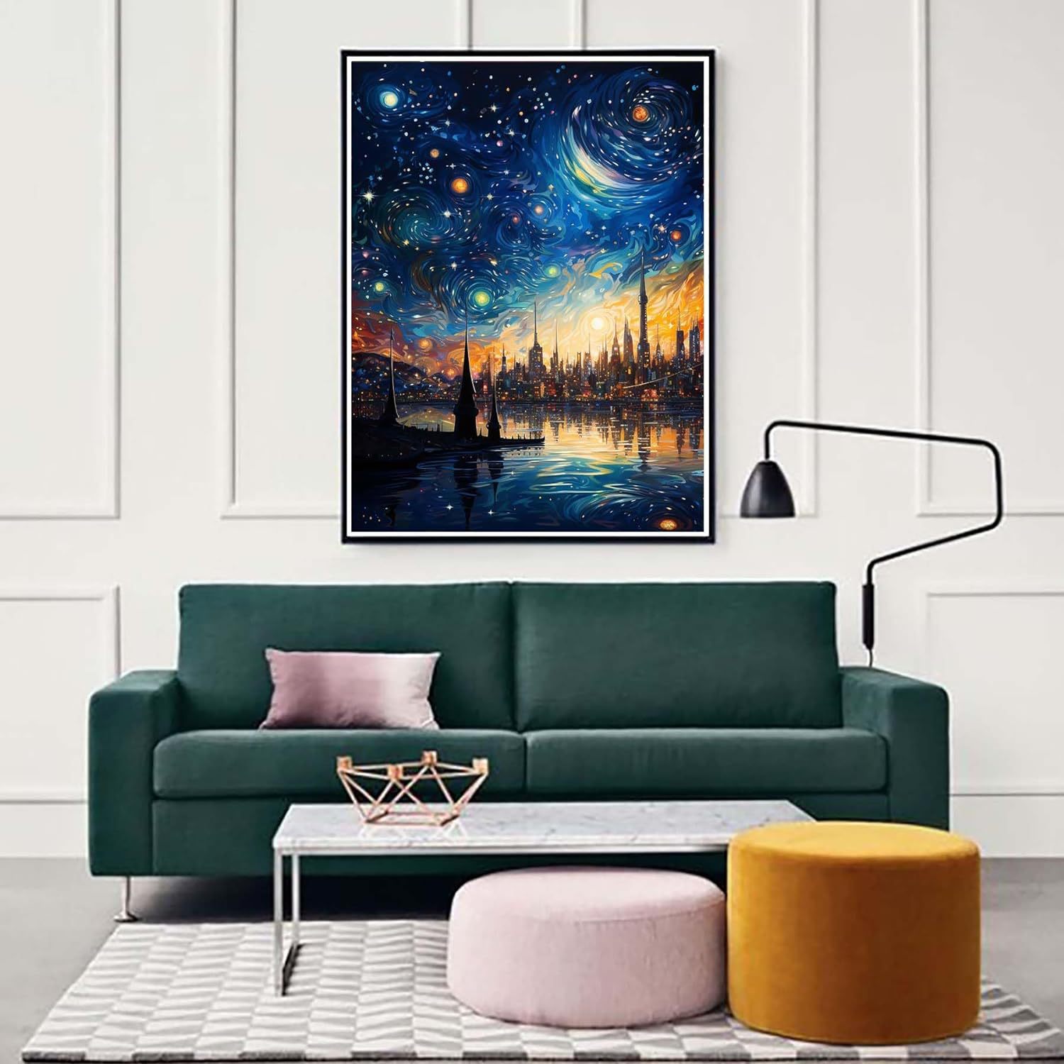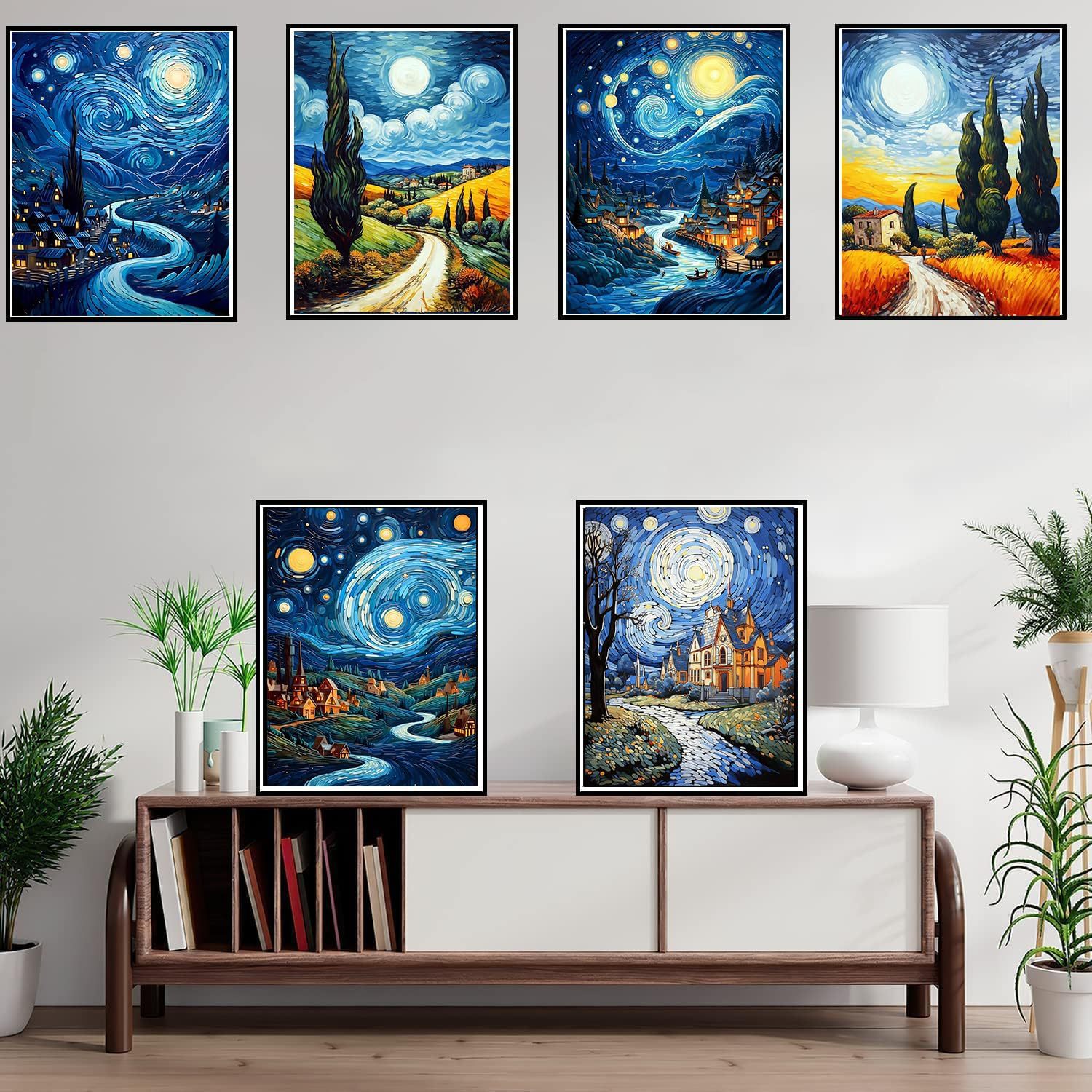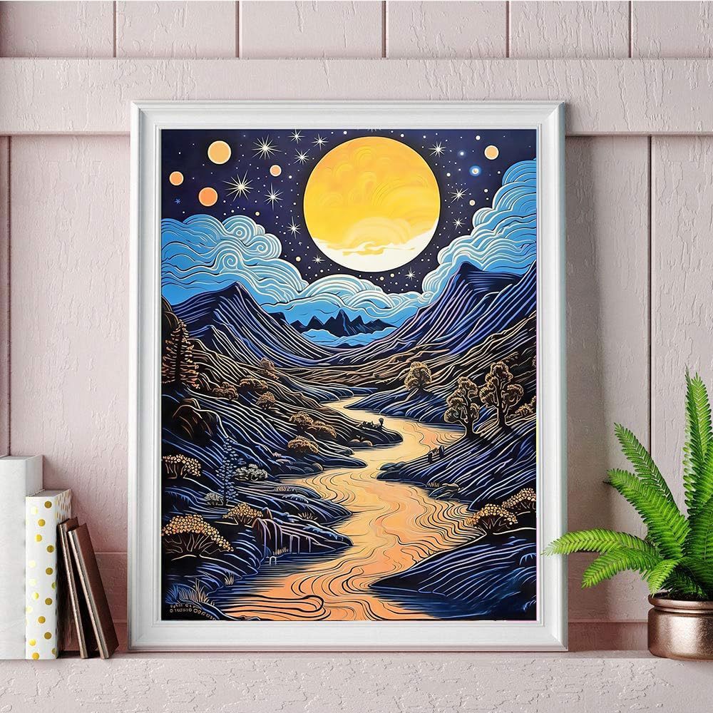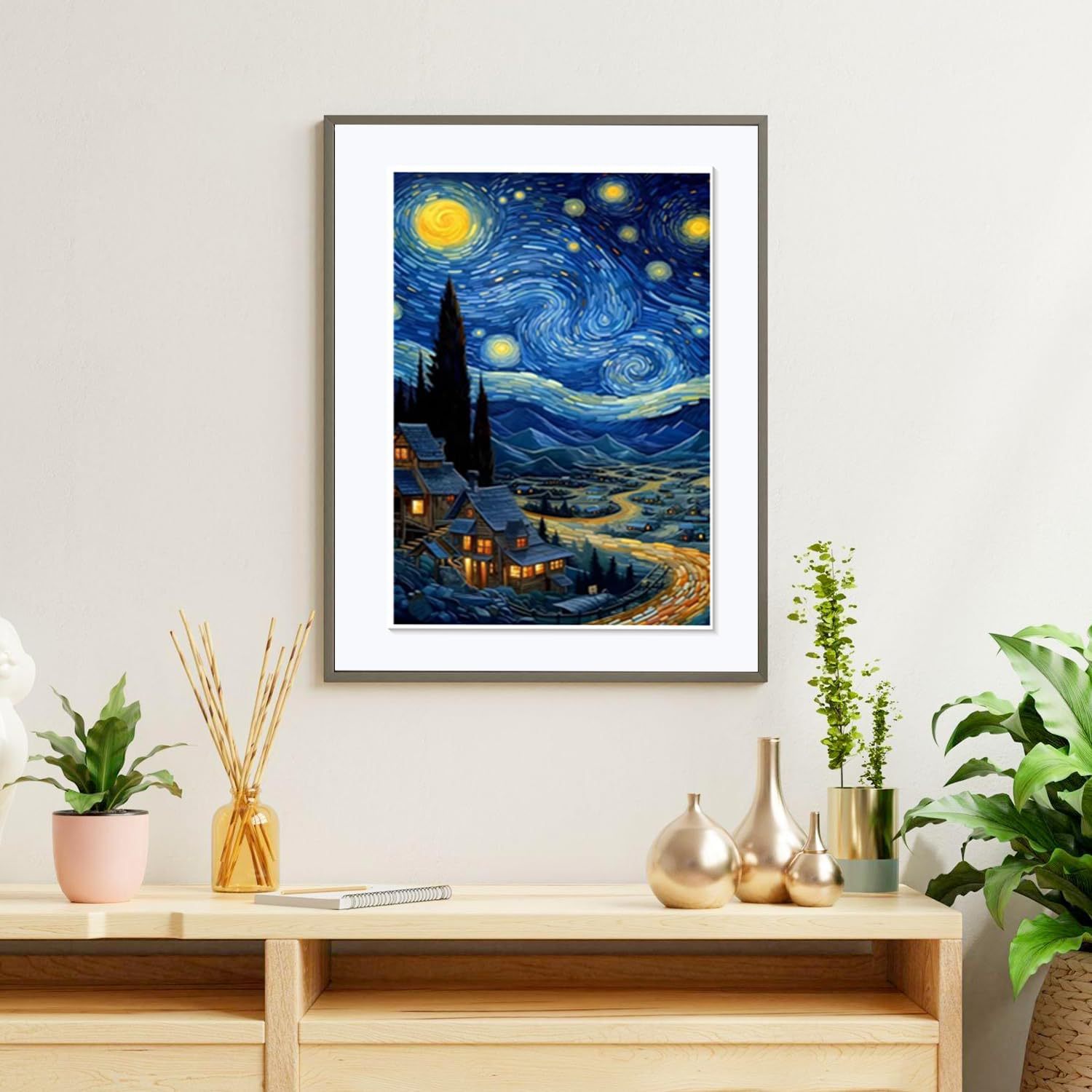 Pintura de diamante Van Gogh serie de estrellas hecha a mano DIY pintura decorativa redonda diamante completo sala de estar dormitorio pintura de paisaje con marco
