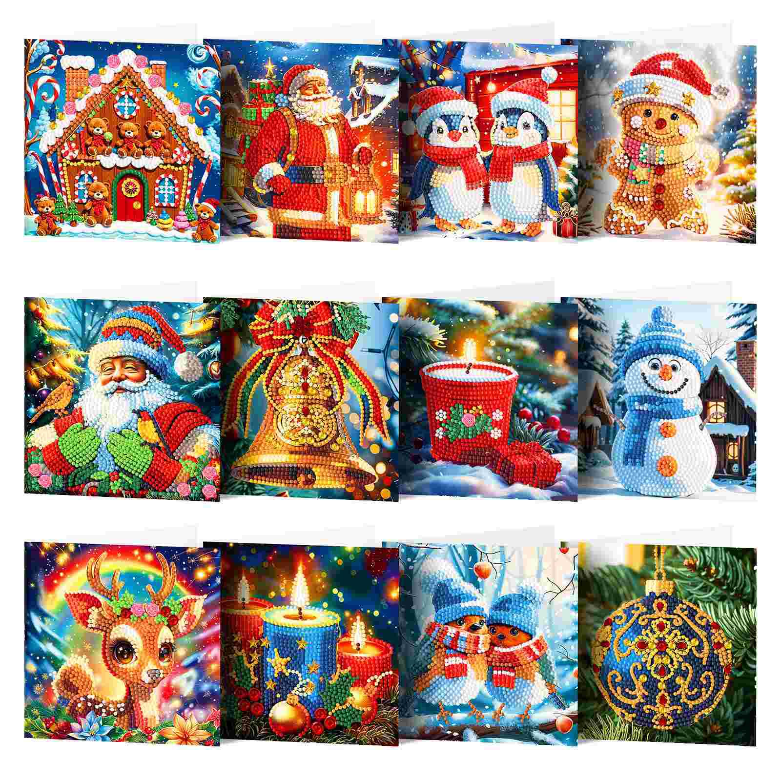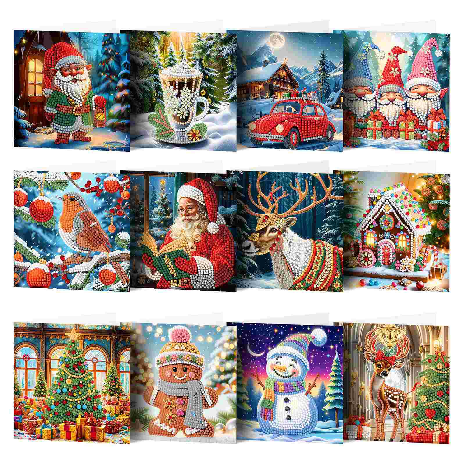 Productos periféricos para pintura de diamantes transfronterizos, tarjetas de felicitación DIY hechas a mano, pegatinas de diamantes navideñas, manualidades exclusivas con diamantes de imitación con temática de dibujos animados, disponibles para venta al por mayor.