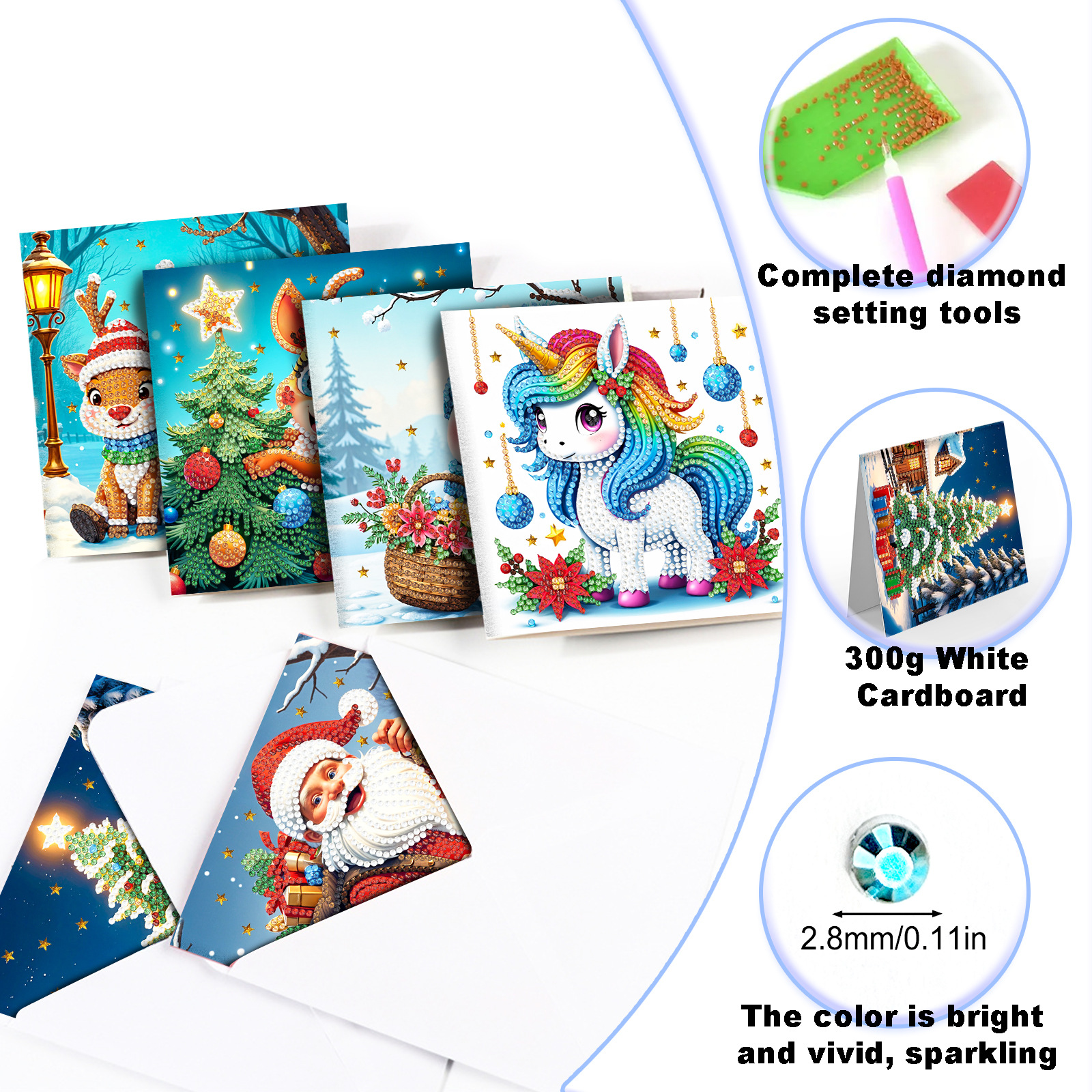 Explosiones transfronterizas de Navidad multiserie de tarjetas de felicitación puntuales hechas a mano 9 conjuntos de sobre de diamante 6 conjuntos de dibujos animados