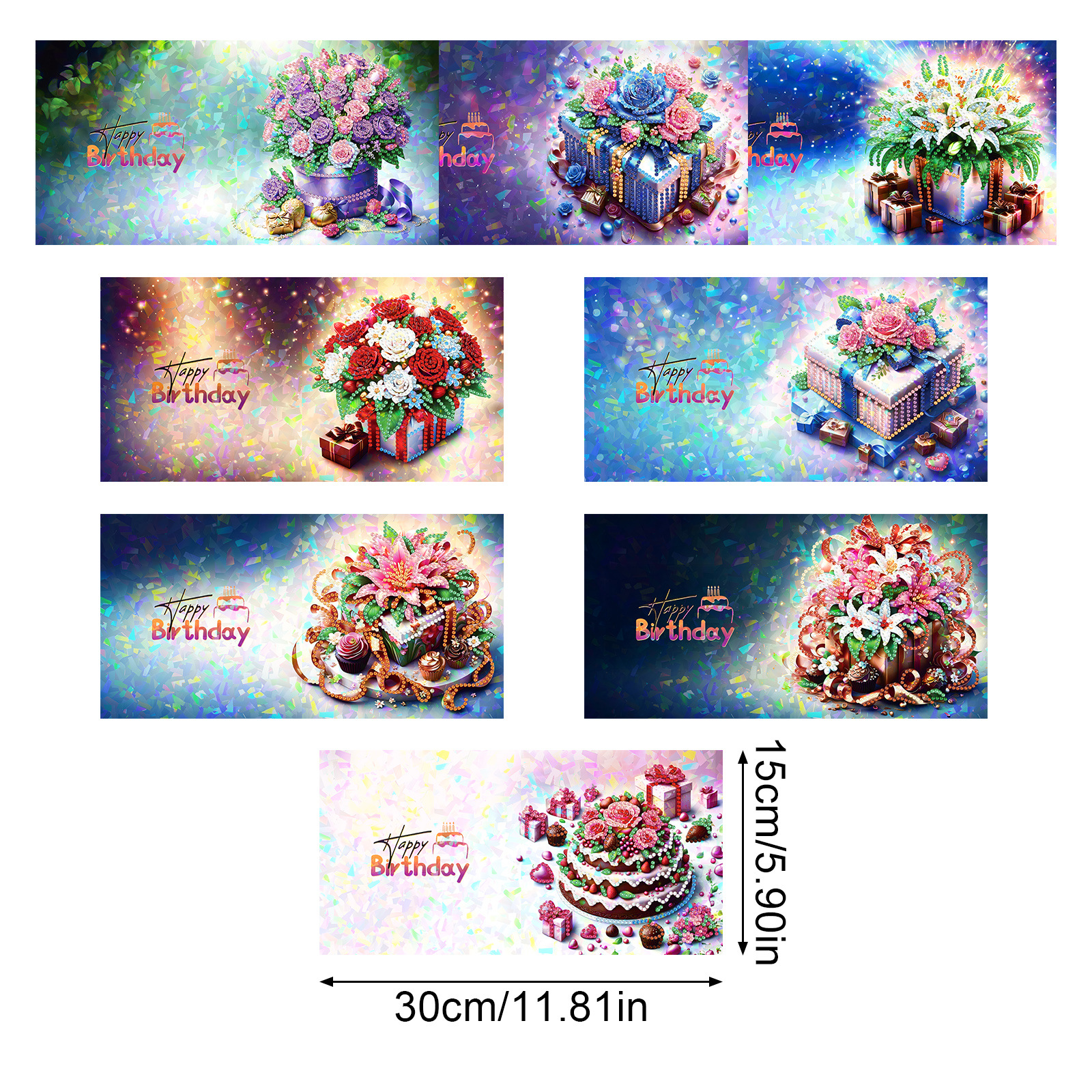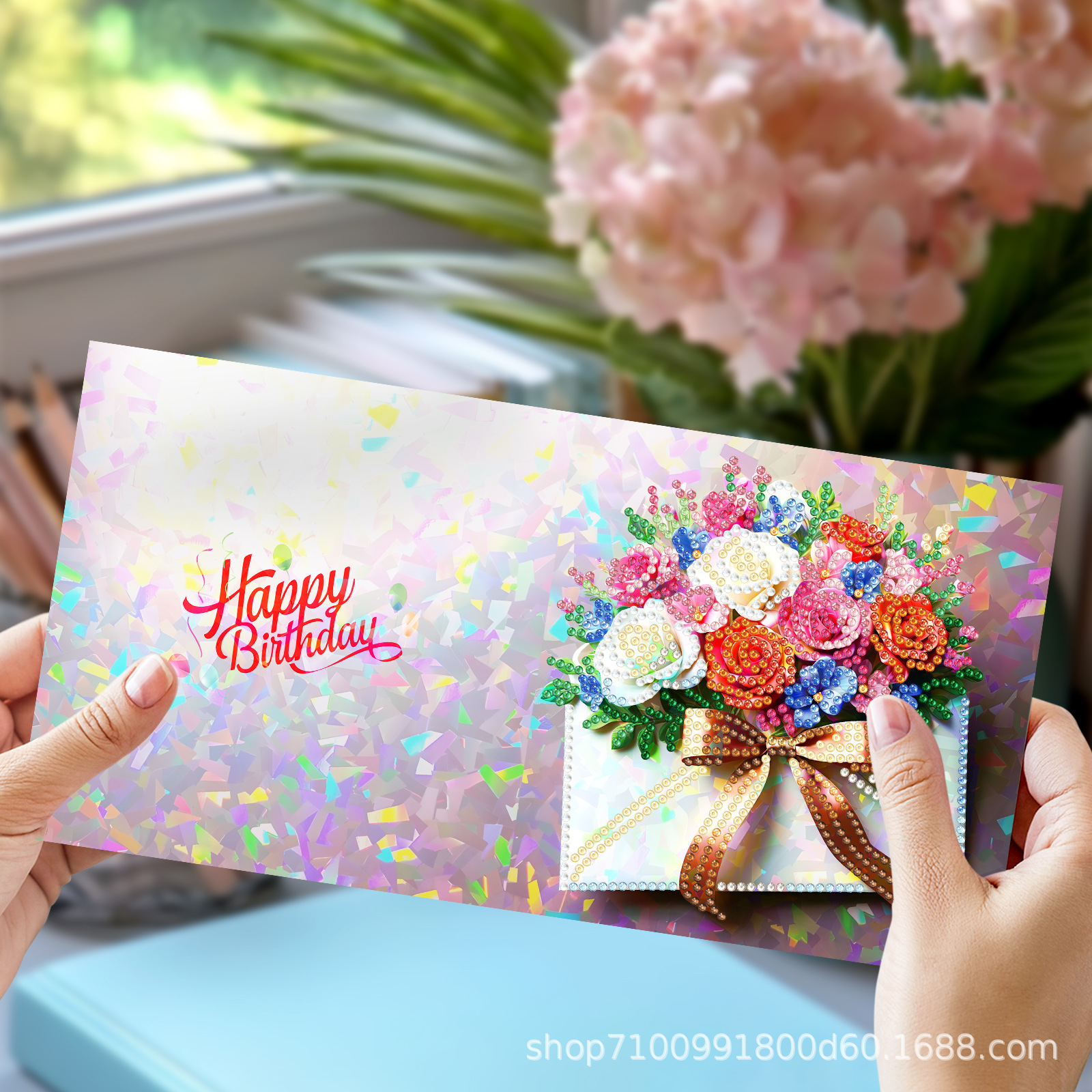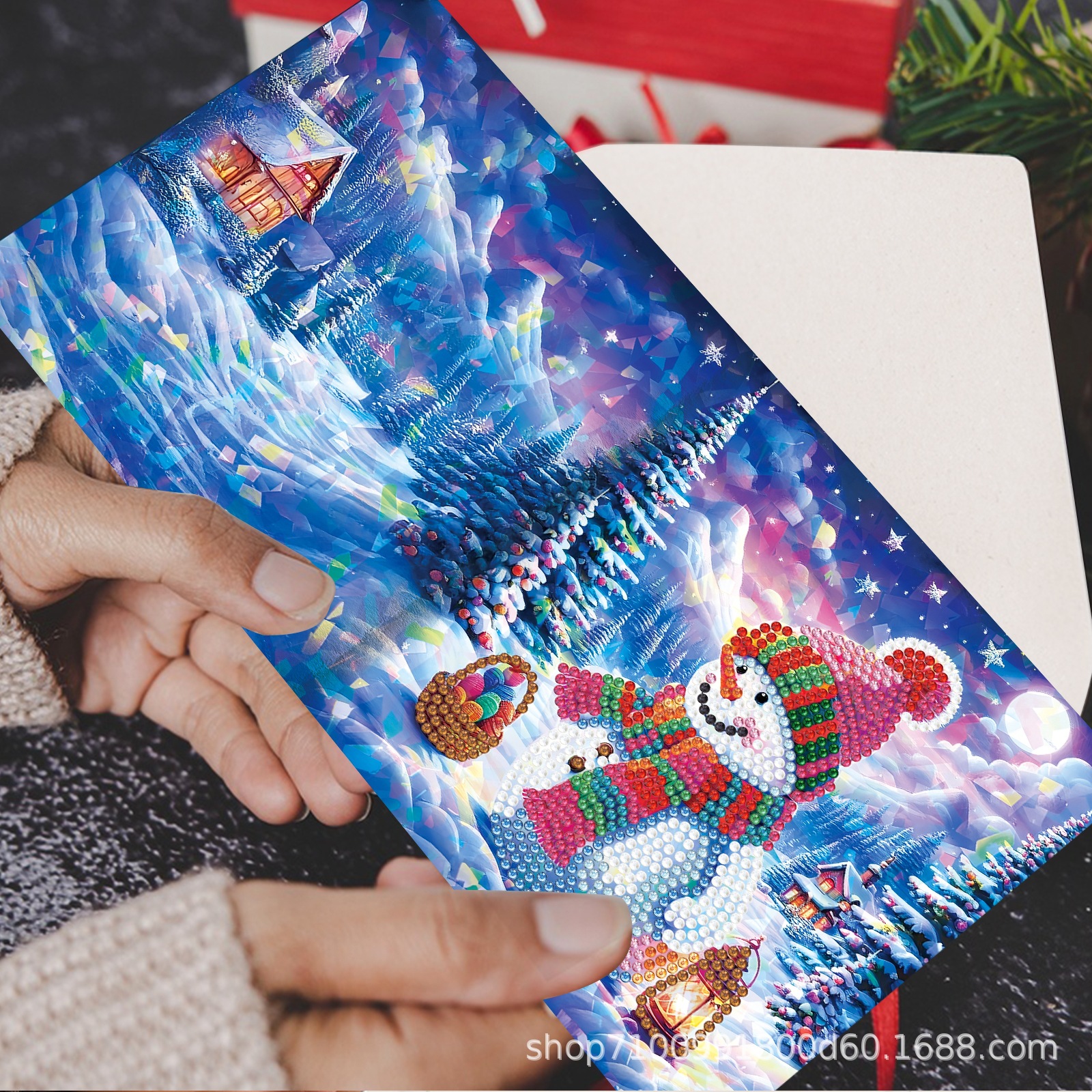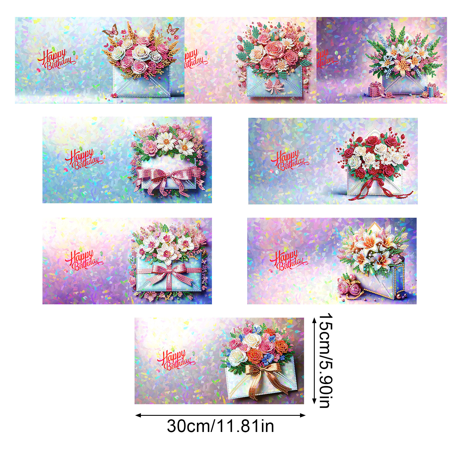 Nuevos diamantes transfronterizos alrededor de la pintura de diamantes DIY flores de Navidad tarjetas de regalo de cumpleaños 12 tarjetas de diamantes