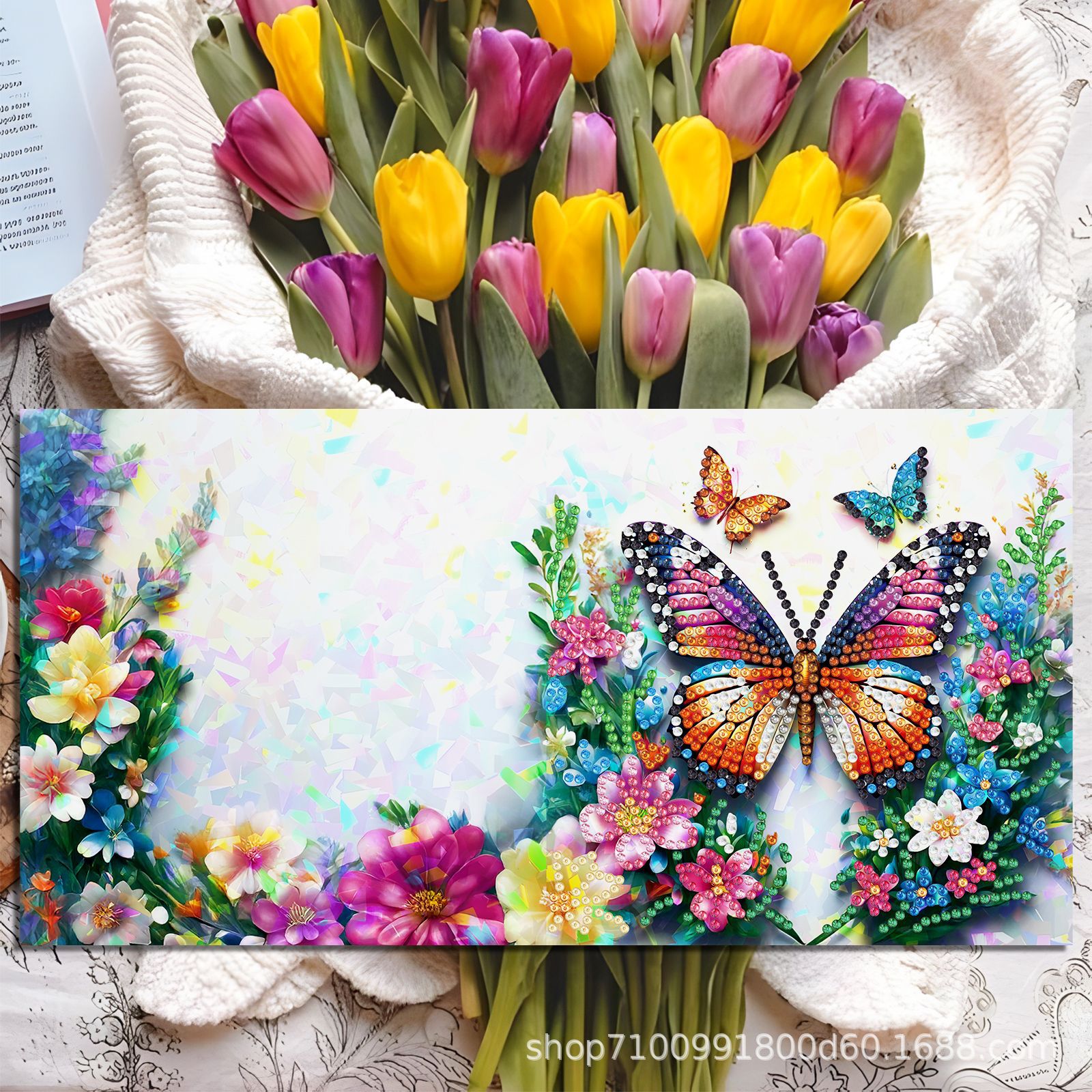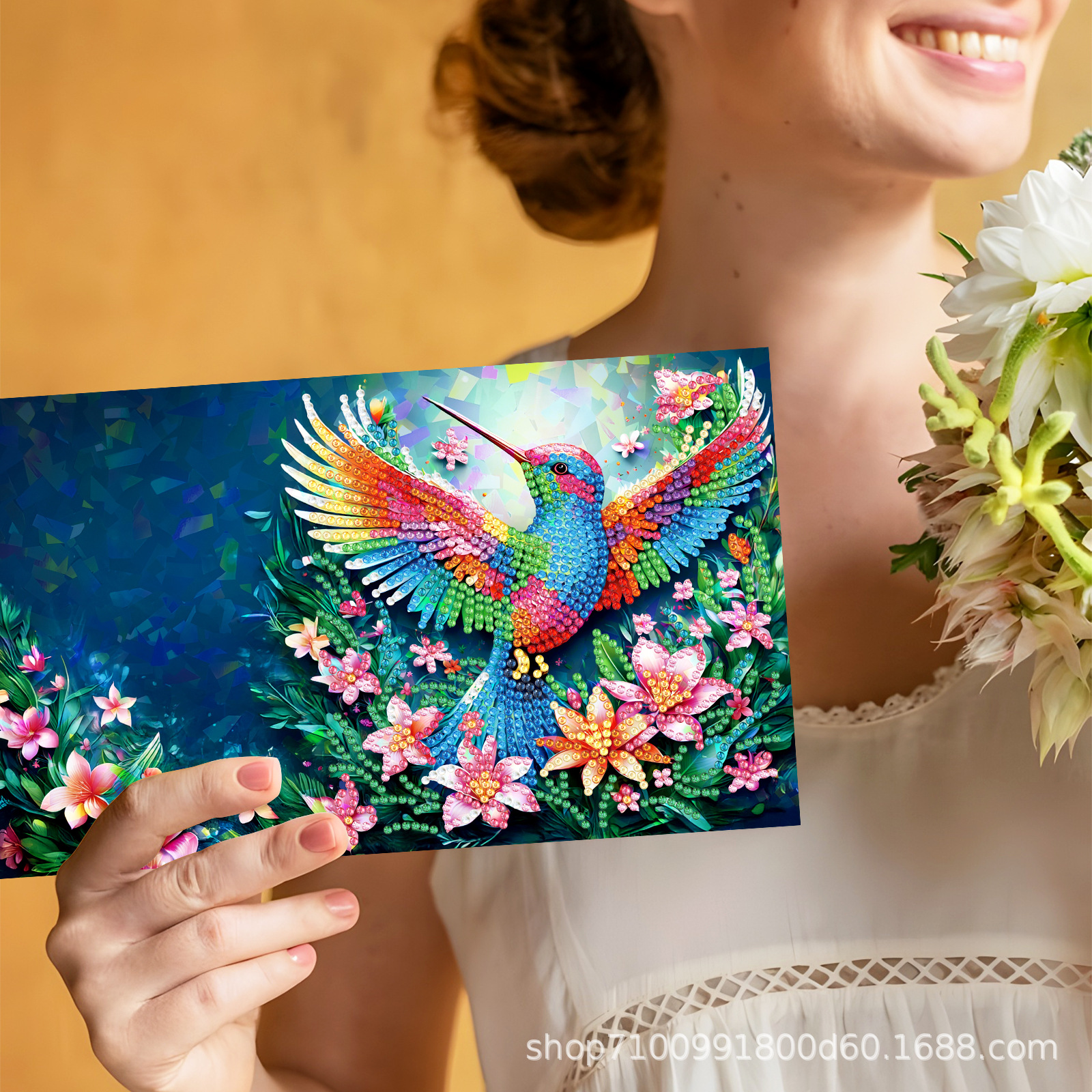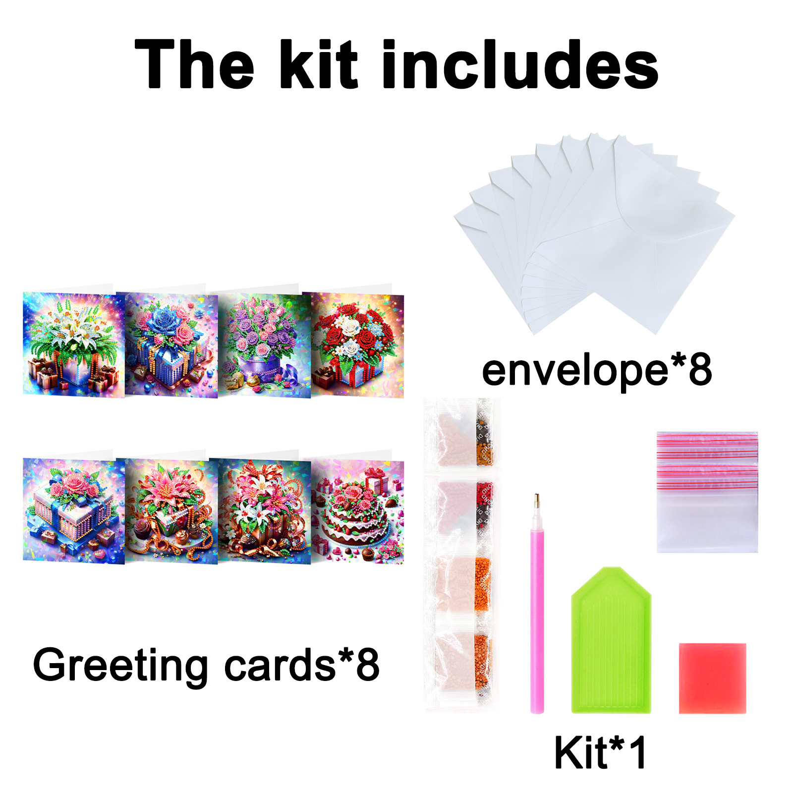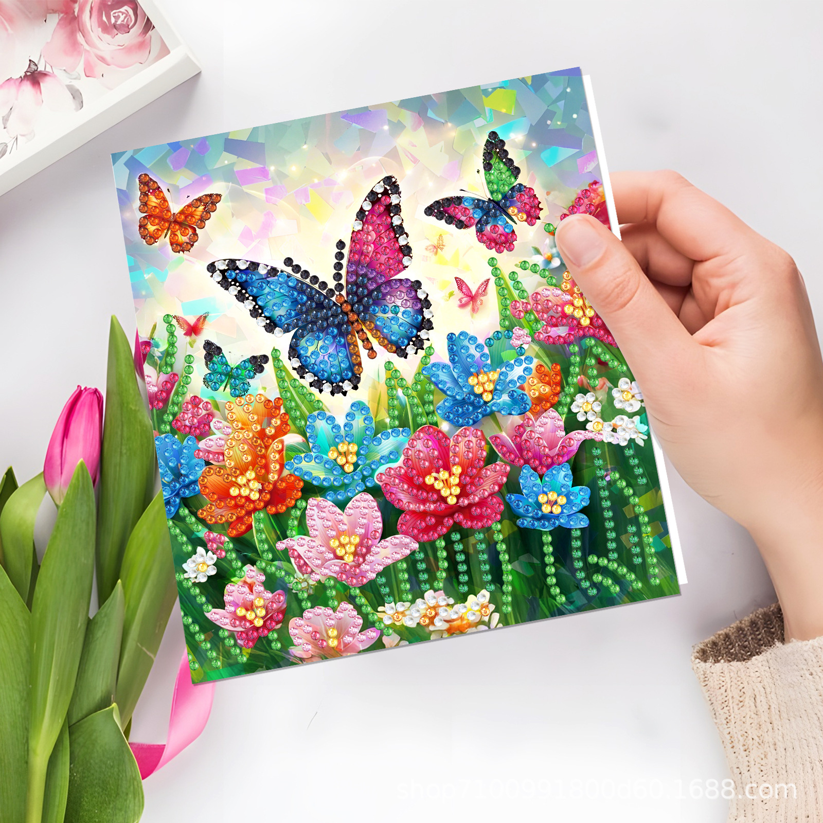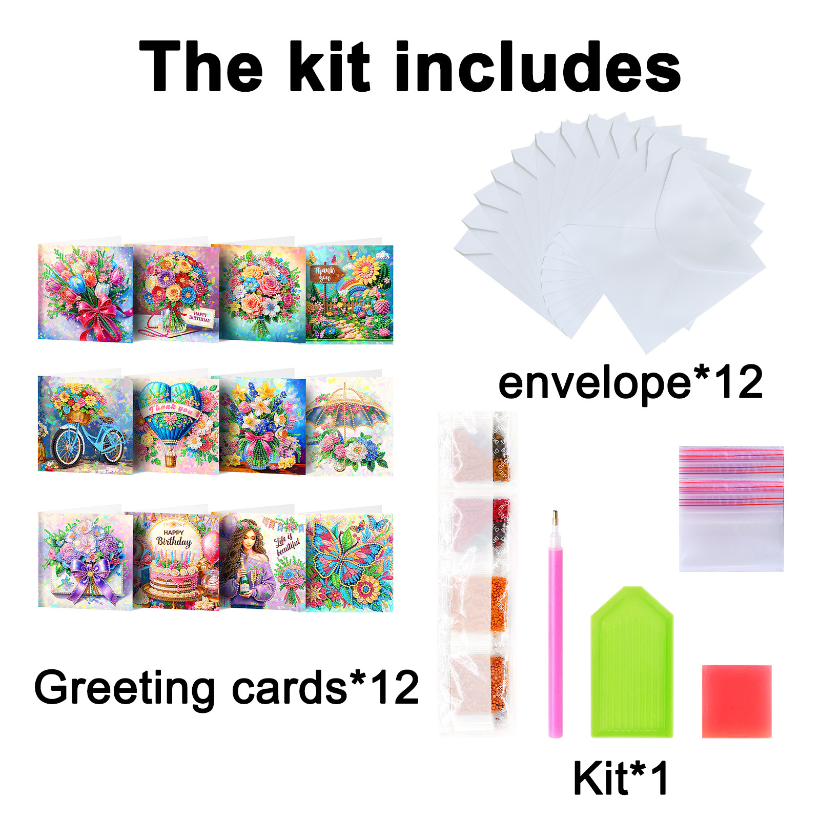 Nuevos diamantes transfronterizos alrededor de la pintura de diamantes DIY flores de Navidad tarjetas de regalo de cumpleaños 12 tarjetas de diamantes