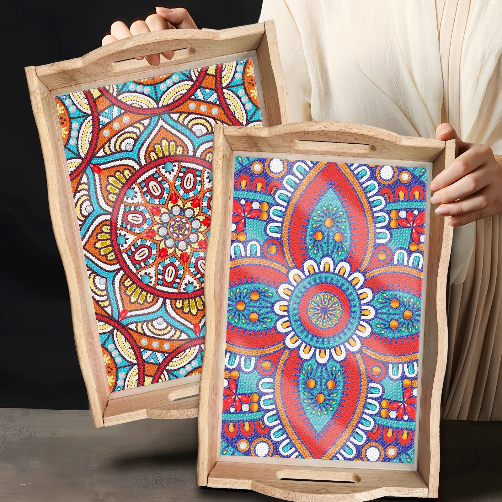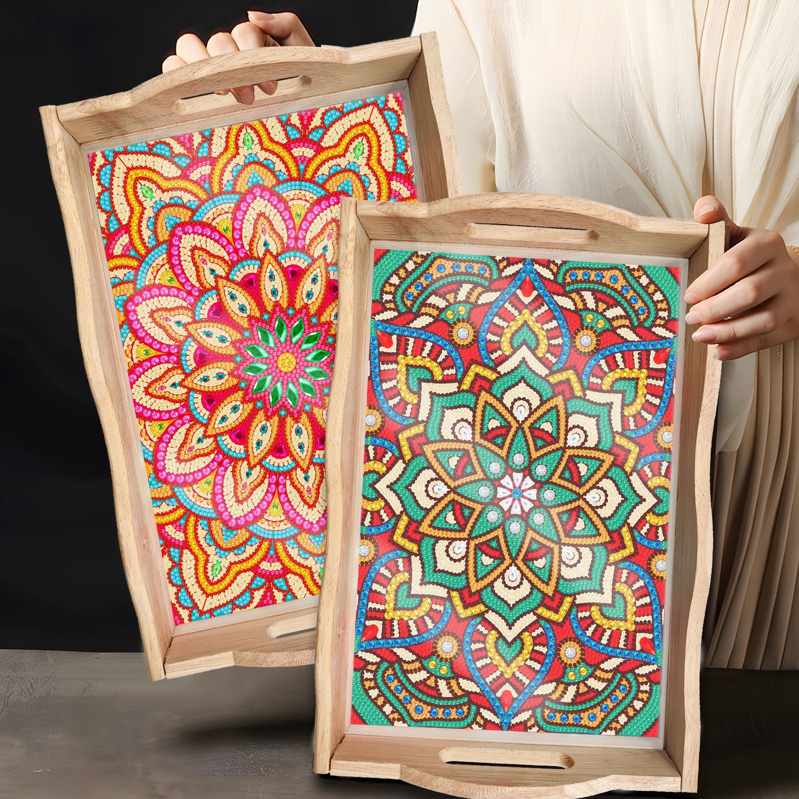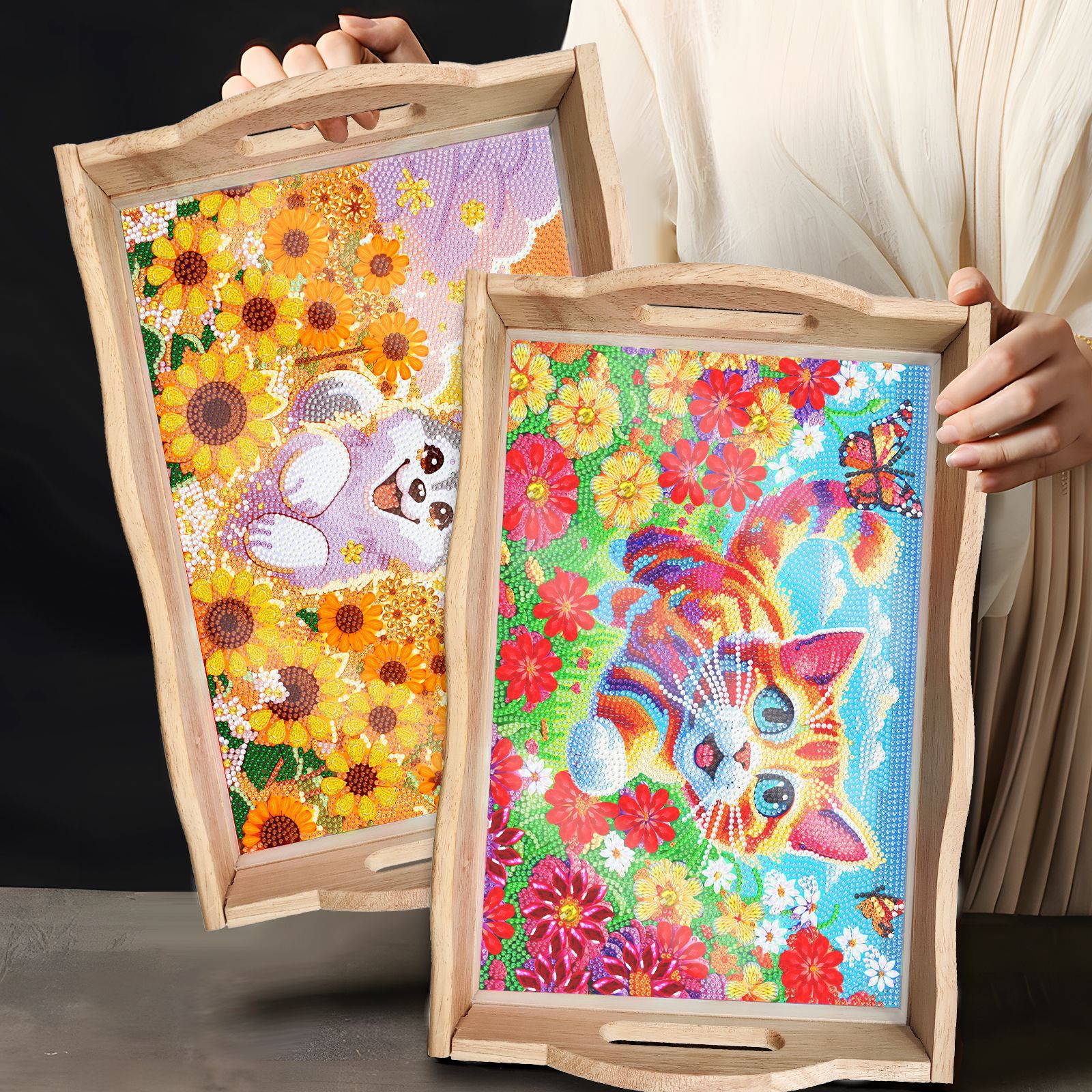 Transfronterizos dedicados a la pintura de diamantes DIY hecha a mano bandeja de madera cuadrada pegatinas de perforación de animales mandala personalizados
