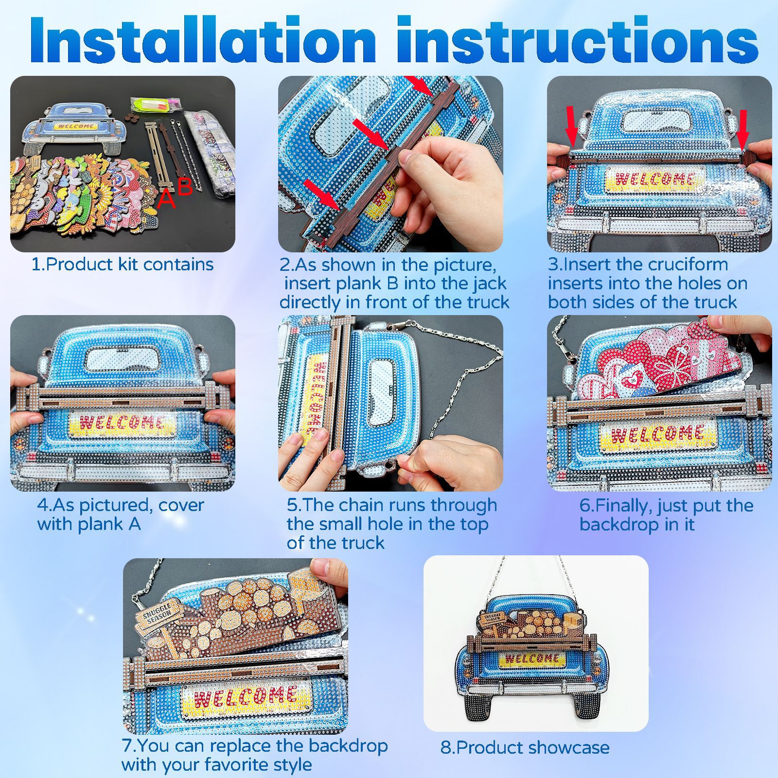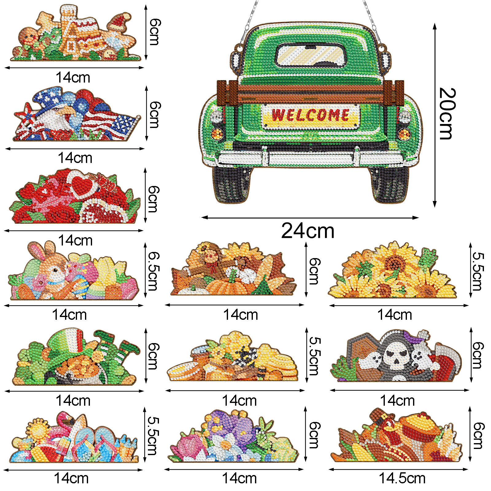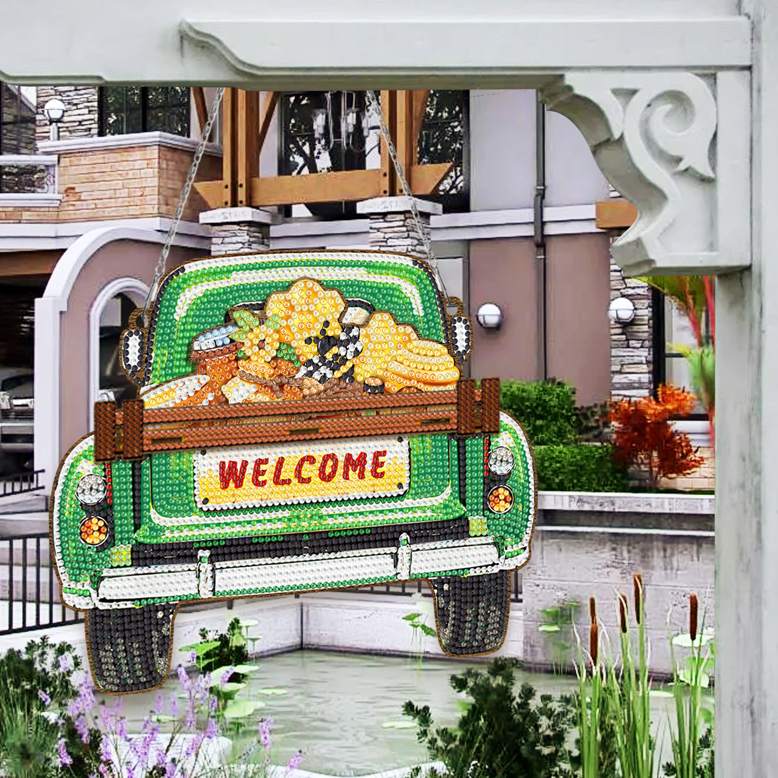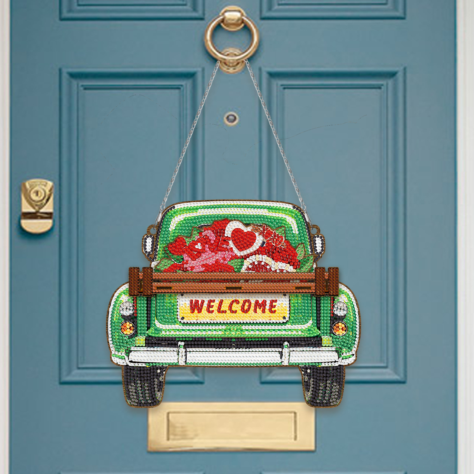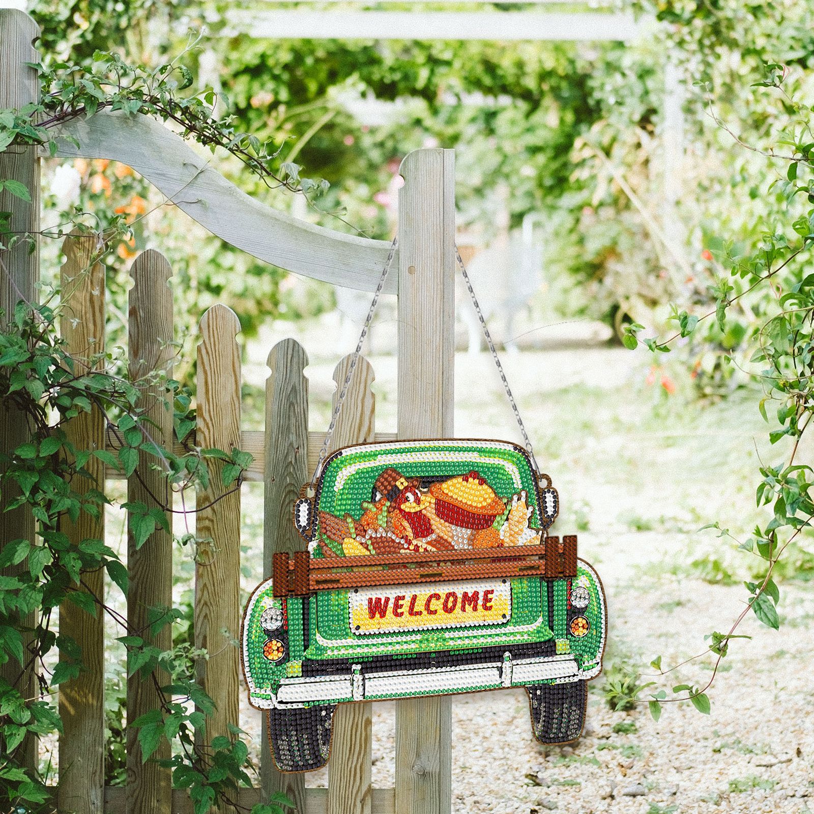 Pintura de diamante perimetral decoración de la puerta hecha a mano dibujos animados DIY reemplazable carro de madera colgante pintura de diamante al por mayor