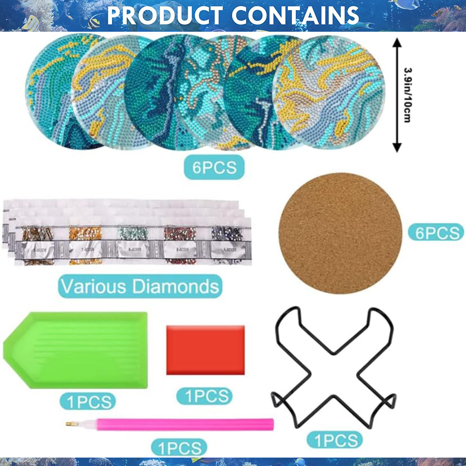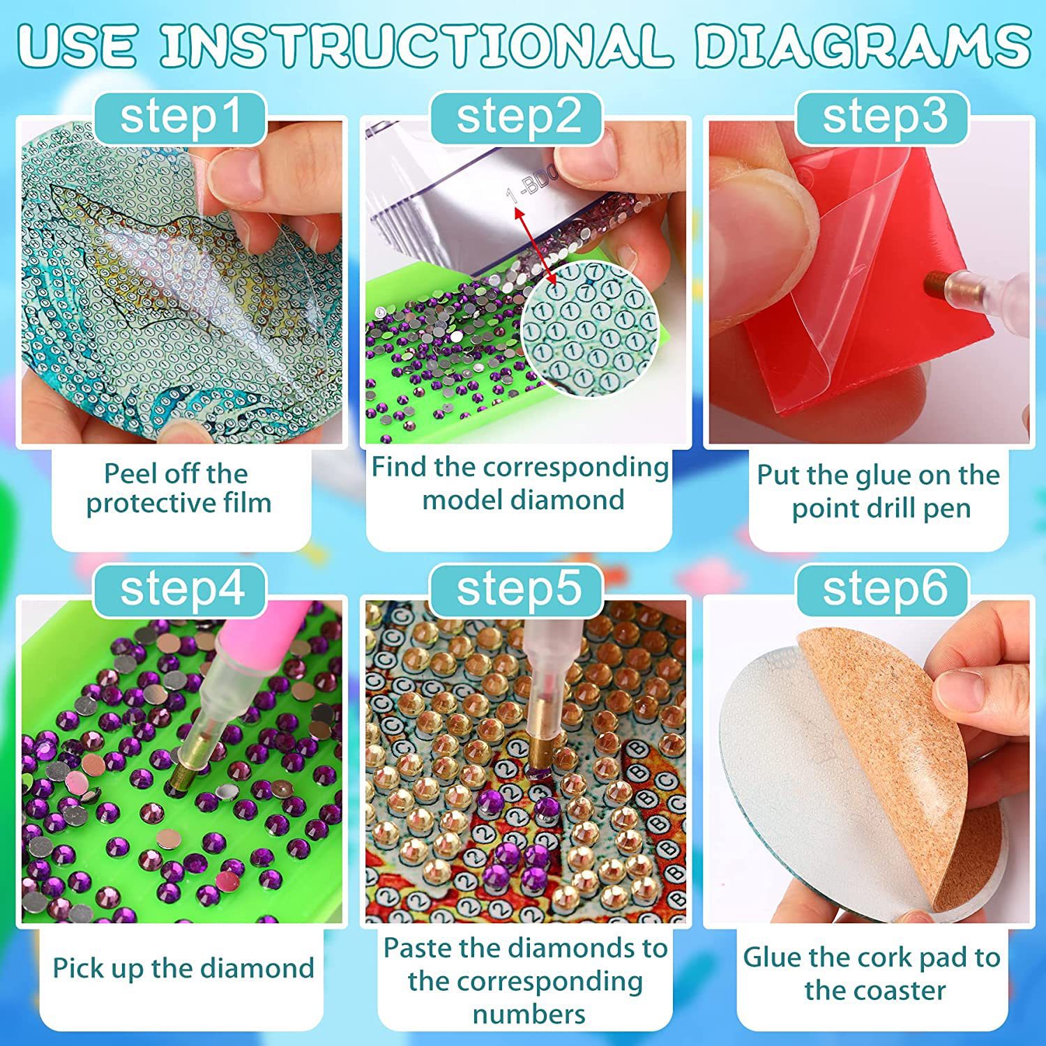 Posavasos redondo de pintura de diamantes DIY, hecho a mano, 5D, con diamantes acrílicos, para taza de café, aislante del calor, tapete de mesa, mosaico