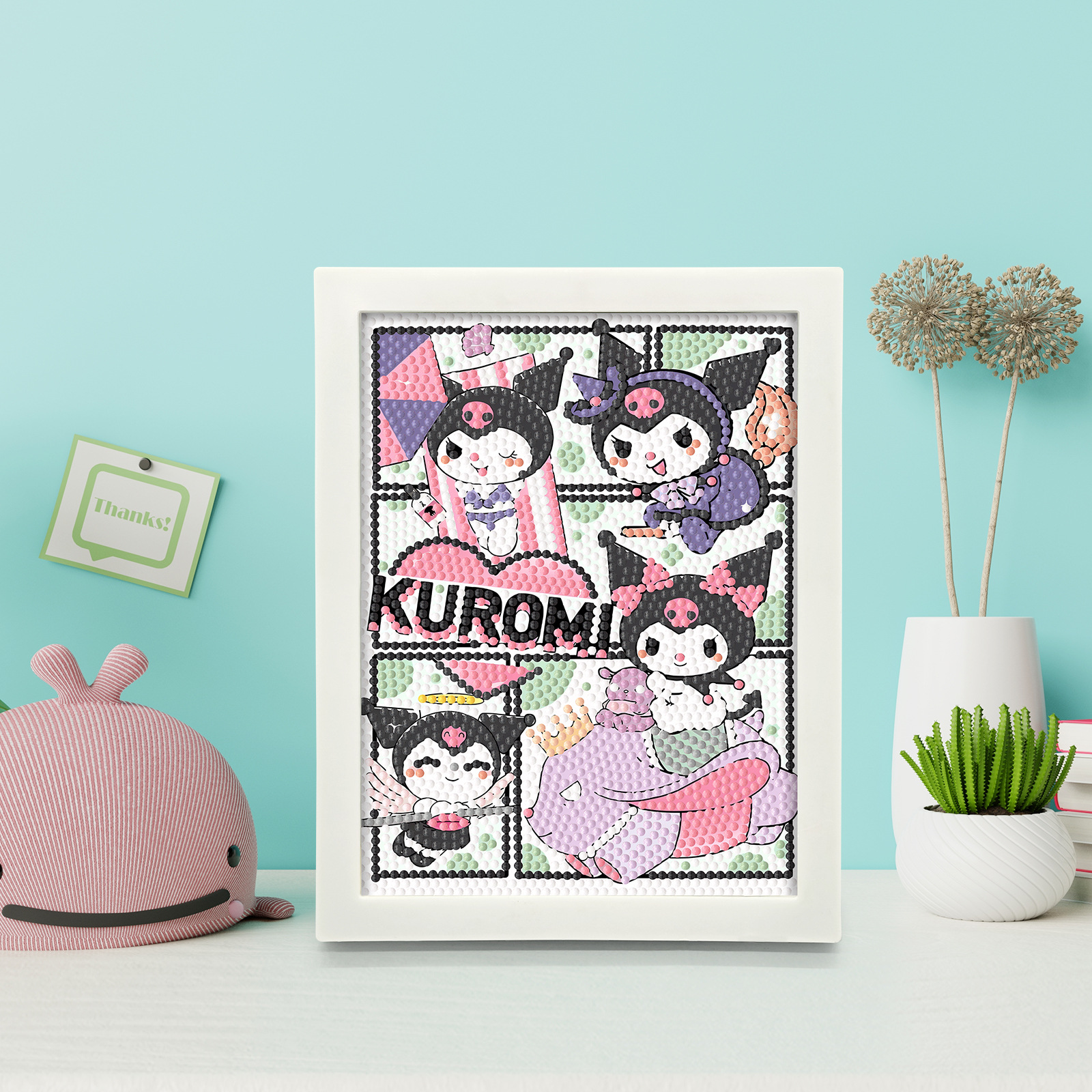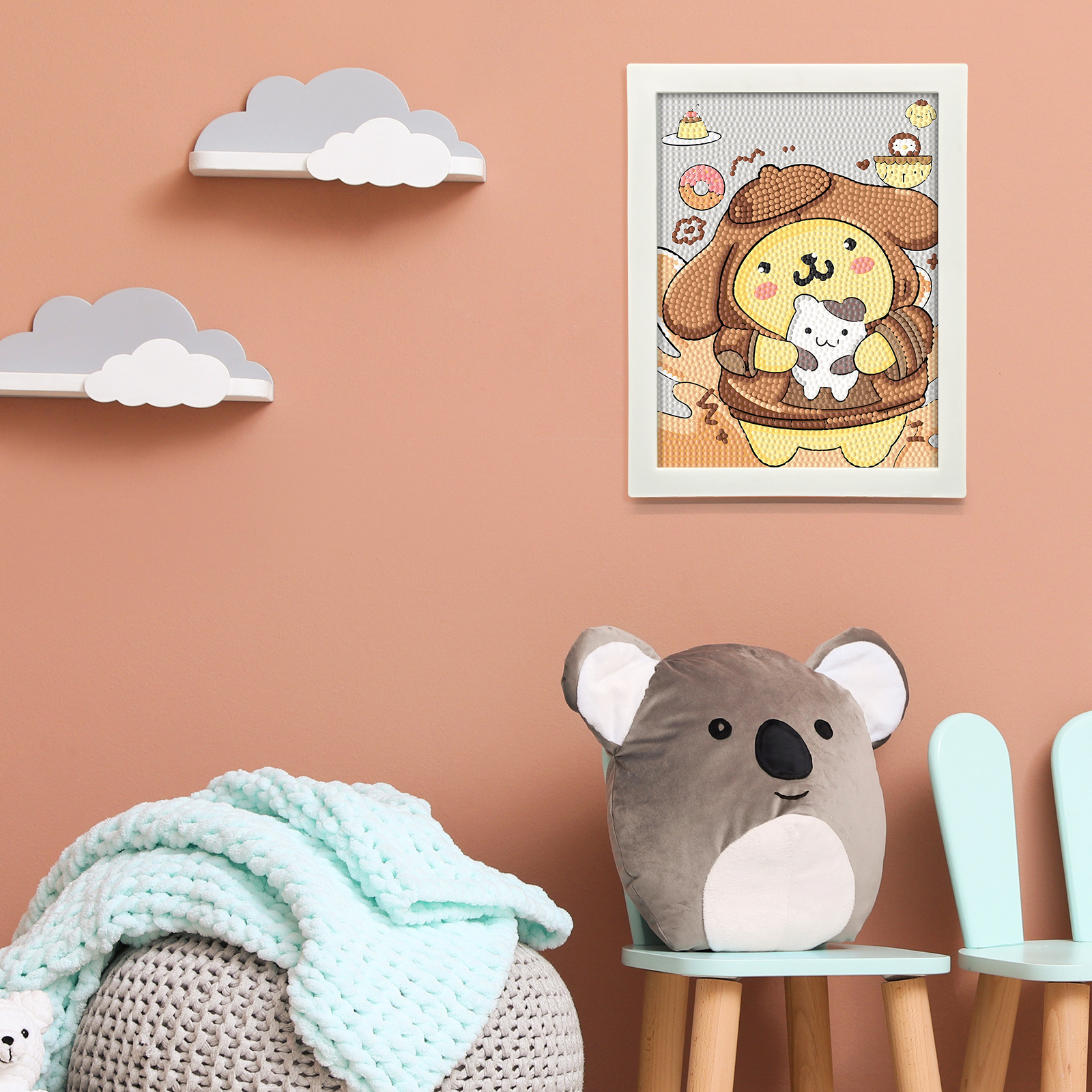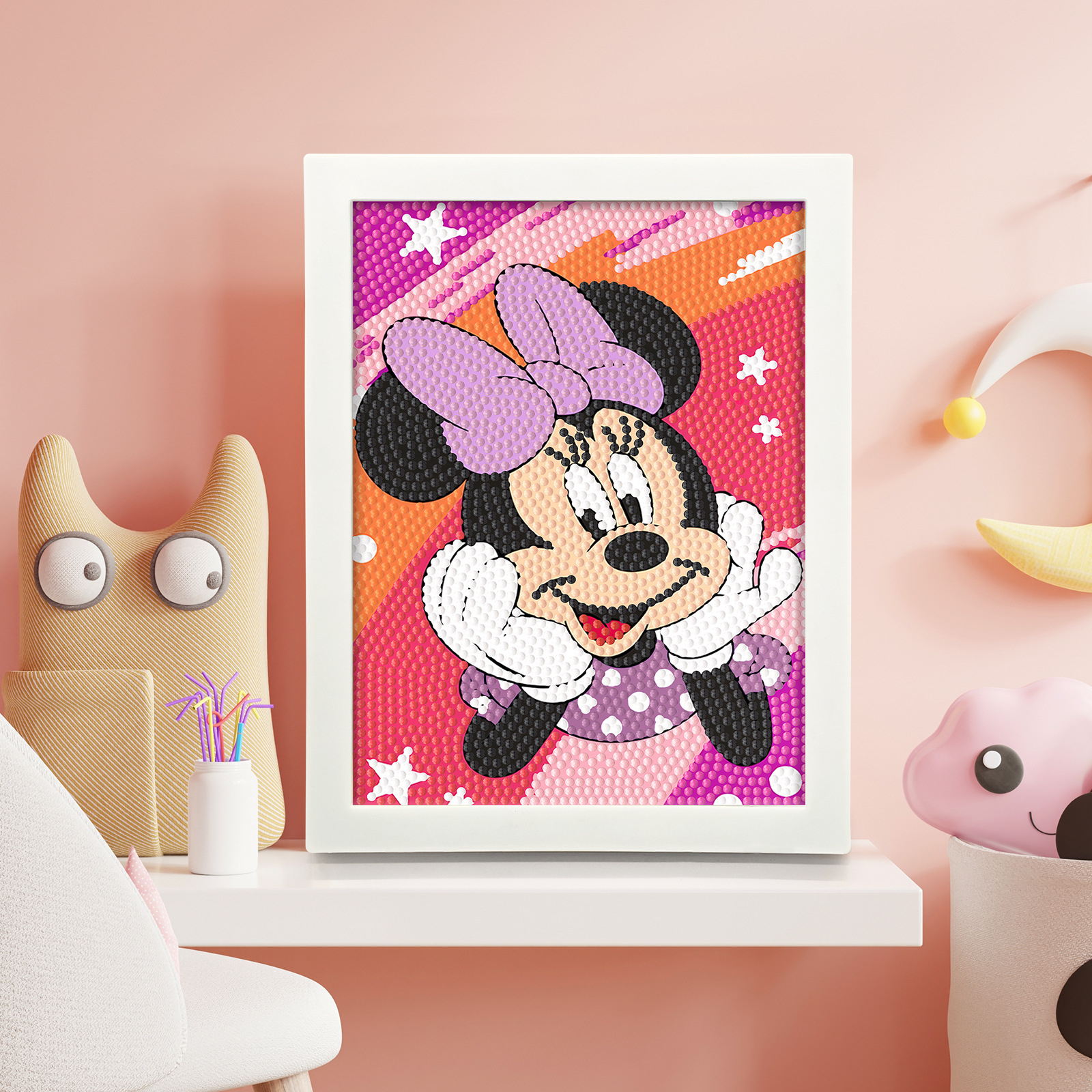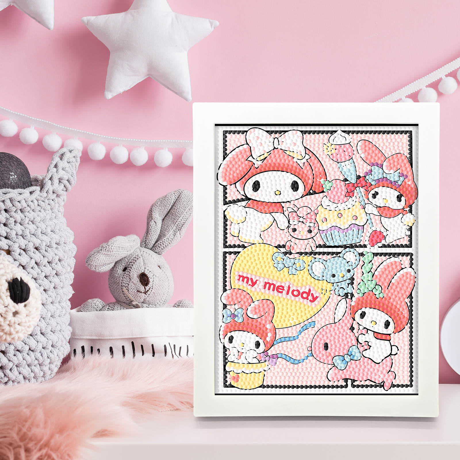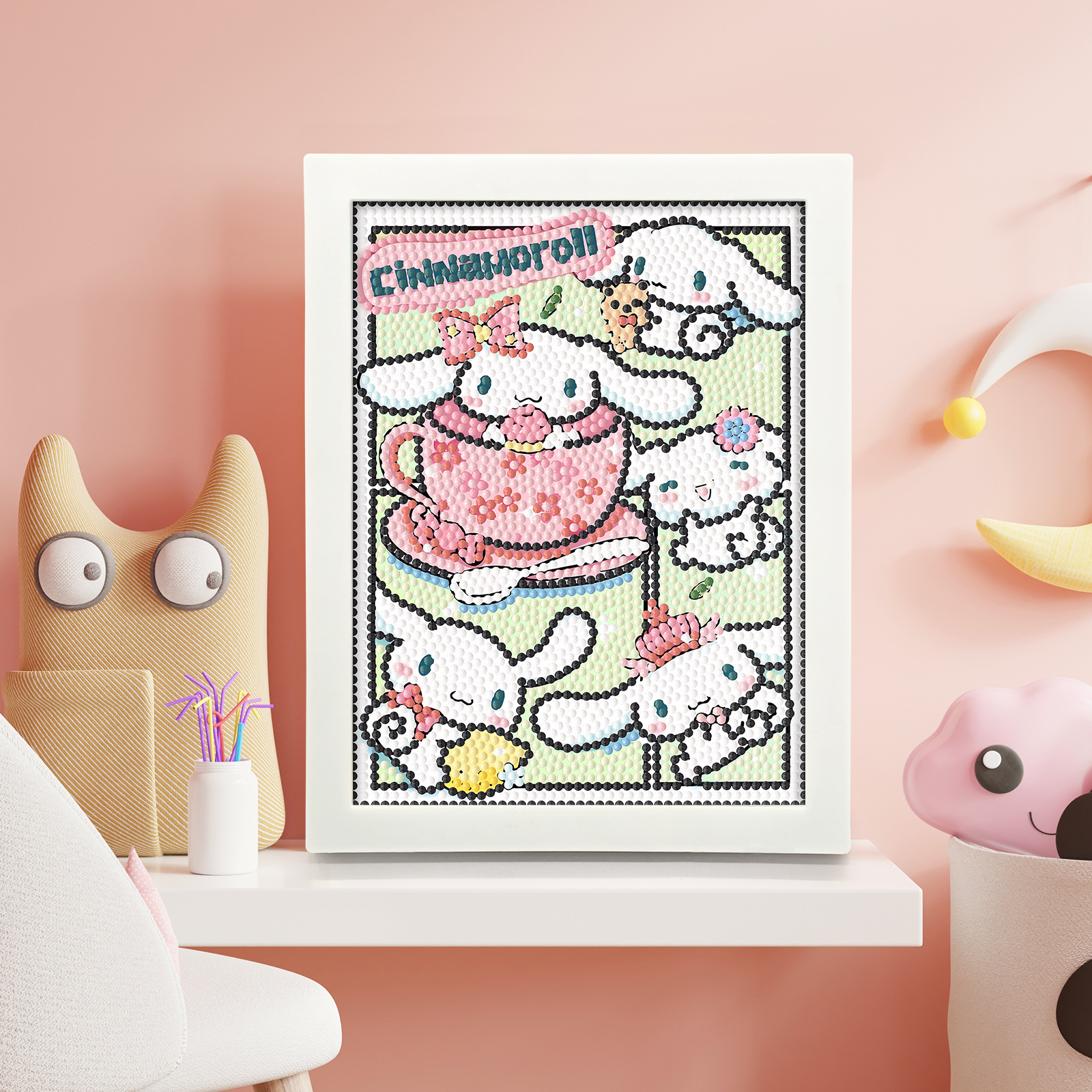 Pintura de diamante perimetral marco blanco adornos de dormitorio dibujos animados DIY puntos manuales perforación pintura decorativa soporte de plástico distribución al por mayor