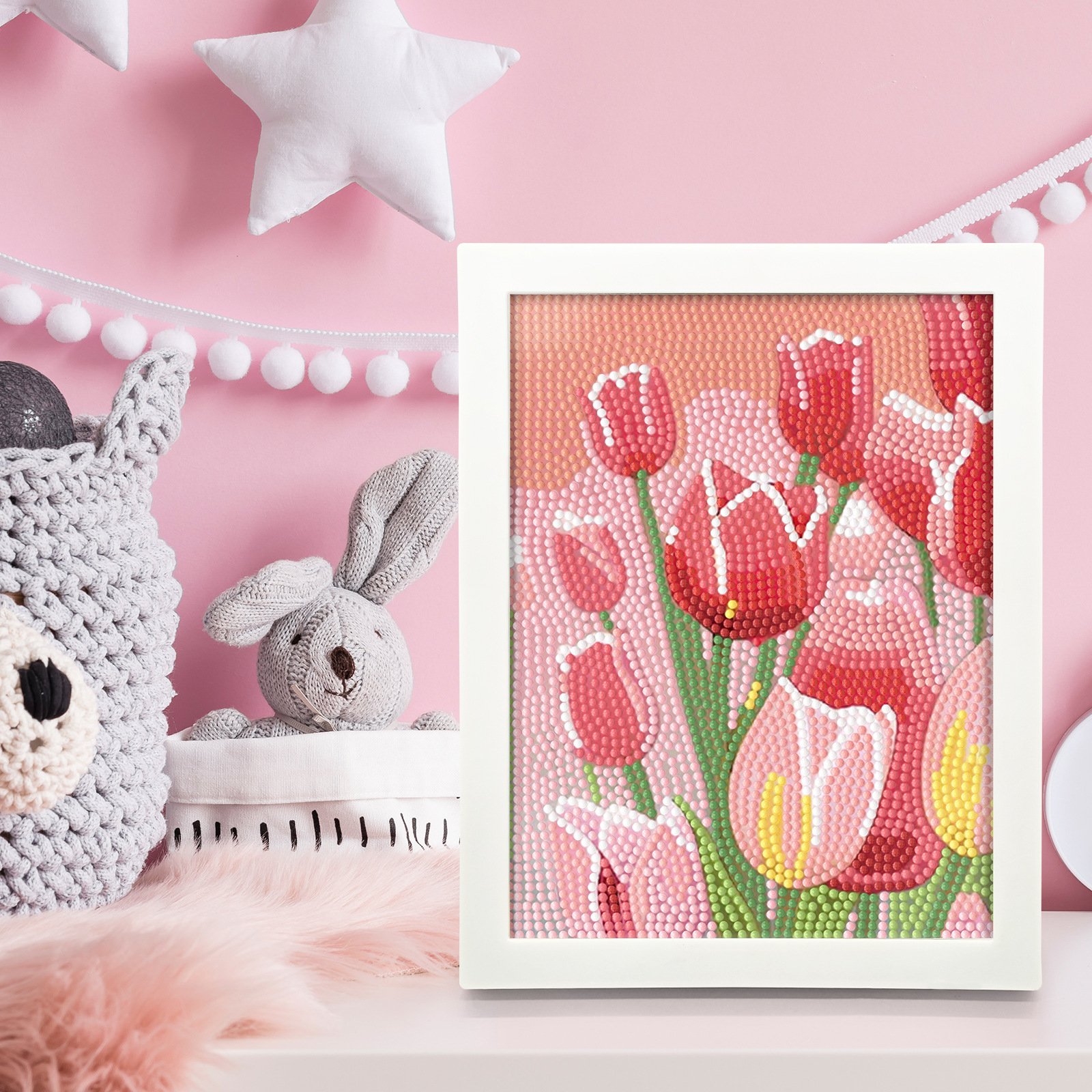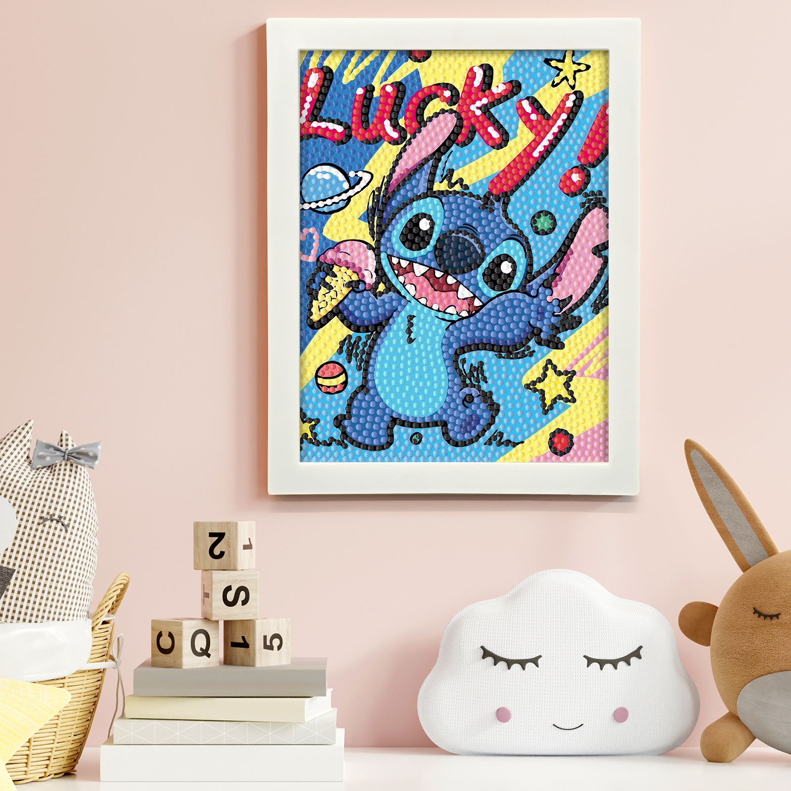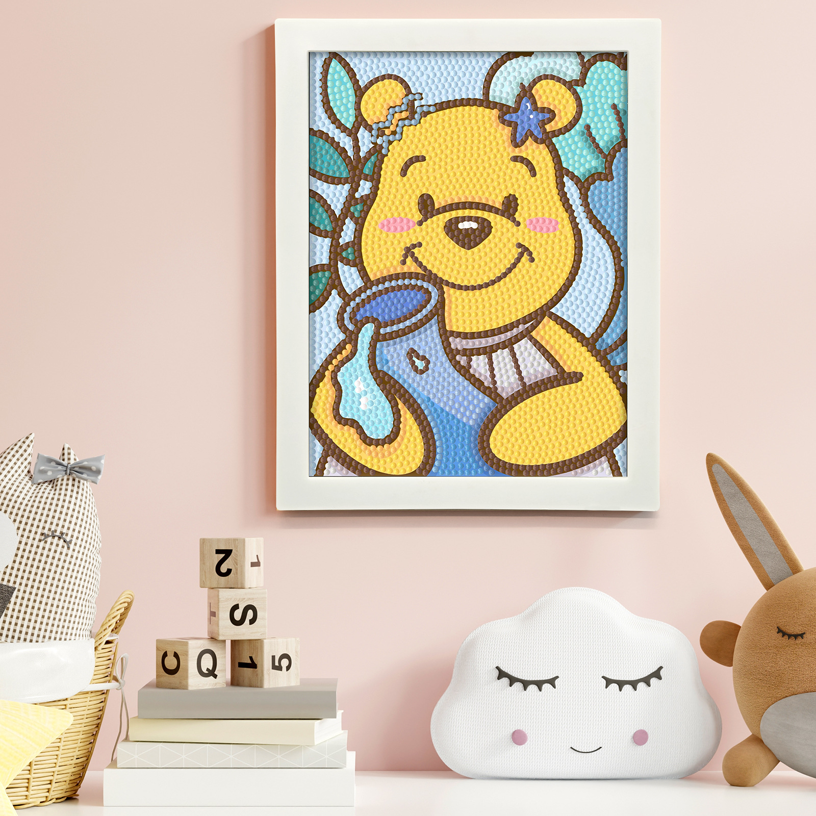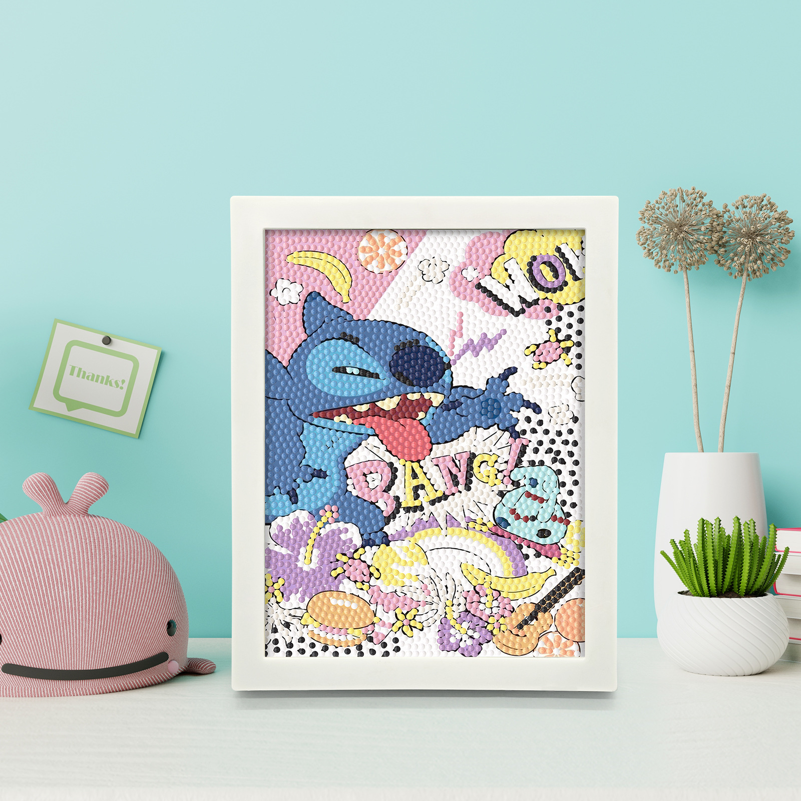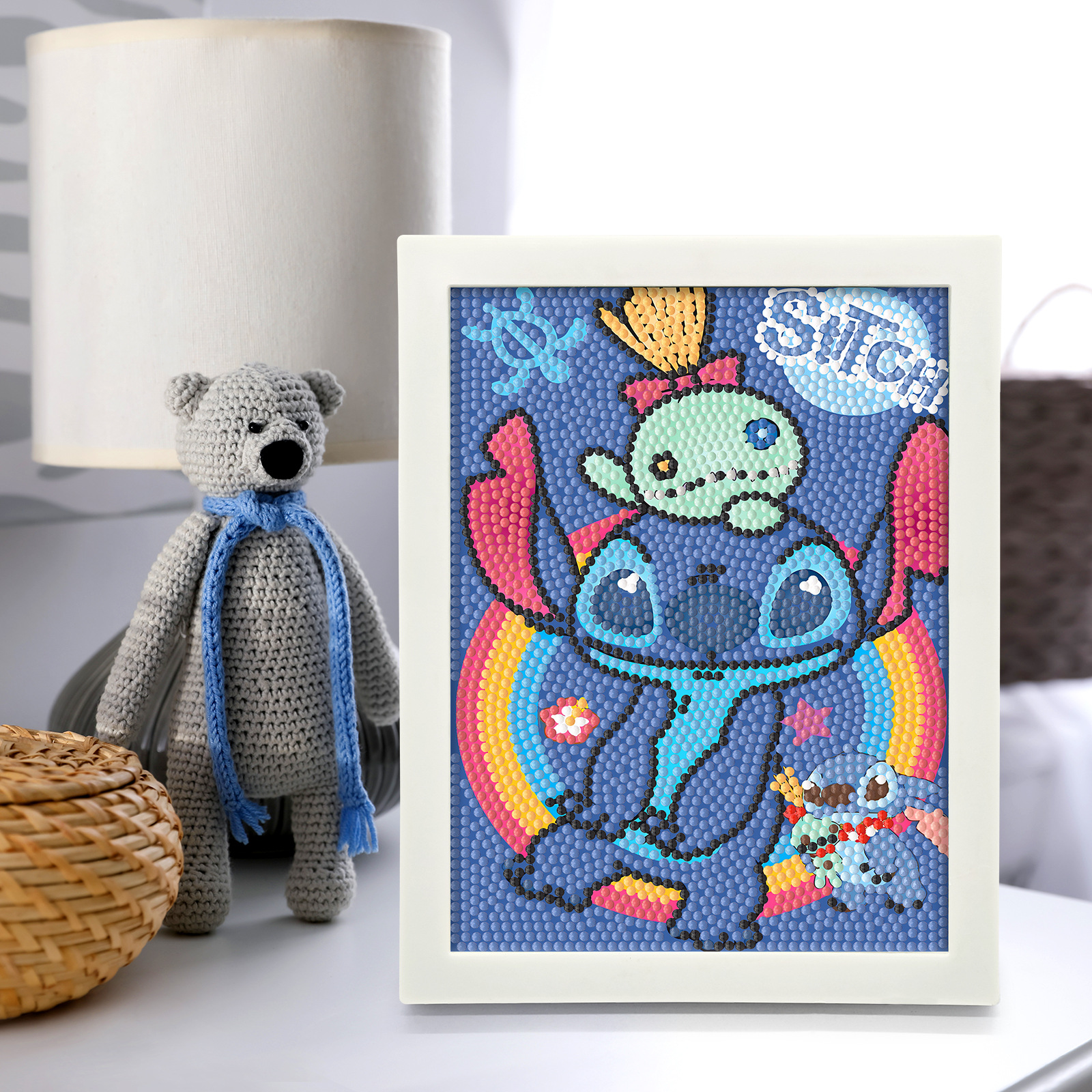Pintura de diamante perimetral marco blanco adornos de dormitorio dibujos animados DIY puntos manuales perforación pintura decorativa soporte de plástico distribución al por mayor
