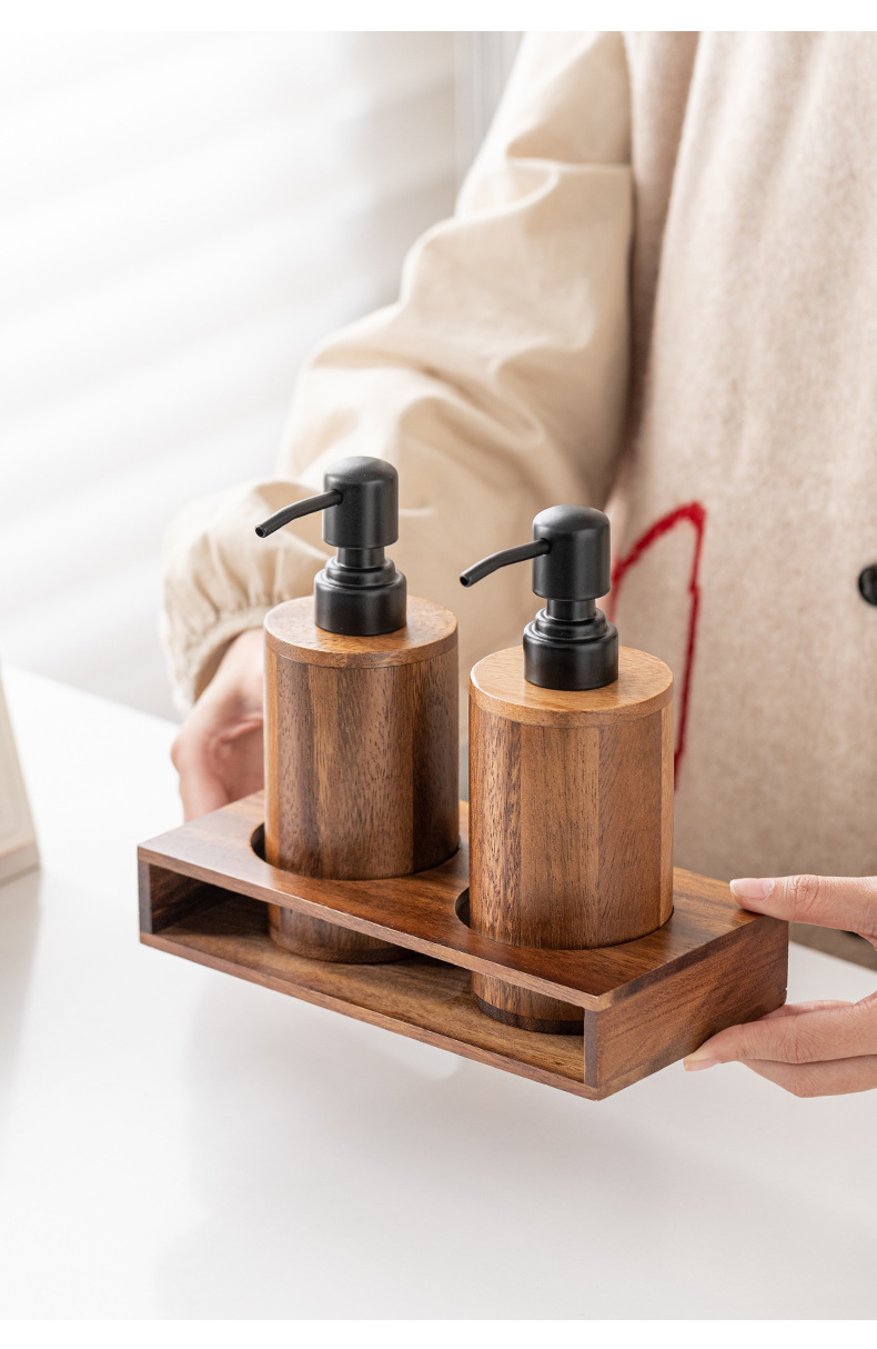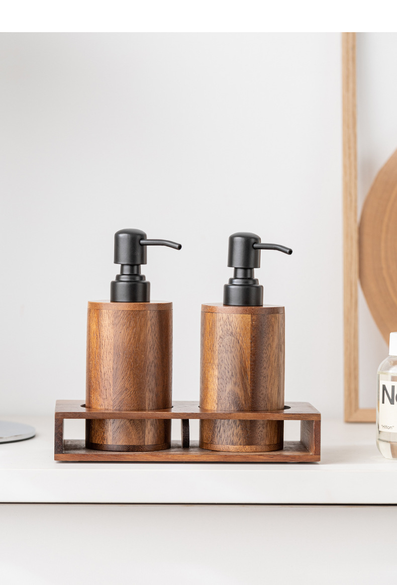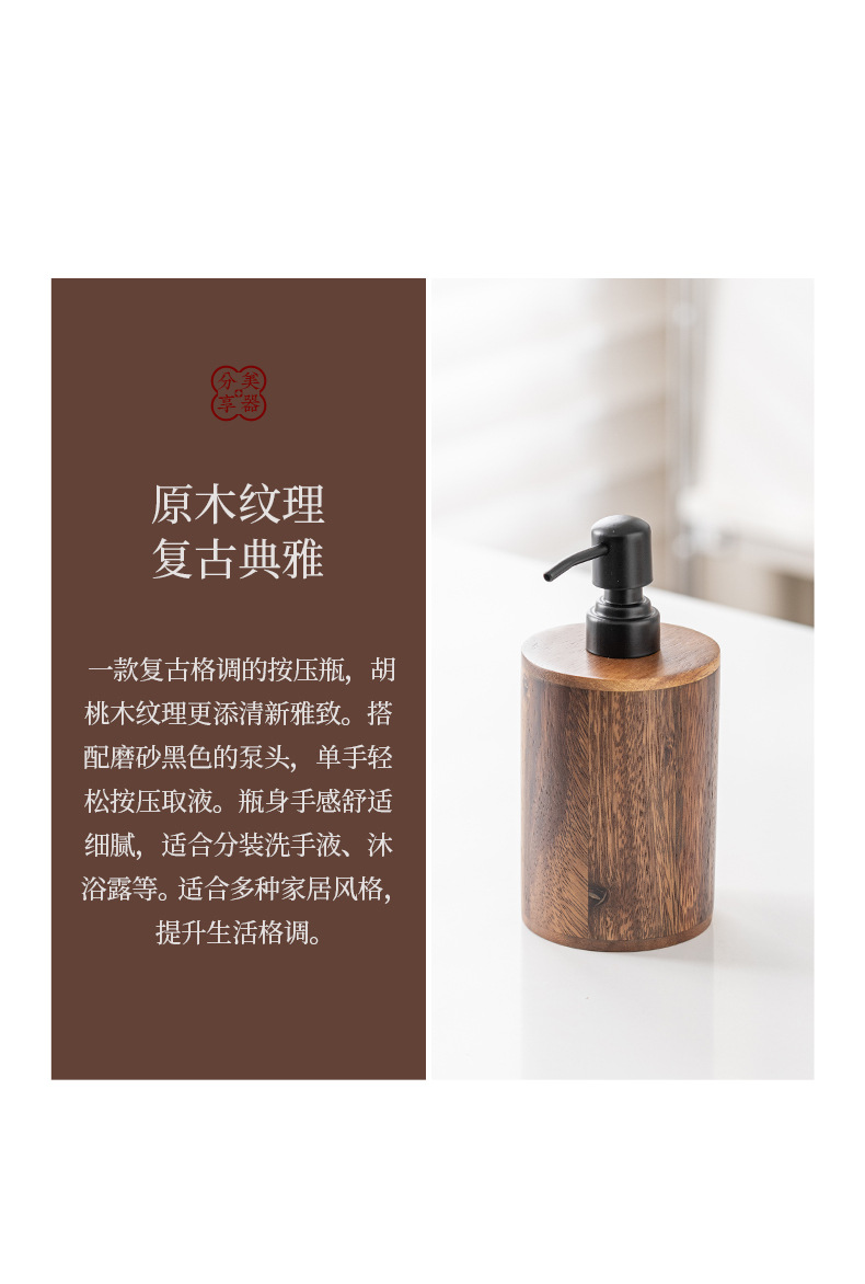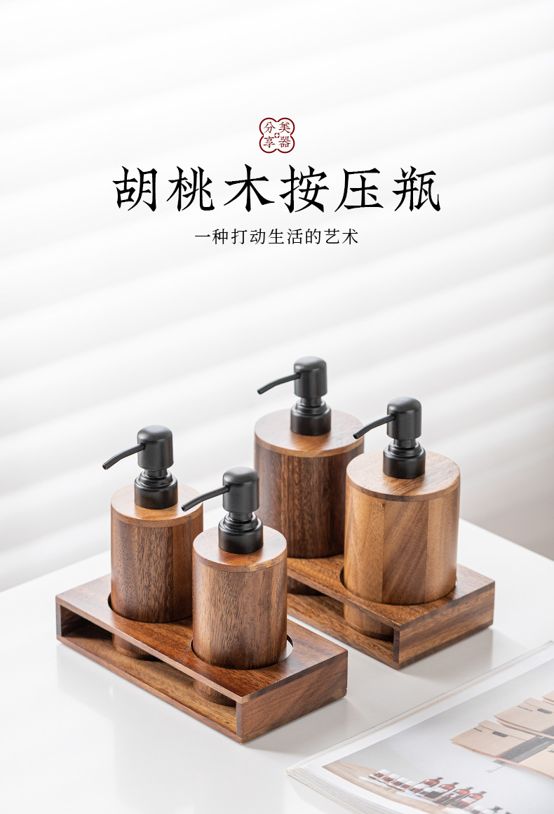 Loción de prensa de nogal botella vacía de madera maciza de lujo ligero hotel desinfectante de manos gel de ducha champú loción